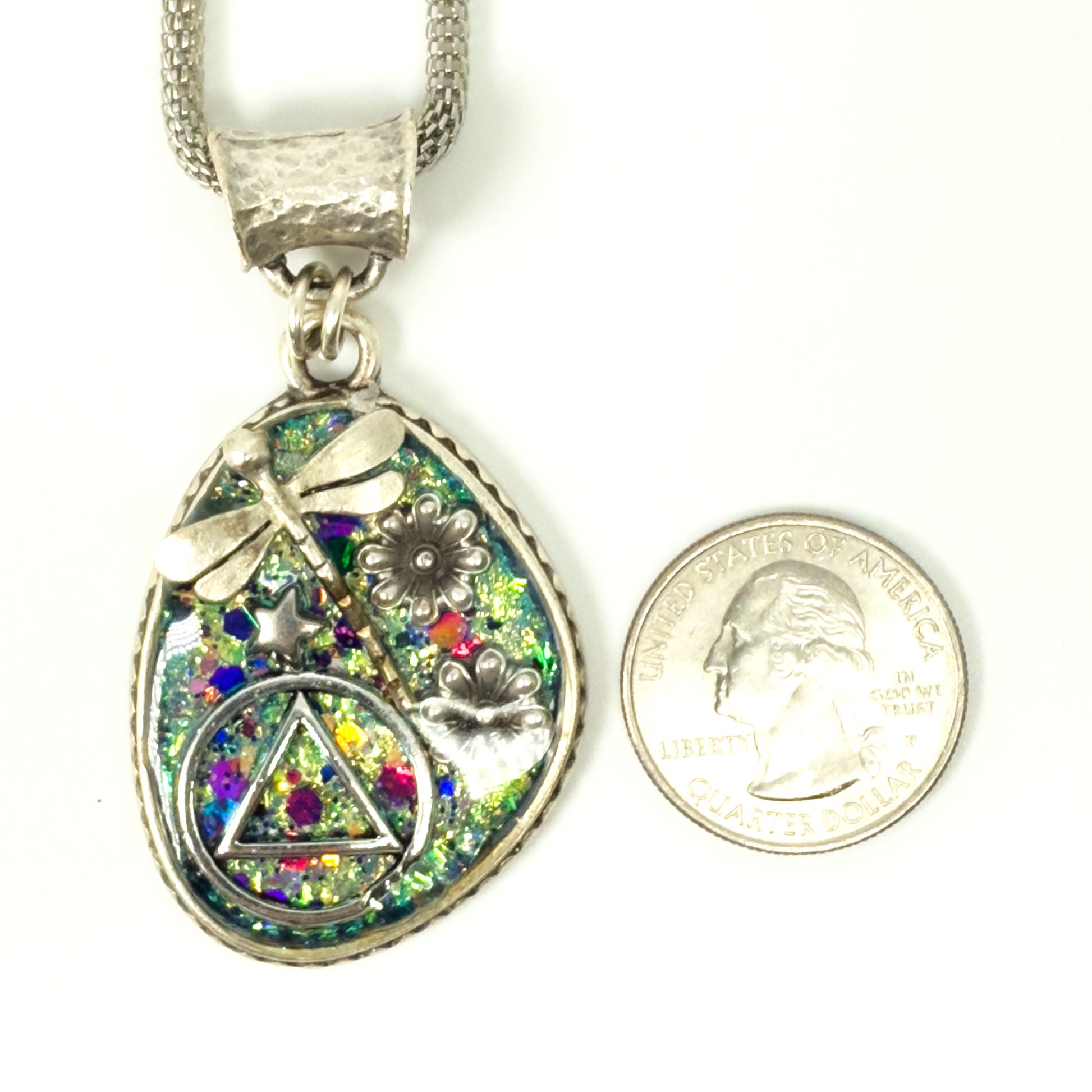 My One of a Kind Hand Painted Resin Sobriety Pendants are Unique, Handcrafted pieces of jewelry designed to symbolize and celebrate your journey in recovery. I incorporate many symbols in my work such as hearts. Hearts represent “My Heart is in Recovery” Each pendant comes with a 18” silver plated chain