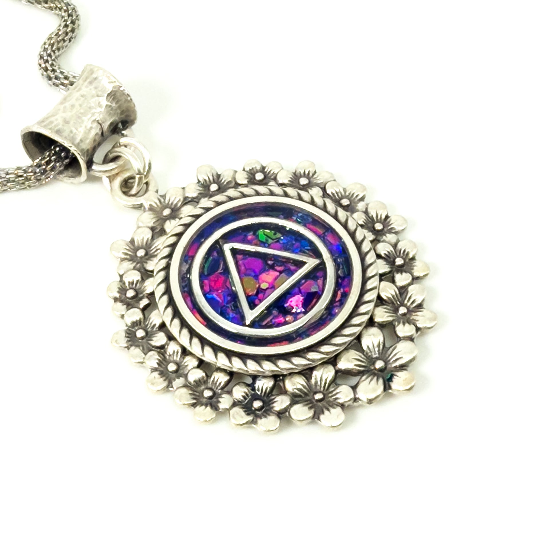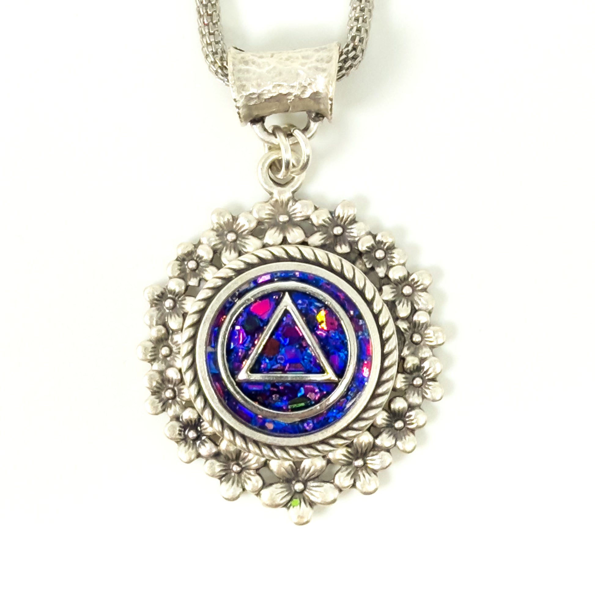My One of a Kind Hand Painted Resin Sobriety Pendants are Unique, Handcrafted pieces of jewelry designed to symbolize and celebrate your journey in recovery. I incorporate many symbols in my work such as hearts. Hearts represent “My Heart is in Recovery” Each pendant comes with a 18” silver plated chain