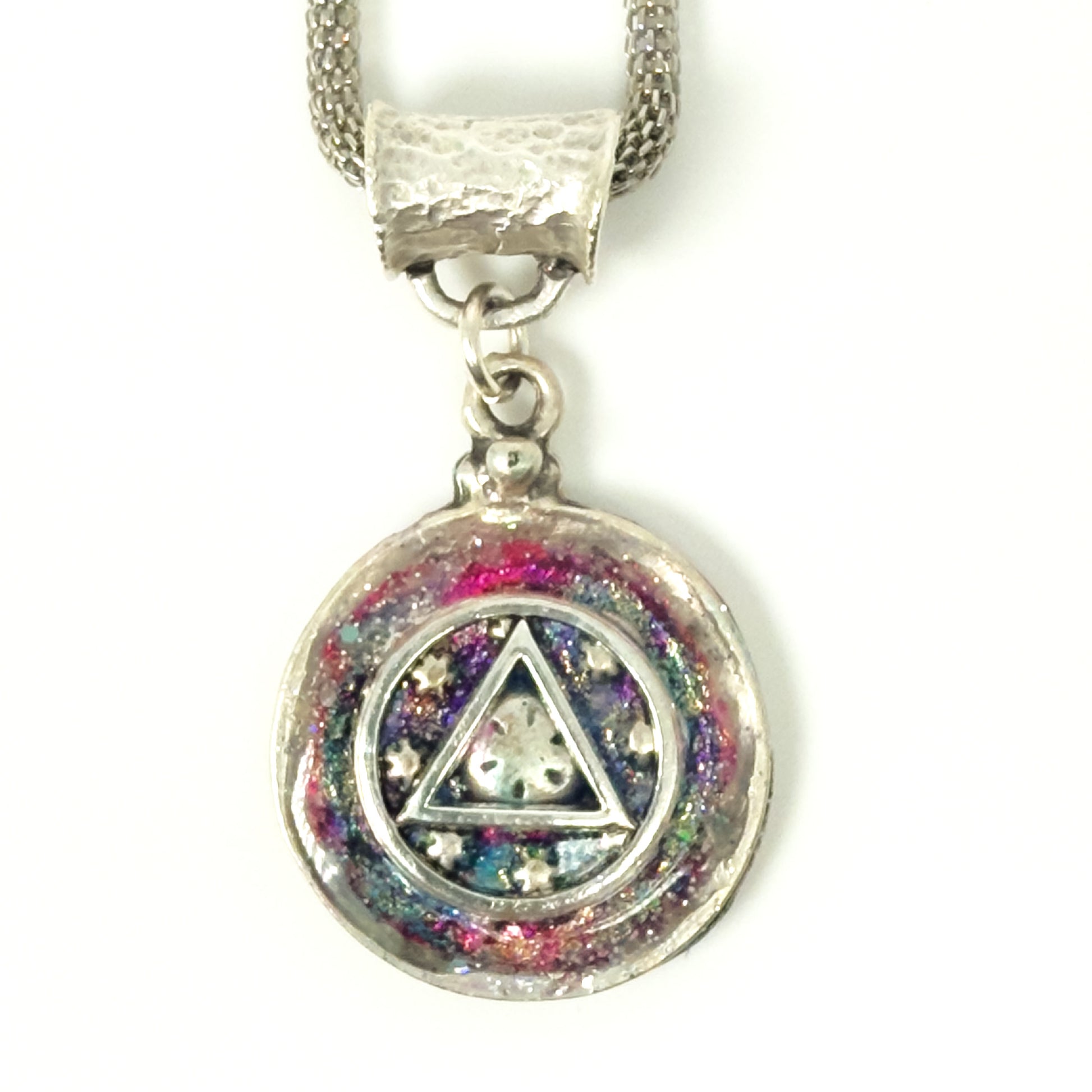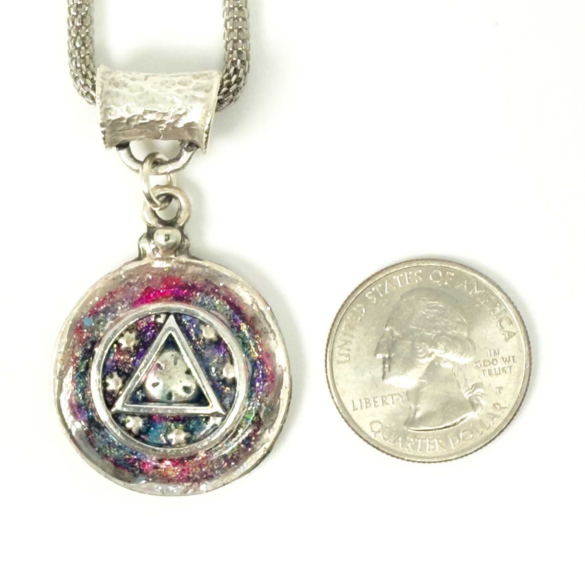 My One of a Kind Hand Painted Resin Sobriety Pendants are Unique, Handcrafted pieces of jewelry designed to symbolize and celebrate your journey in recovery. I incorporate many symbols in my work such as hearts. Hearts represent “My Heart is in Recovery” Each pendant comes with a 18” silver plated chain