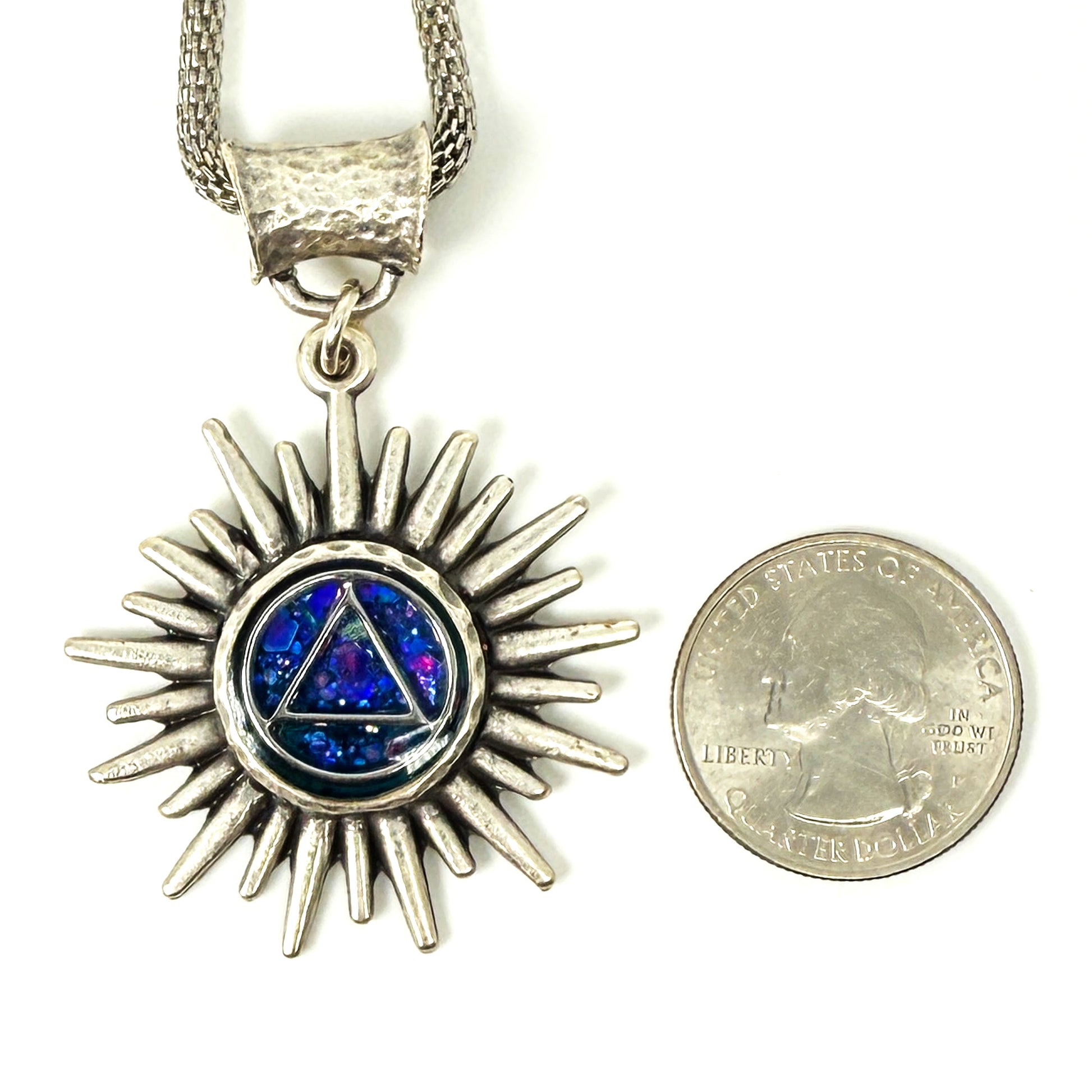 My One of a Kind Hand Painted Resin Sobriety Pendants are Unique, Handcrafted pieces of jewelry designed to symbolize and celebrate your journey in recovery. I incorporate many symbols in my work such as hearts. Hearts represent “My Heart is in Recovery” Each pendant comes with a 18” silver plated chain