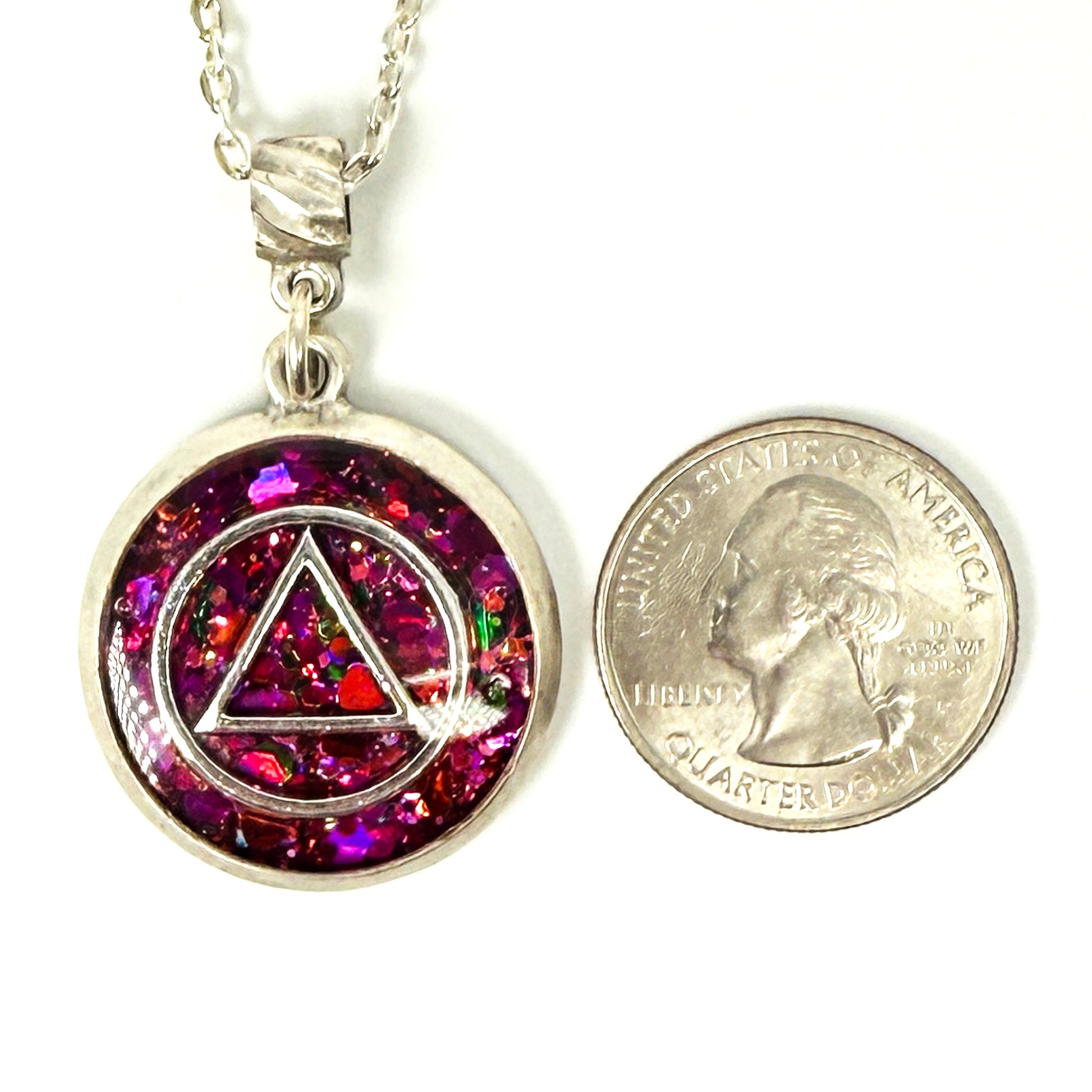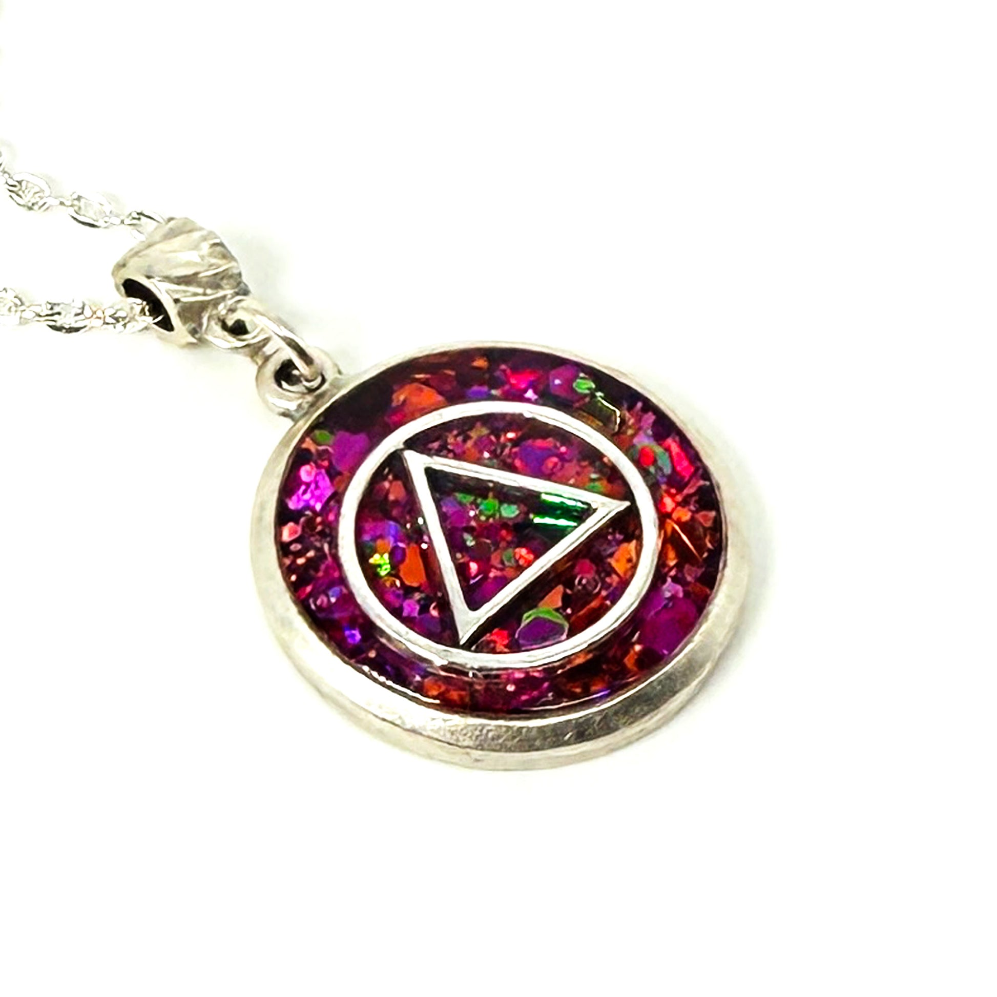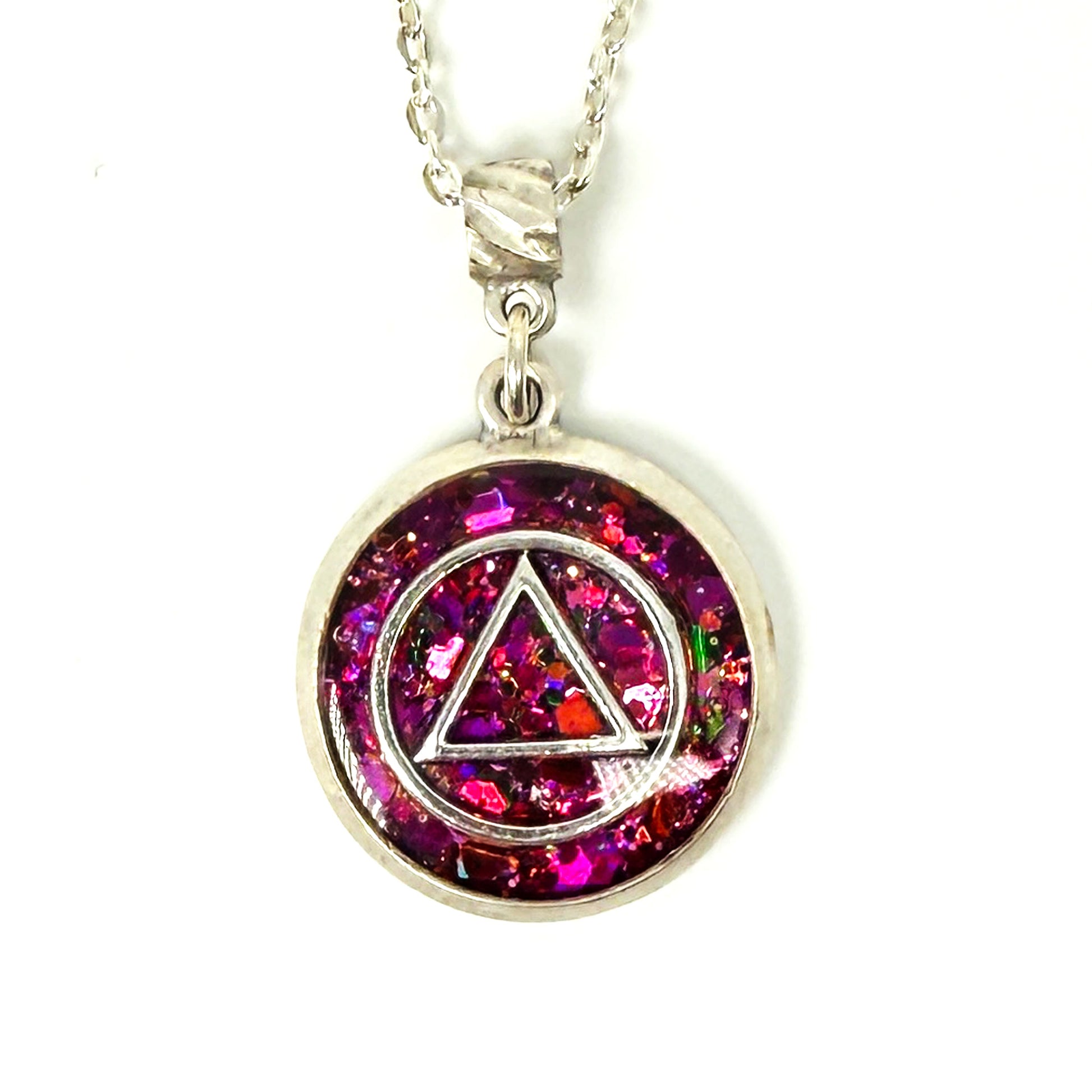 My One of a Kind Hand Painted Resin Sobriety Pendants are Unique, Handcrafted pieces of jewelry designed to symbolize and celebrate your journey in recovery. I incorporate many symbols in my work such as hearts. Hearts represent “My Heart is in Recovery” Each pendant comes with a 18” silver plated chain