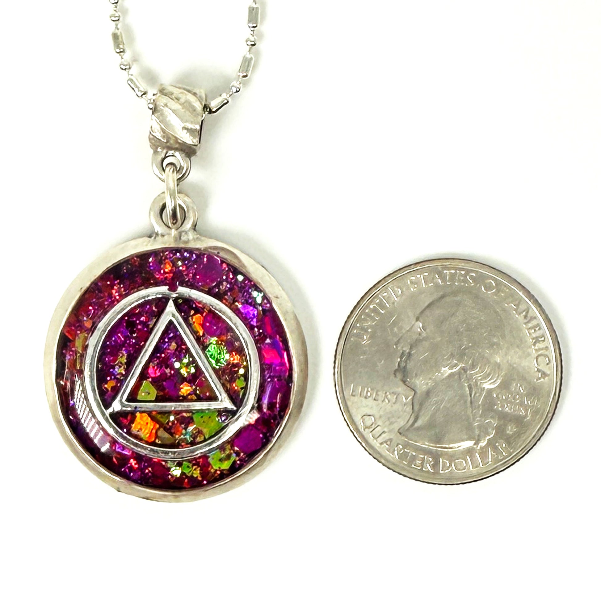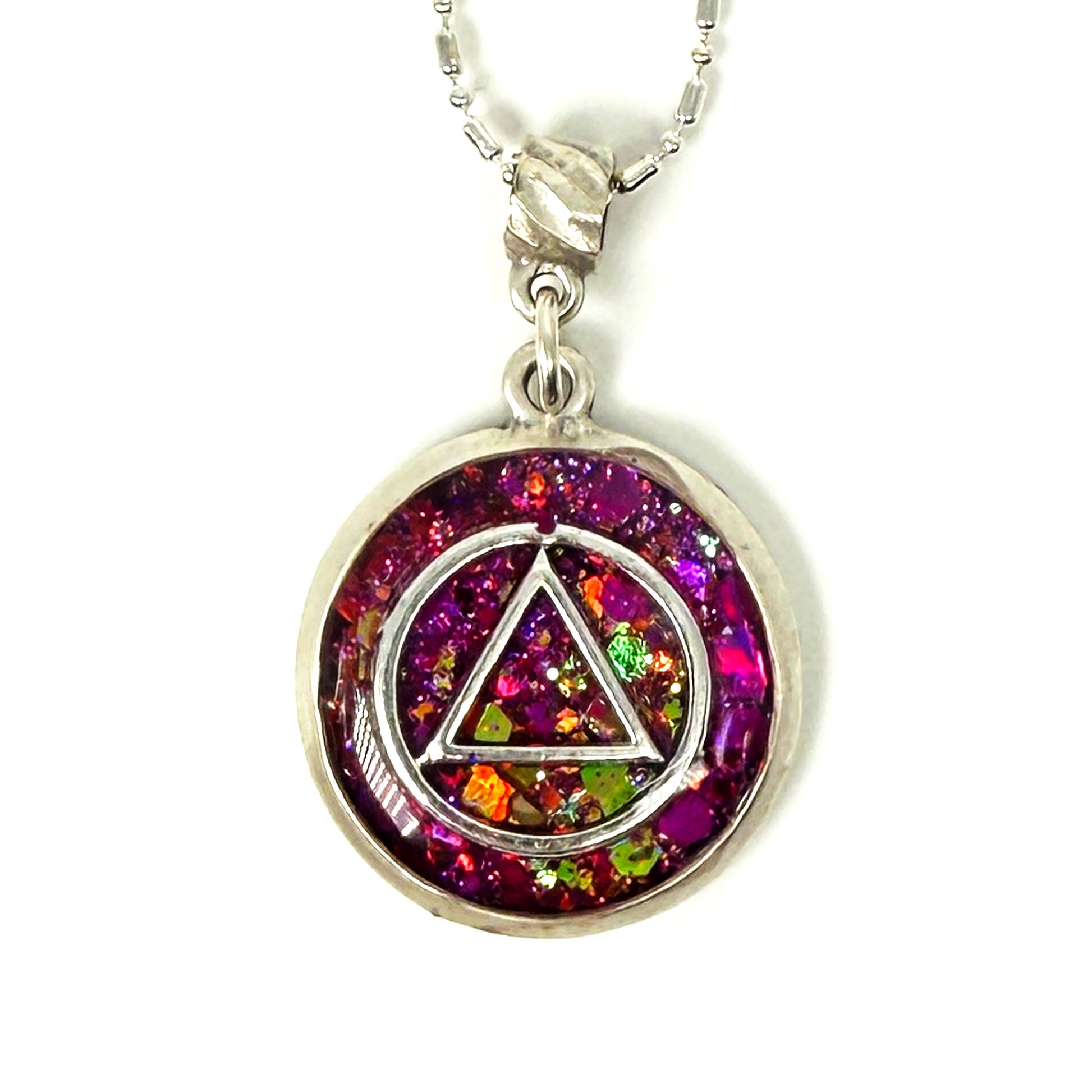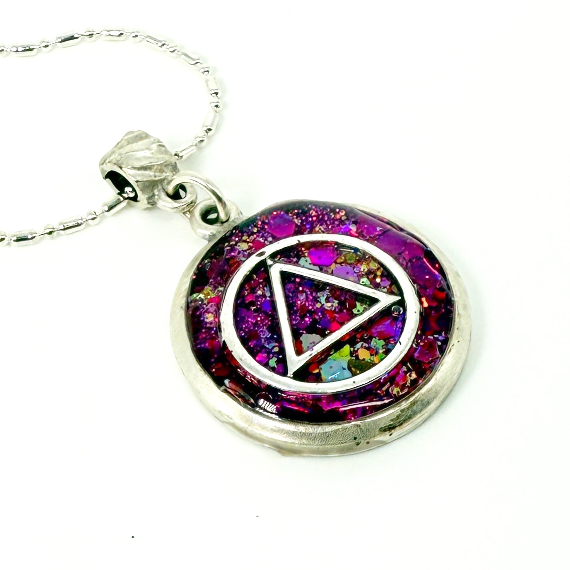 My One of a Kind Hand Painted Resin Sobriety Pendants are Unique, Handcrafted pieces of jewelry designed to symbolize and celebrate your journey in recovery. I incorporate many symbols in my work such as hearts. Hearts represent “My Heart is in Recovery” Each pendant comes with a 18” silver plated chain