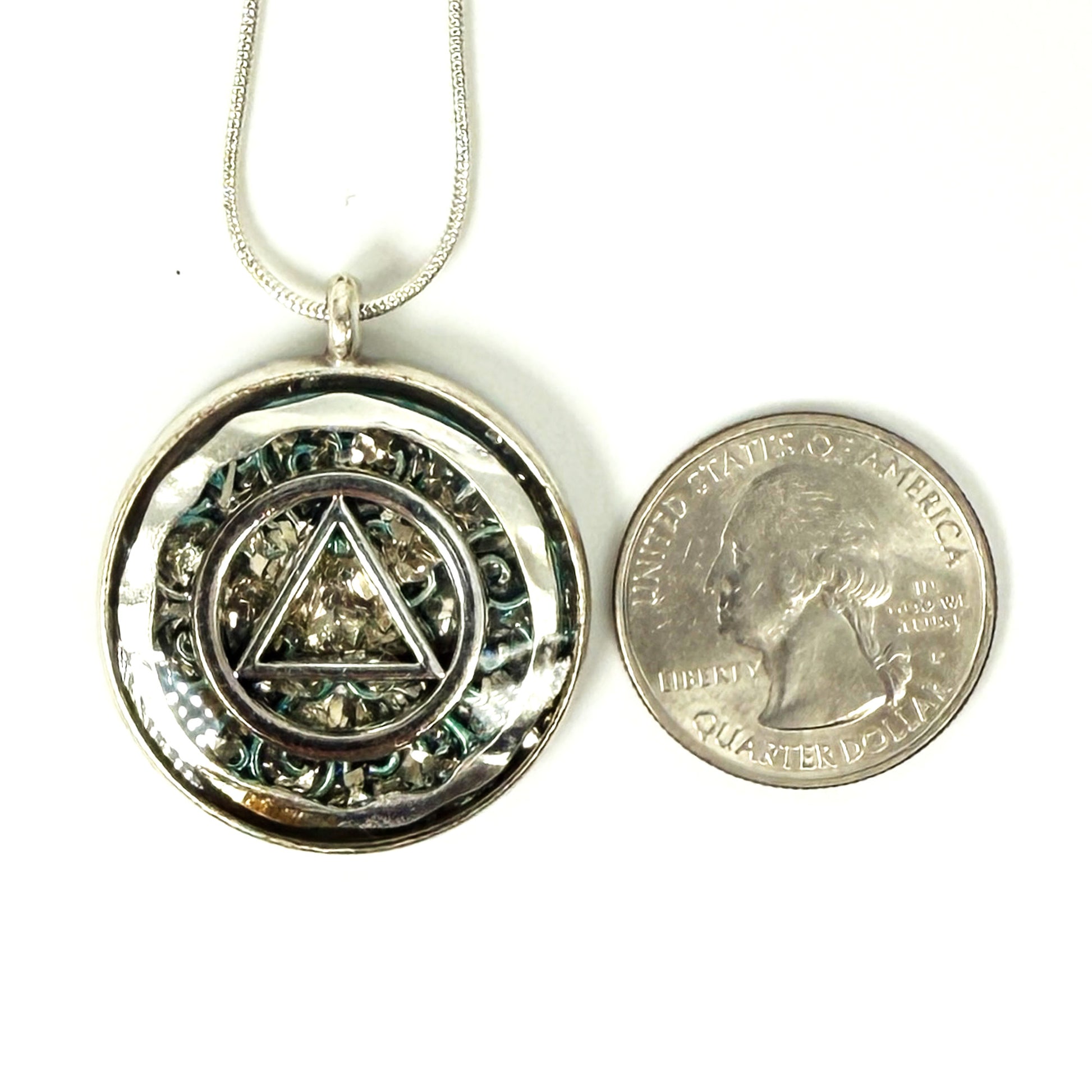 My One of a Kind Hand Painted Resin Sobriety Pendants are Unique, Handcrafted pieces of jewelry designed to symbolize and celebrate your journey in recovery. I incorporate many symbols in my work such as hearts. Hearts represent “My Heart is in Recovery” Each pendant comes with a 18” silver plated chain