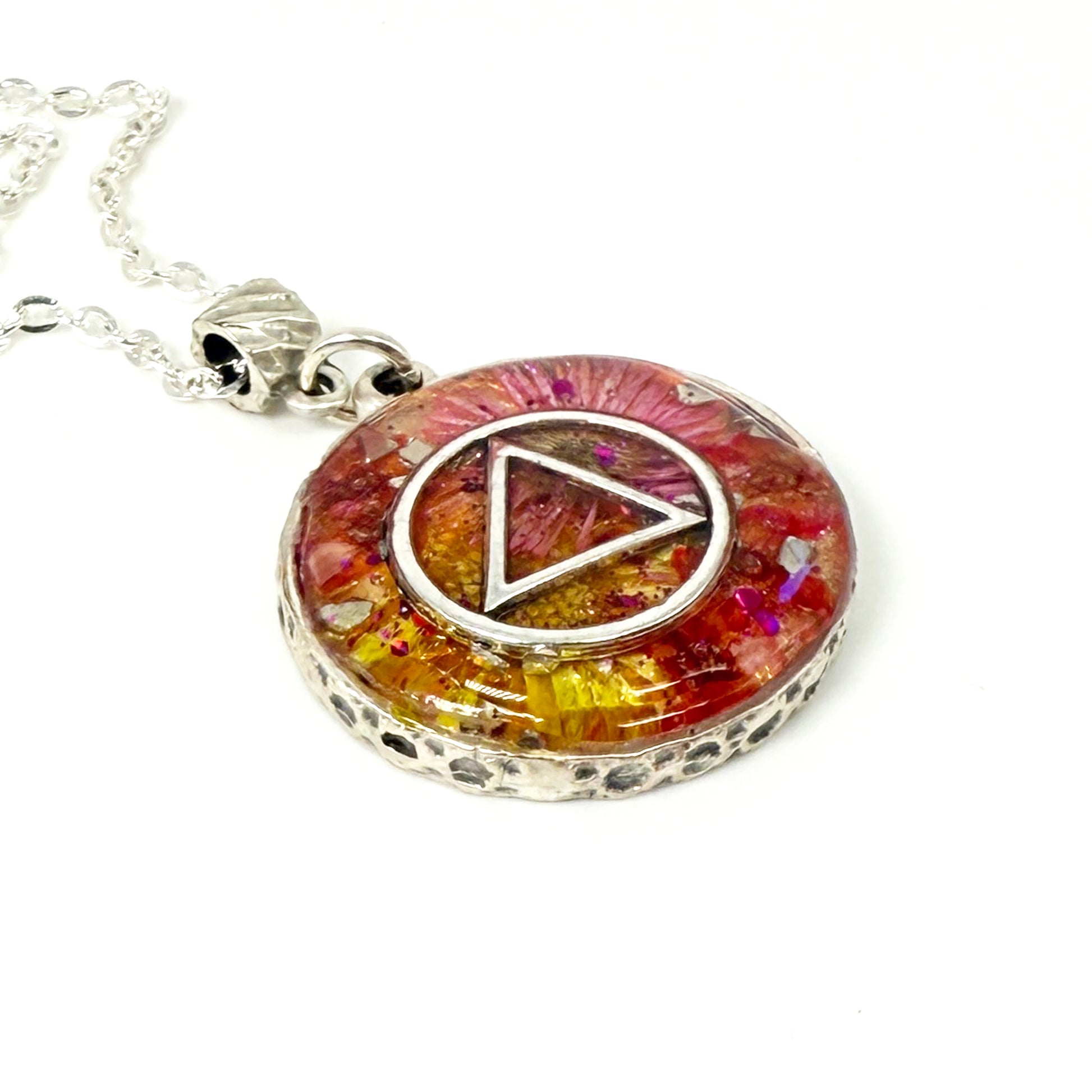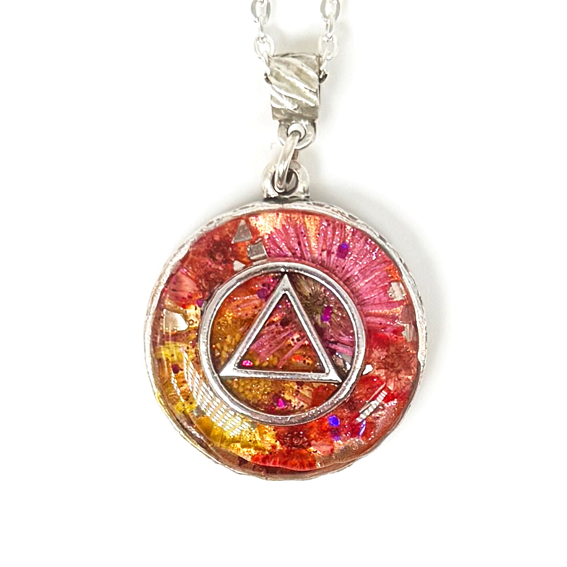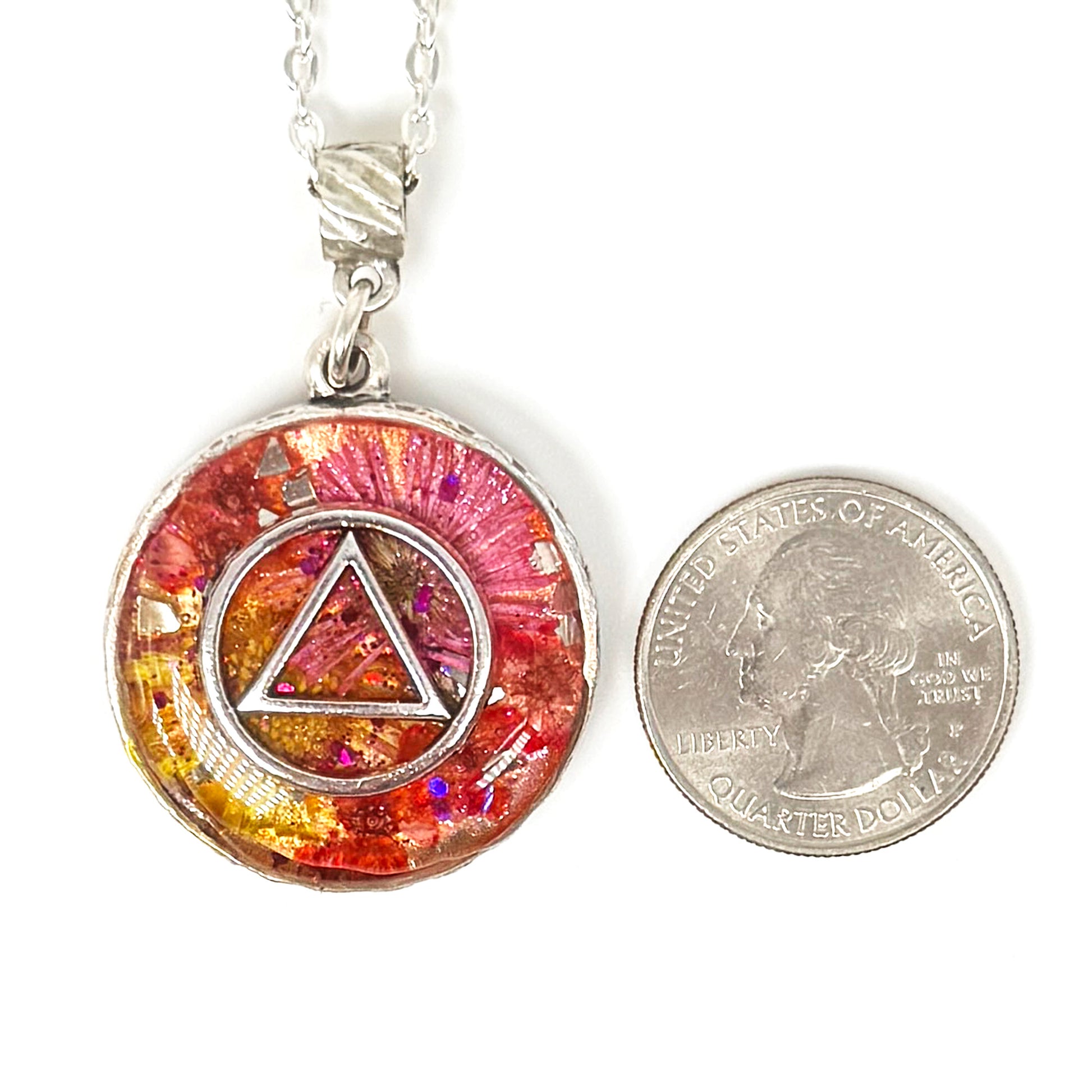 My One of a Kind Hand Painted Resin Sobriety Pendants are Unique, Handcrafted pieces of jewelry designed to symbolize and celebrate your journey in recovery. I incorporate many symbols in my work such as hearts. Hearts represent “My Heart is in Recovery” Each pendant comes with a 18” silver plated chain