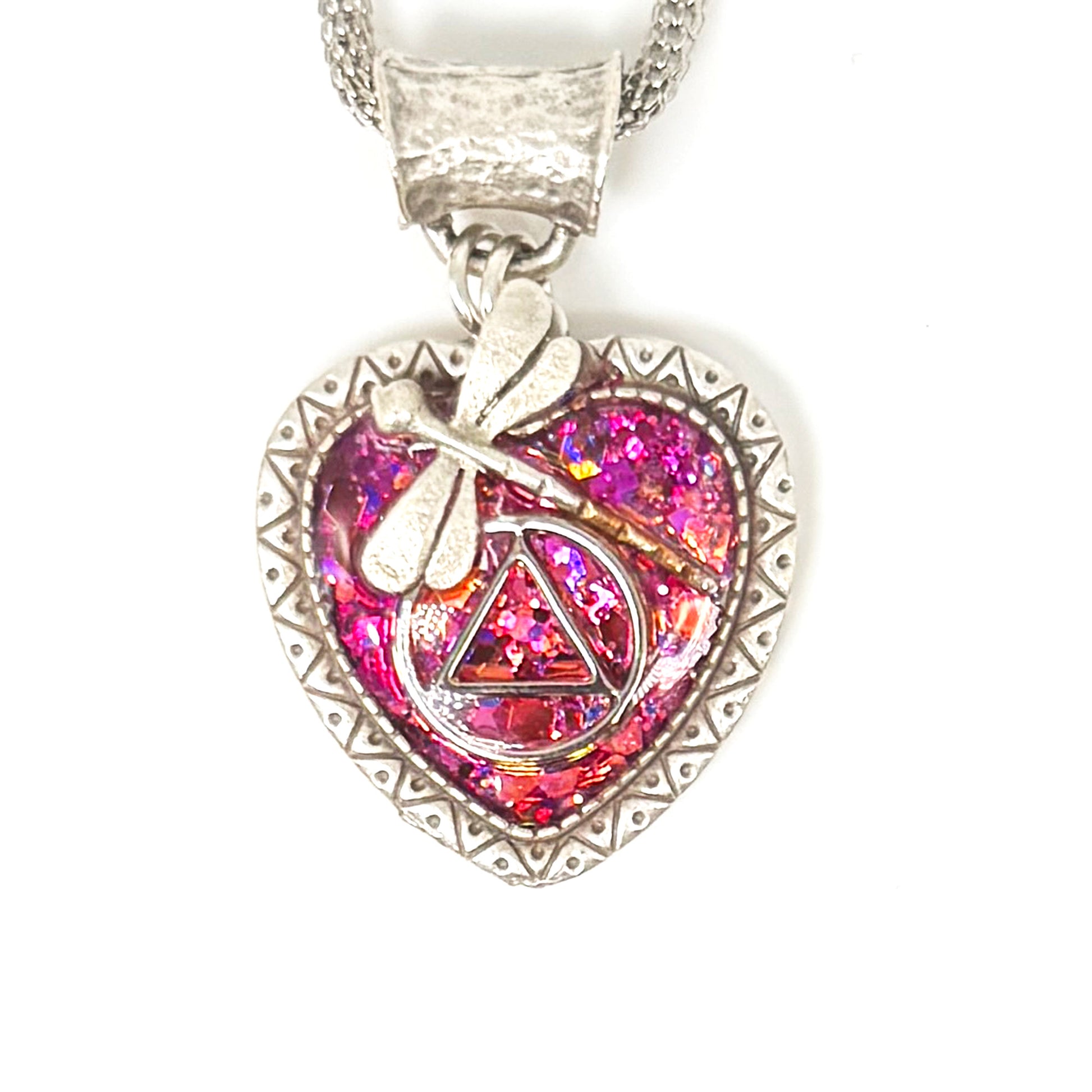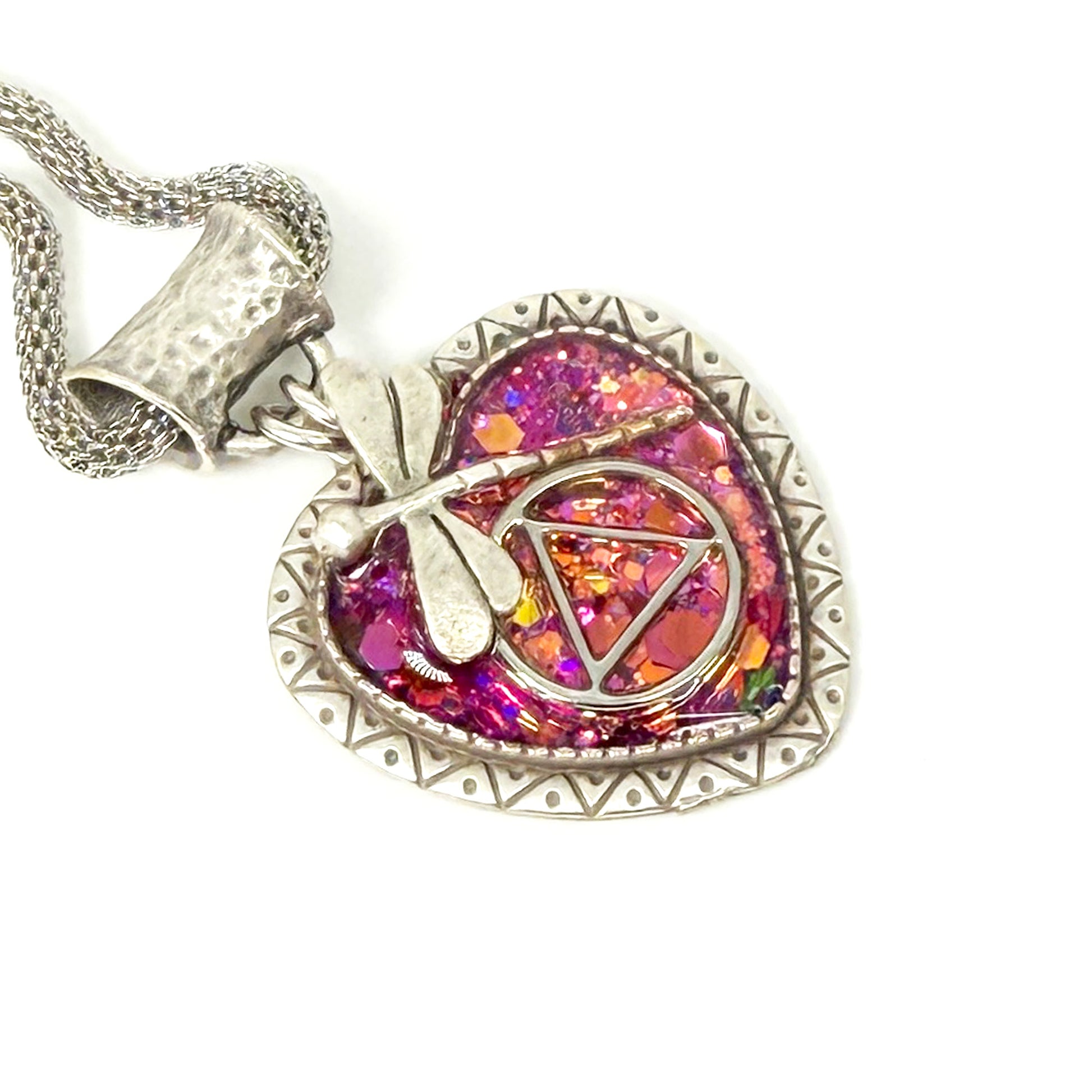 My One of a Kind Hand Painted Resin Sobriety Pendants are Unique, Handcrafted pieces of jewelry designed to symbolize and celebrate your journey in recovery. I incorporate many symbols in my work such as hearts. Hearts represent “My Heart is in Recovery” Each pendant comes with a 18” silver plated chain