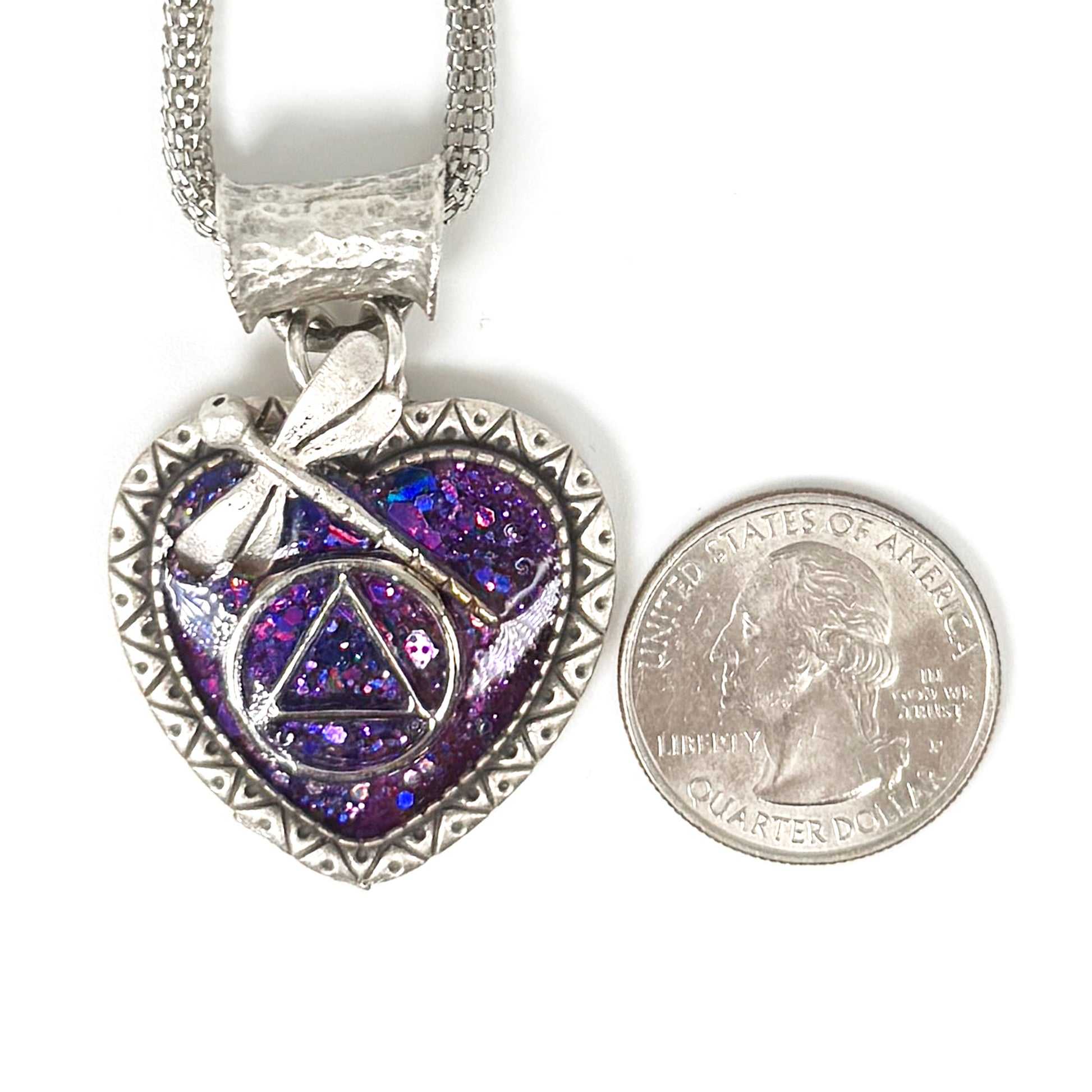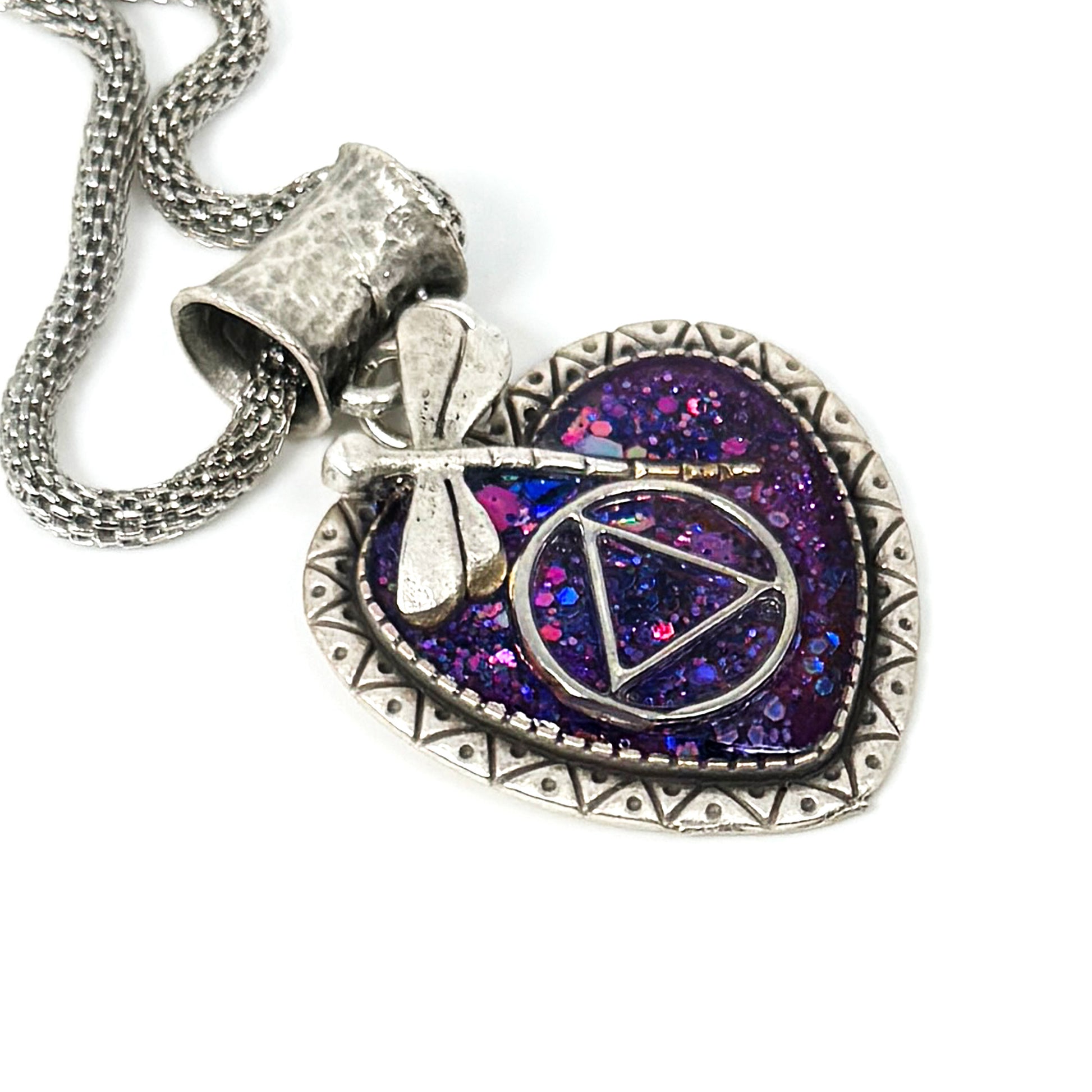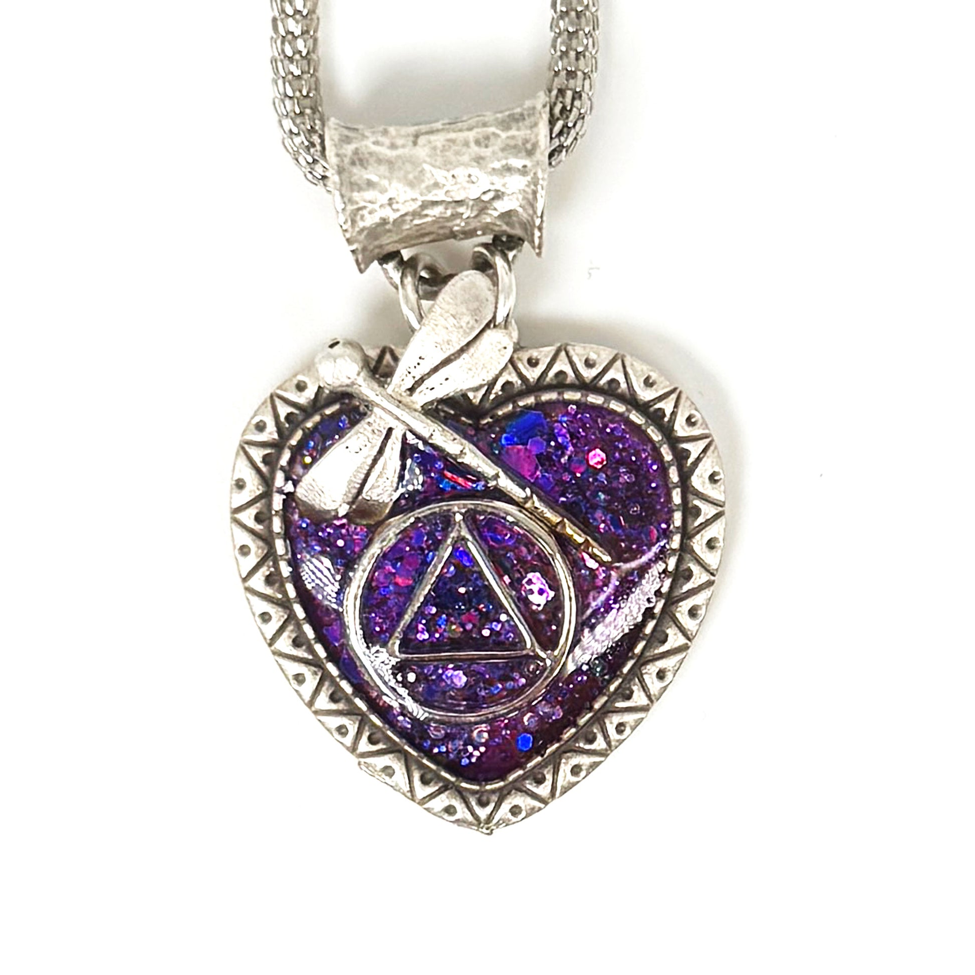 My One of a Kind Hand Painted Resin Sobriety Pendants are Unique, Handcrafted pieces of jewelry designed to symbolize and celebrate your journey in recovery. I incorporate many symbols in my work such as hearts. Hearts represent “My Heart is in Recovery” Each pendant comes with a 18” silver plated chain