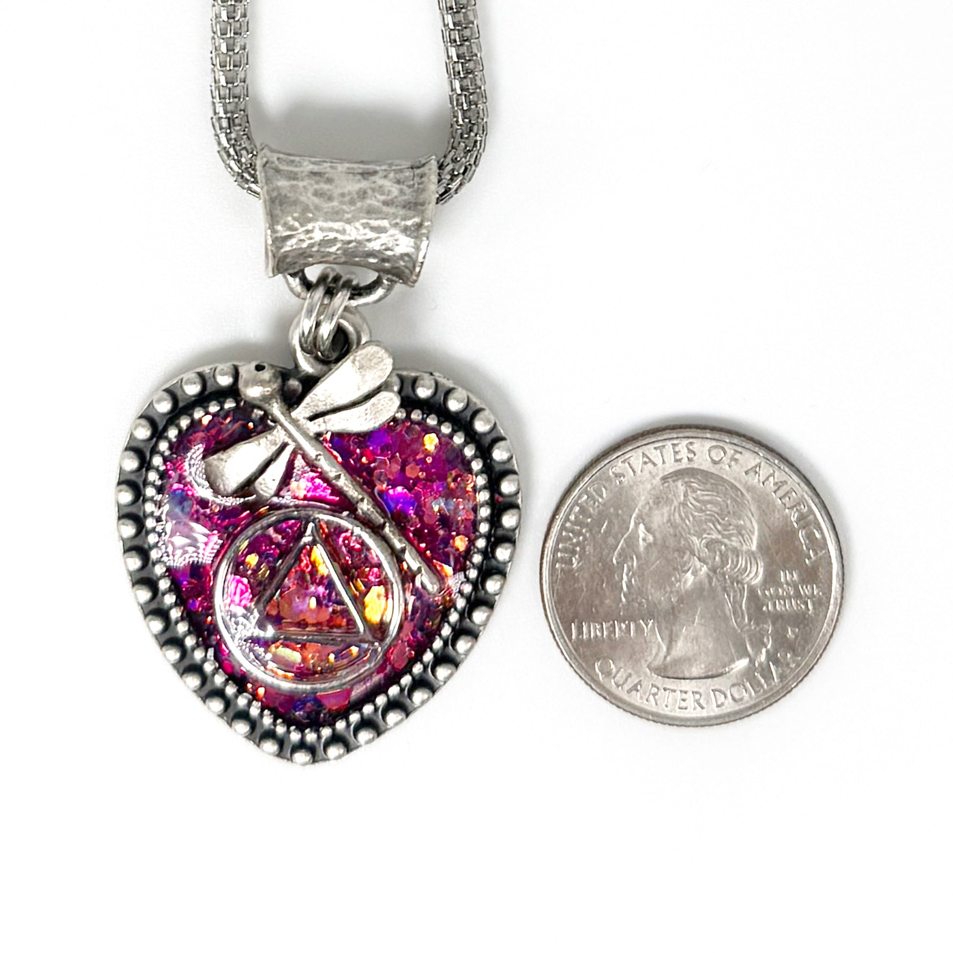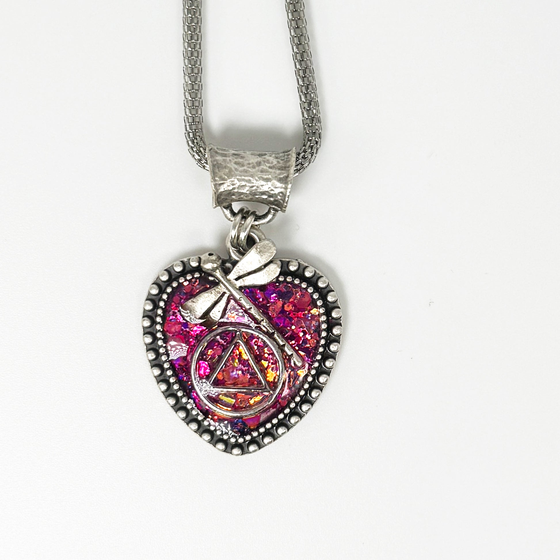 My One of a Kind Hand Painted Resin Sobriety Pendants are Unique, Handcrafted pieces of jewelry designed to symbolize and celebrate your journey in recovery. I incorporate many symbols in my work such as hearts. Hearts represent “My Heart is in Recovery” Each pendant comes with a 18” silver plated chain