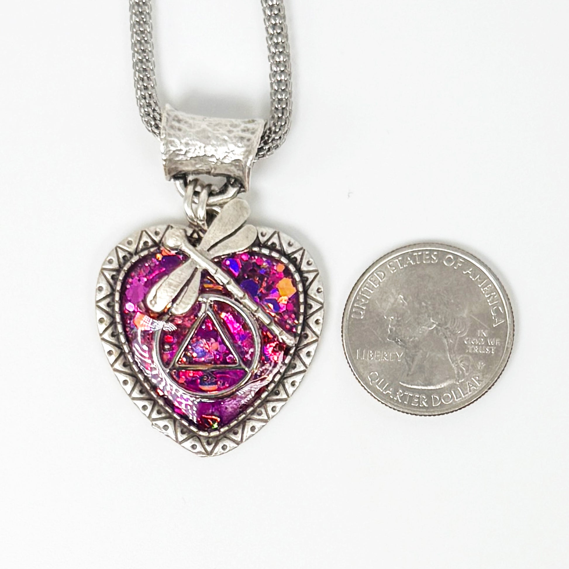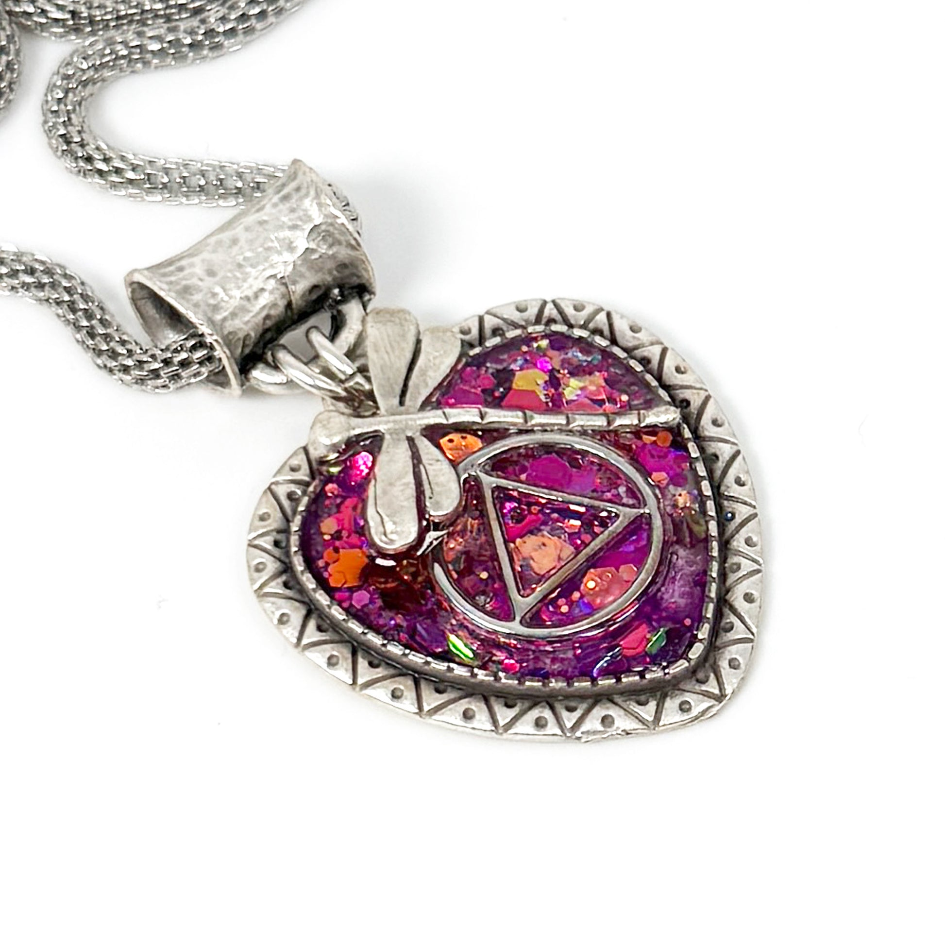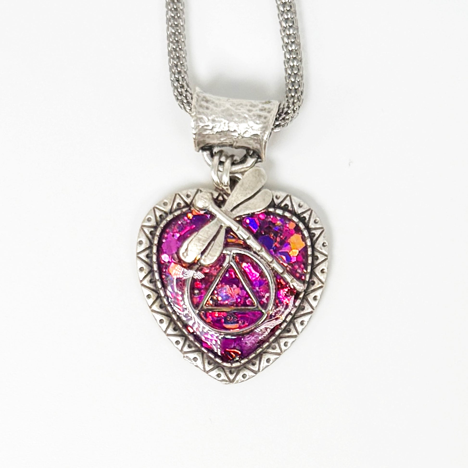 My One of a Kind Hand Painted Resin Sobriety Pendants are Unique, Handcrafted pieces of jewelry designed to symbolize and celebrate your journey in recovery. I incorporate many symbols in my work such as hearts. Hearts represent “My Heart is in Recovery” Each pendant comes with a 18” silver plated chain