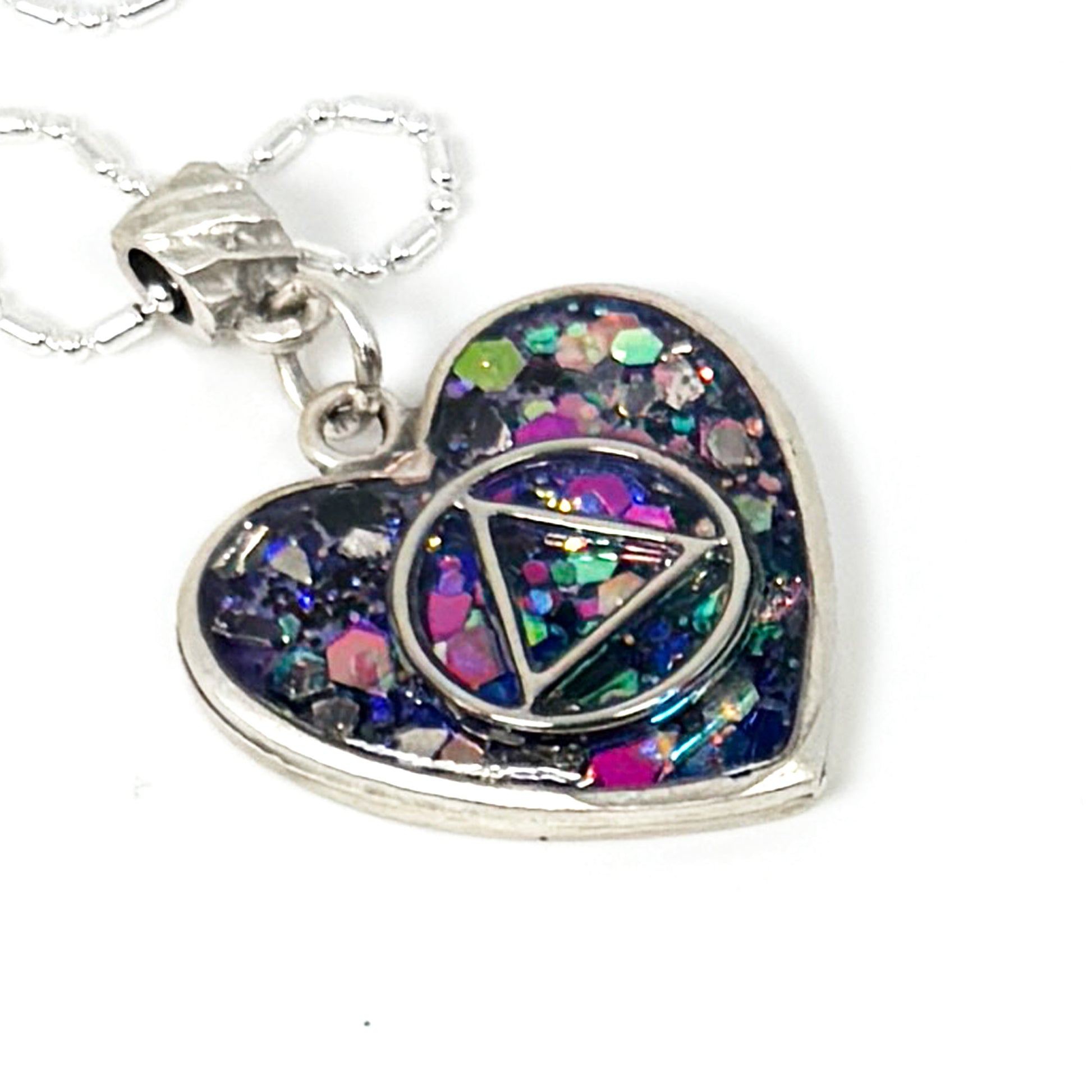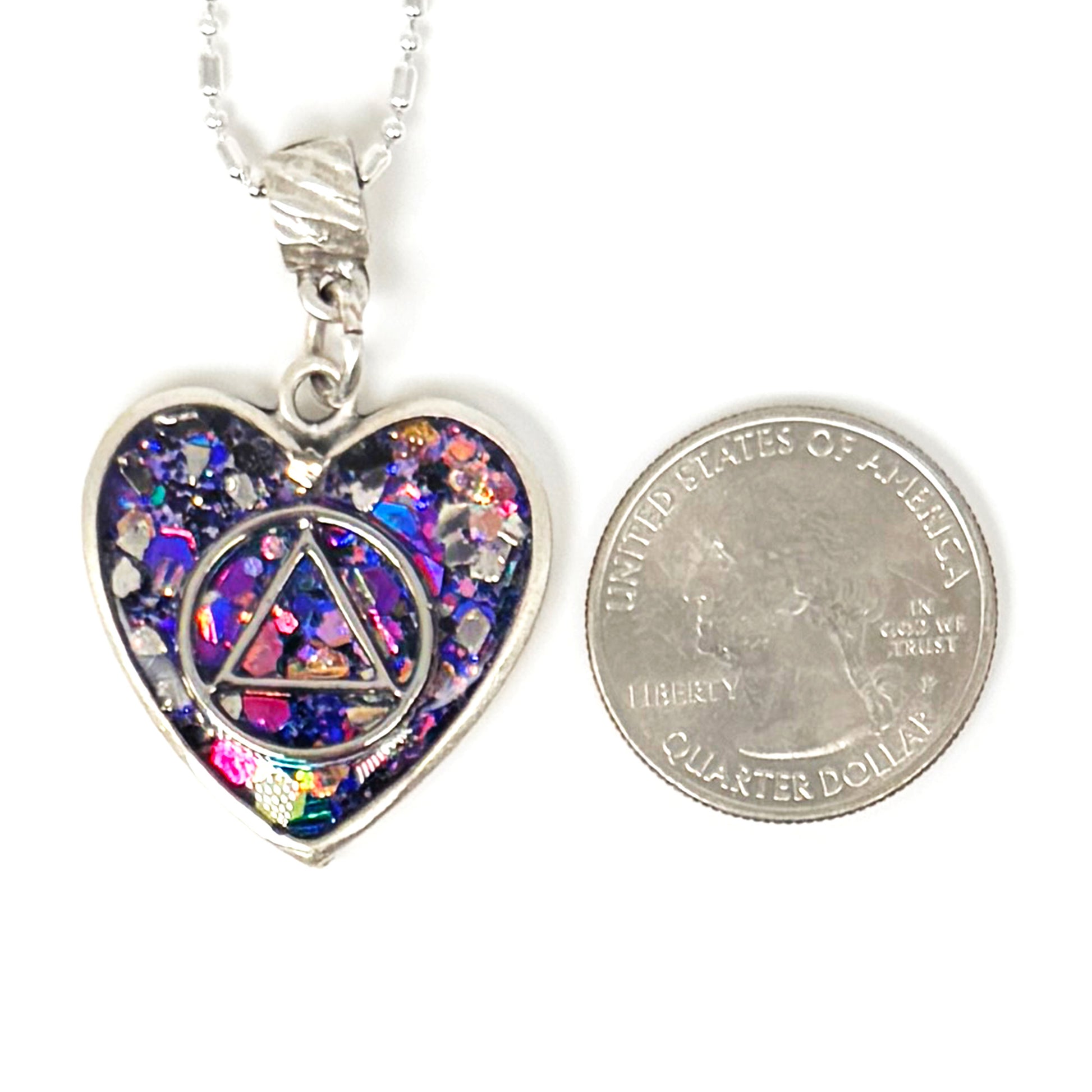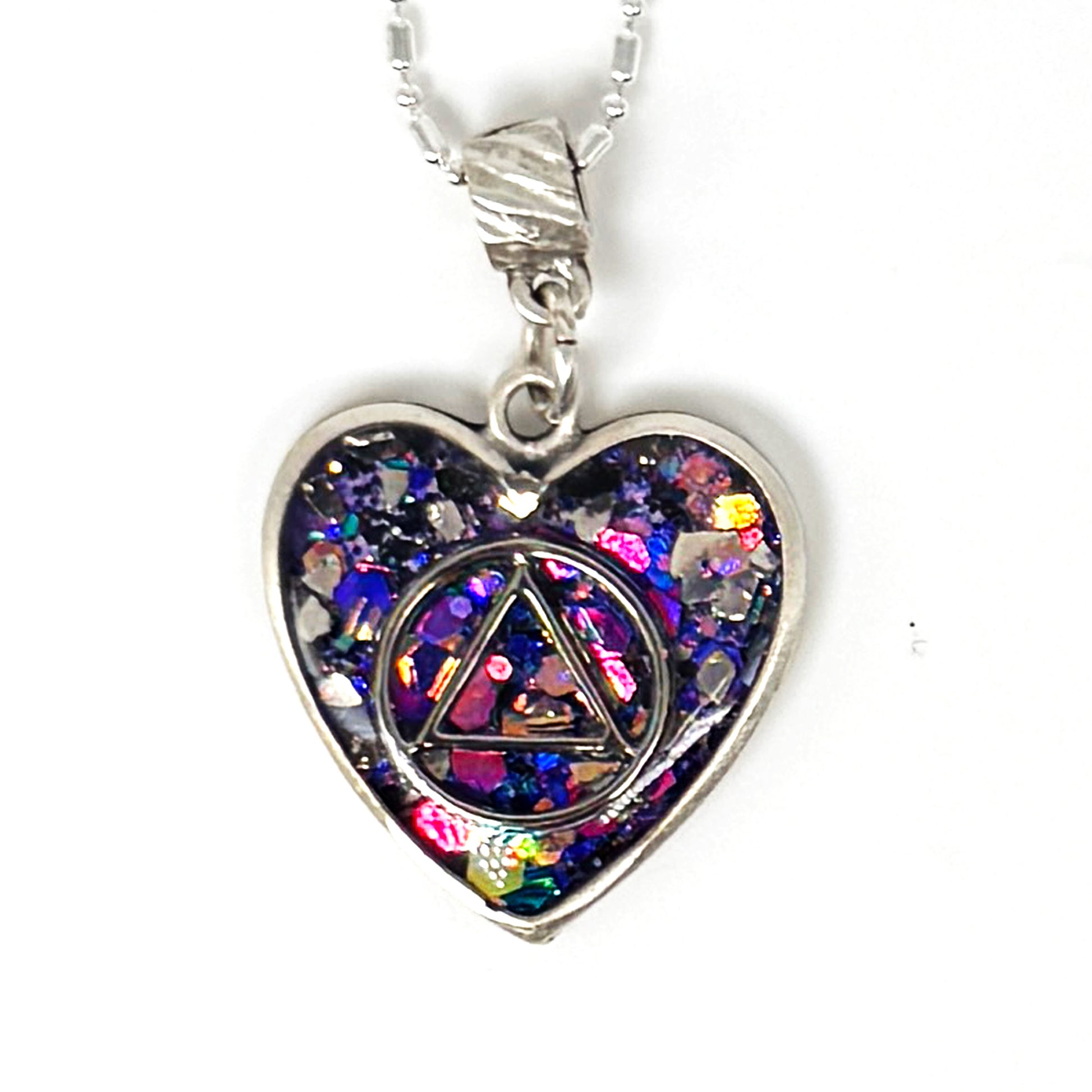 My One of a Kind Hand Painted Resin Sobriety Pendants are Unique, Handcrafted pieces of jewelry designed to symbolize and celebrate your journey in recovery. I incorporate many symbols in my work such as hearts. Hearts represent “My Heart is in Recovery” Each pendant comes with a 18” silver plated chain