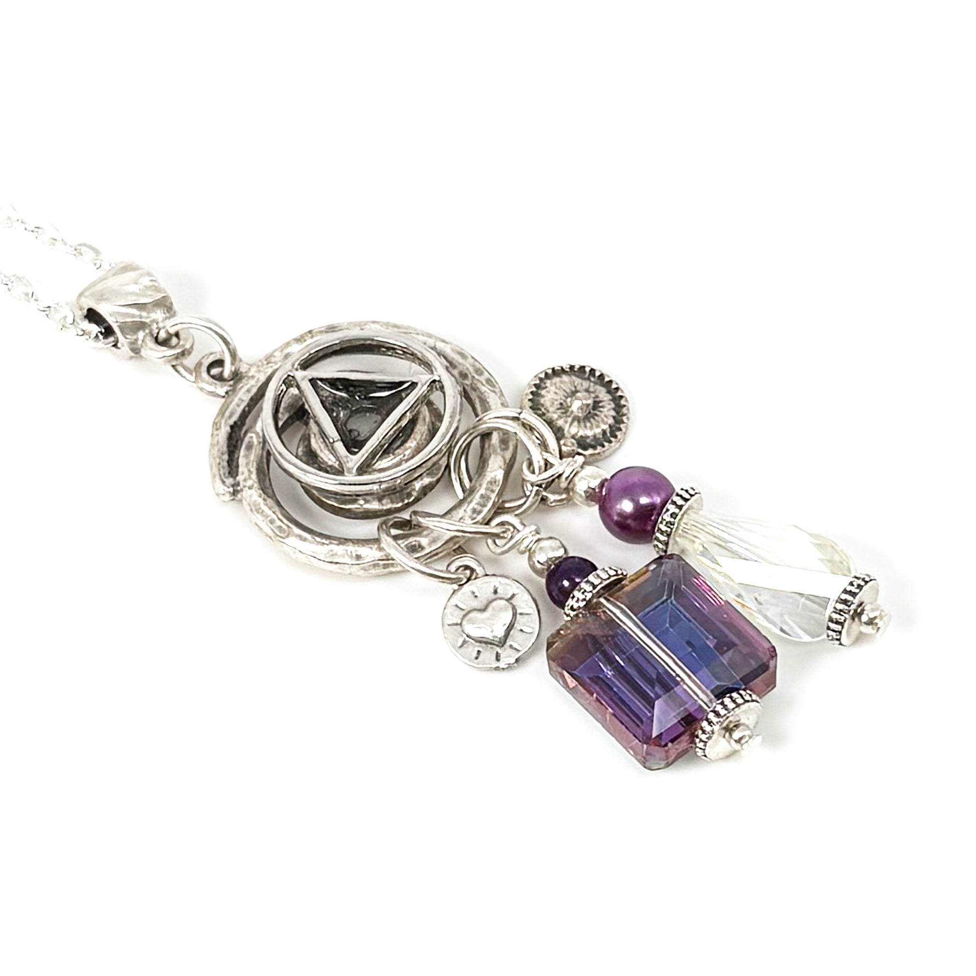 My One of a Kind Hand Painted Resin Sobriety Pendants are Unique, Handcrafted pieces of jewelry designed to symbolize and celebrate your journey in recovery. I incorporate many symbols in my work such as hearts. Hearts represent “My Heart is in Recovery” Each pendant comes with a 18” silver plated chain
