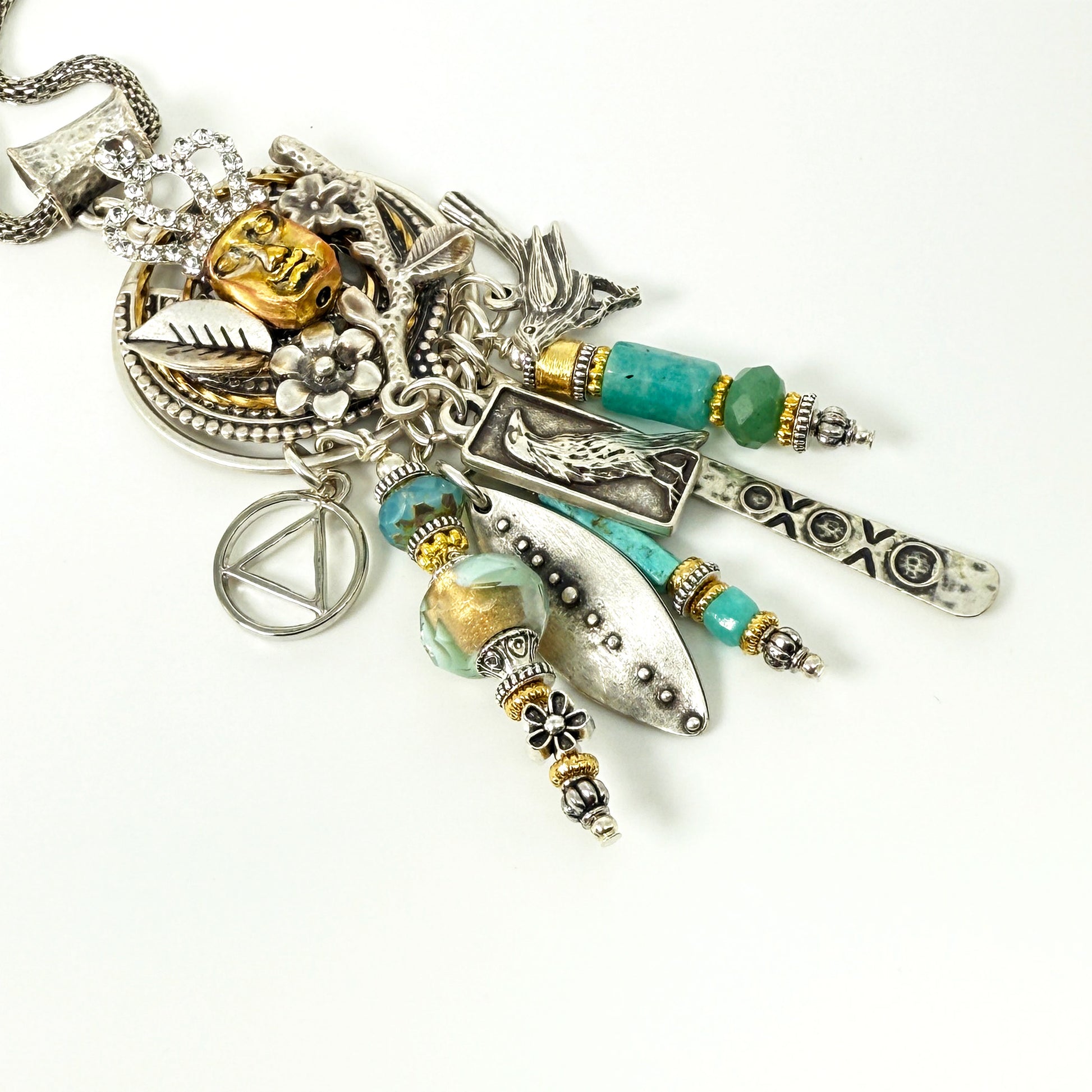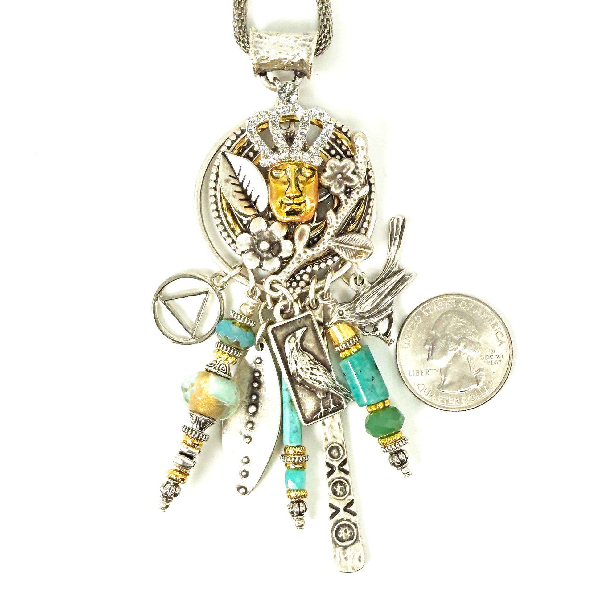 My One of a Kind “Sobriety Story Women” jewelry pendants are a beautiful tribute to sober women around the world of strength, courage and wisdom. Each piece embodies a story. Made with intention, love and care, these spiritual totem pendants serve as a reminder of the transformative power of sobriety. May you follow your heart and let the pieces sing to you, reflecting on your own unique journey and the strength within. These are made in a meditative state one piece at a time !