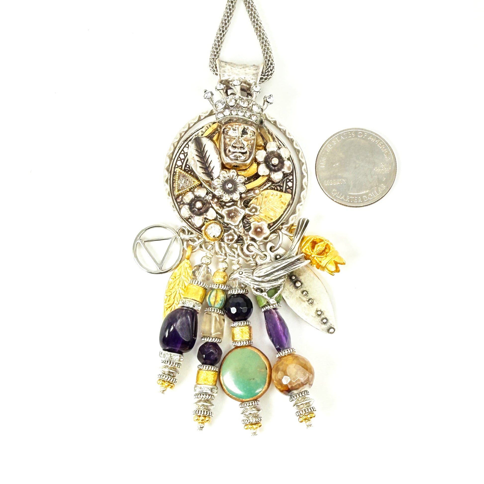 My One of a Kind “Sobriety Story Women” jewelry pendants are a beautiful tribute to sober women around the world of strength, courage and wisdom. Each piece embodies a story. Made with intention, love and care, these spiritual totem pendants serve as a reminder of the transformative power of sobriety. May you follow your heart and let the pieces sing to you, reflecting on your own unique journey and the strength within. These are made in a meditative state one piece at a time !