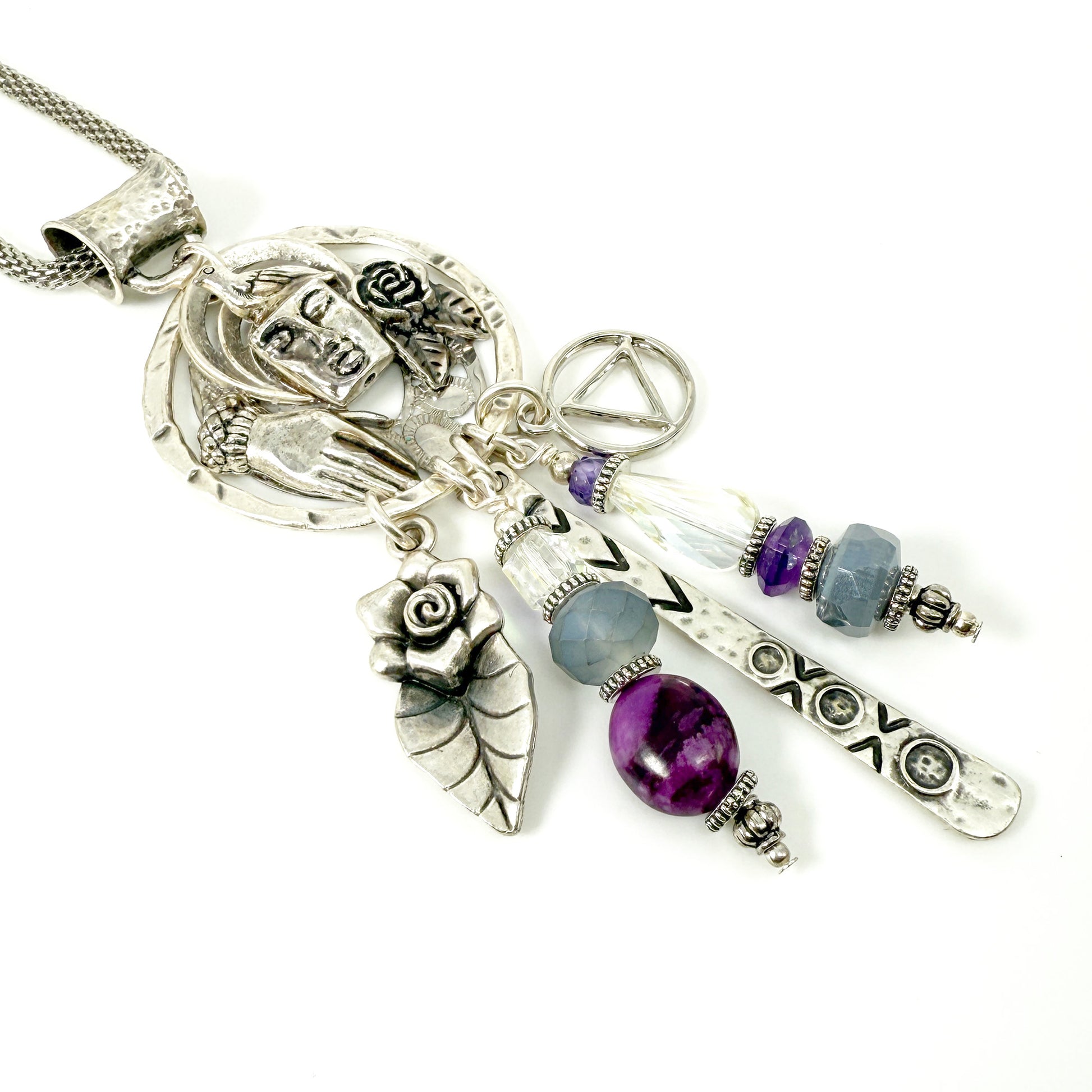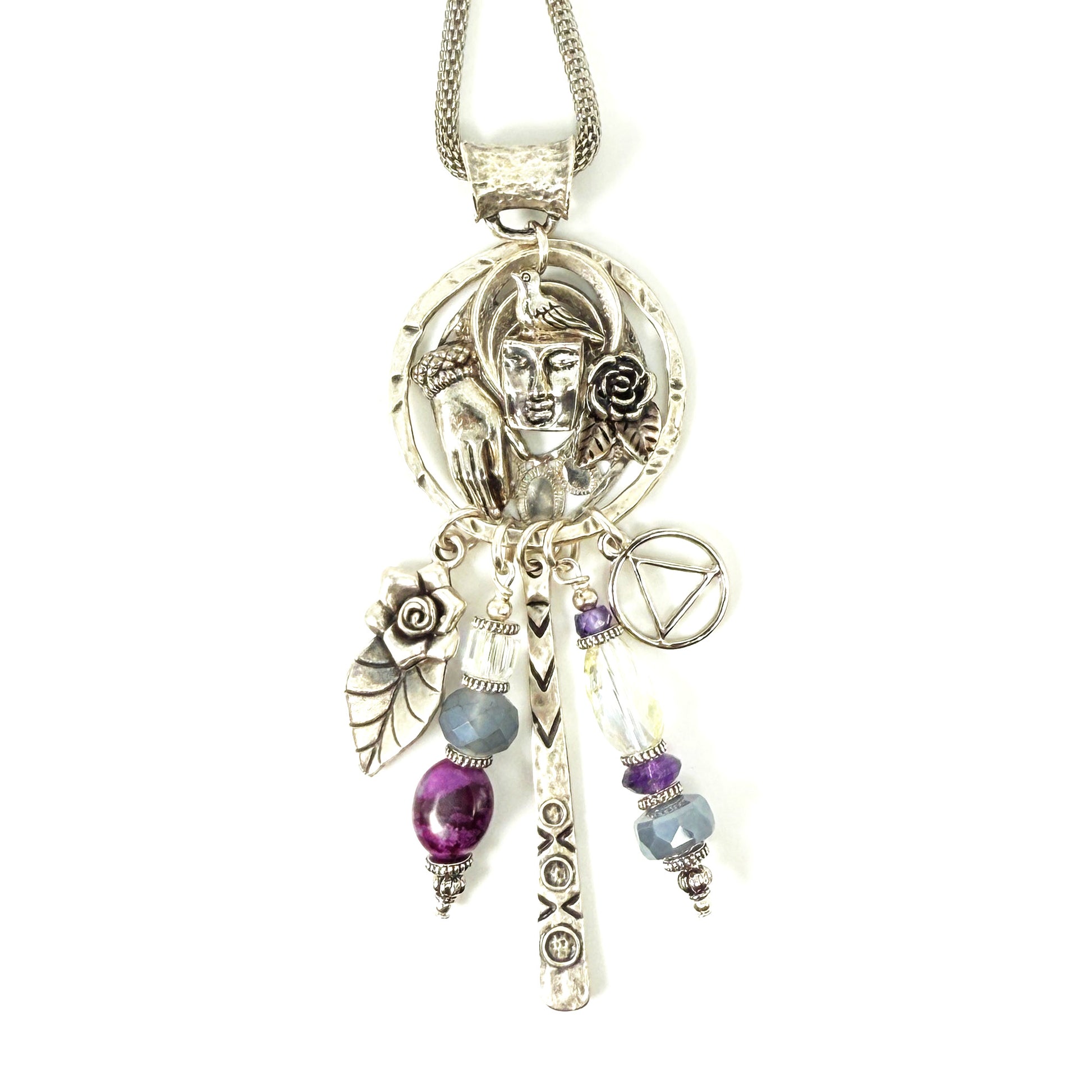 My One of a Kind “Sobriety Story Women” jewelry pendants are a beautiful tribute to sober women around the world of strength, courage and wisdom. Each piece embodies a story. Made with intention, love and care, these spiritual totem pendants serve as a reminder of the transformative power of sobriety. May you follow your heart and let the pieces sing to you, reflecting on your own unique journey and the strength within. These are made in a meditative state one piece at a time !