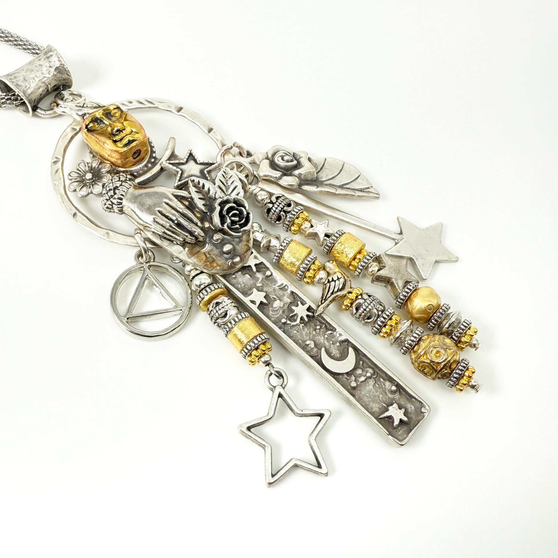 My One of a Kind “Sobriety Story Women” jewelry pendants are a beautiful tribute to sober women around the world of strength, courage and wisdom. Each piece embodies a story. Made with intention, love and care, these spiritual totem pendants serve as a reminder of the transformative power of sobriety. May you follow your heart and let the pieces sing to you, reflecting on your own unique journey and the strength within. These are made in a meditative state one piece at a time !