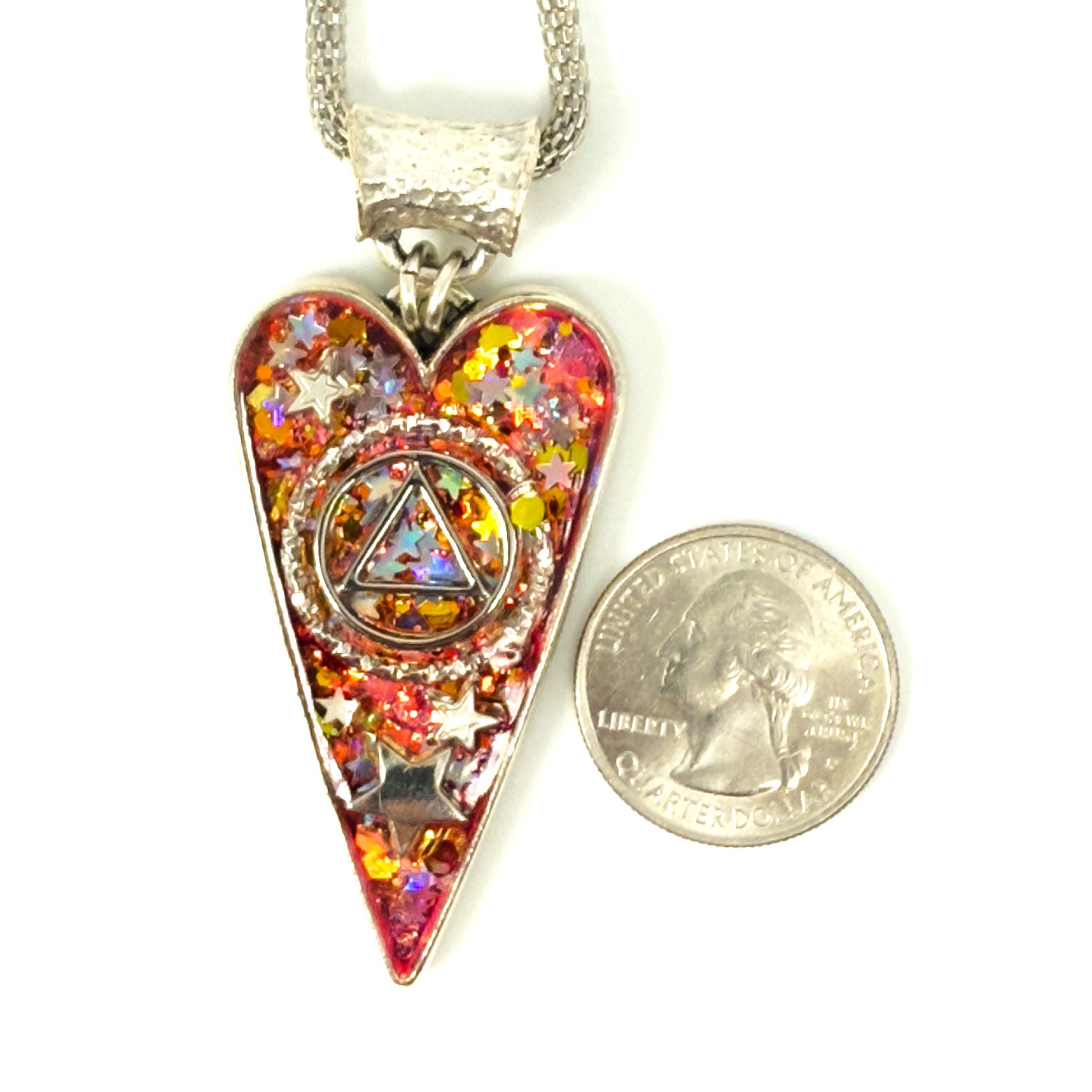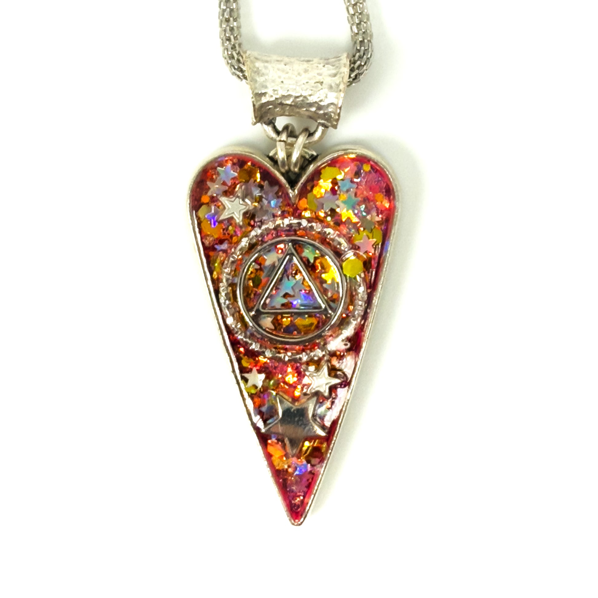 My One of a Kind Hand Painted Resin Sobriety Pendants are Unique, Handcrafted pieces of jewelry designed to symbolize and celebrate your journey in recovery. I incorporate many symbols in my work such as hearts. Hearts represent “My Heart is in Recovery” Each pendant comes with a 18” silver plated chain