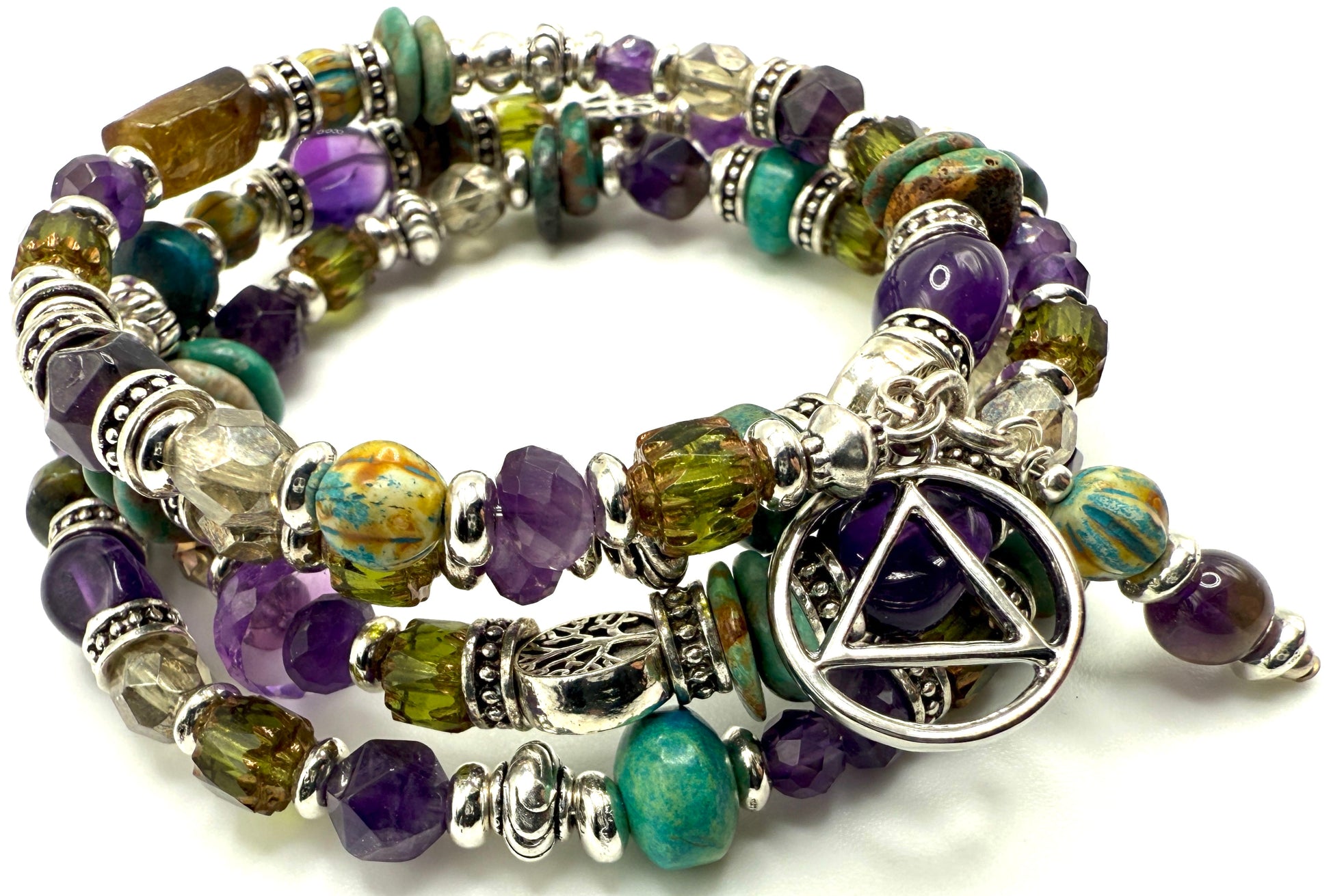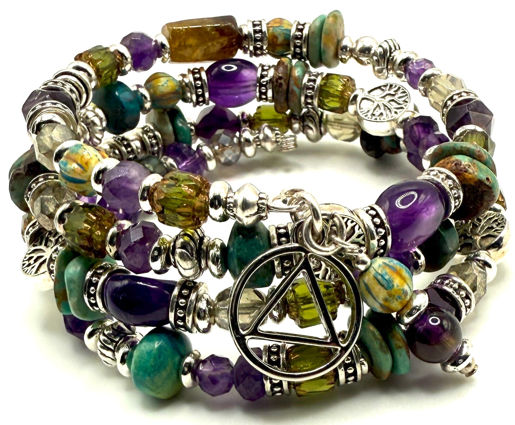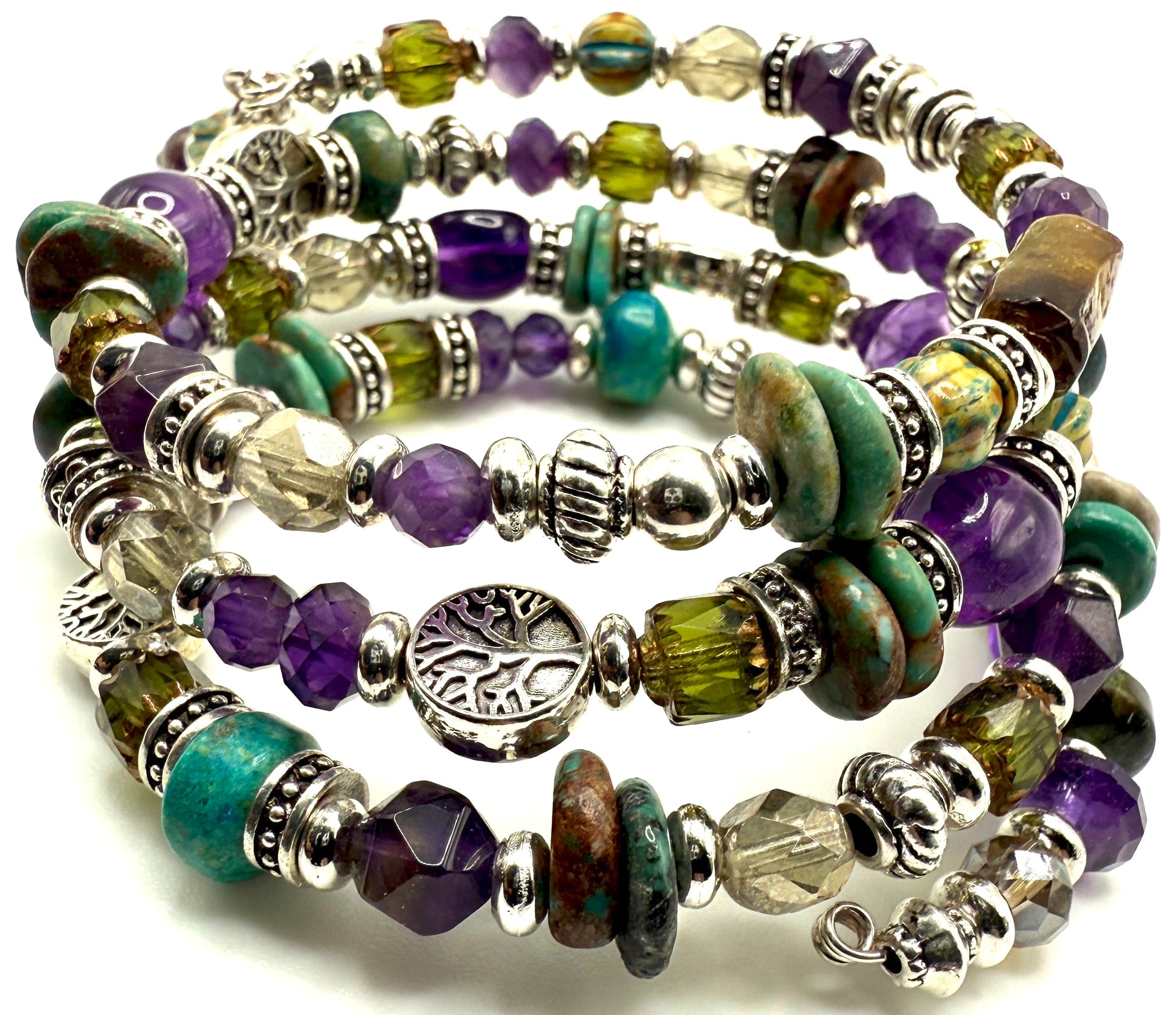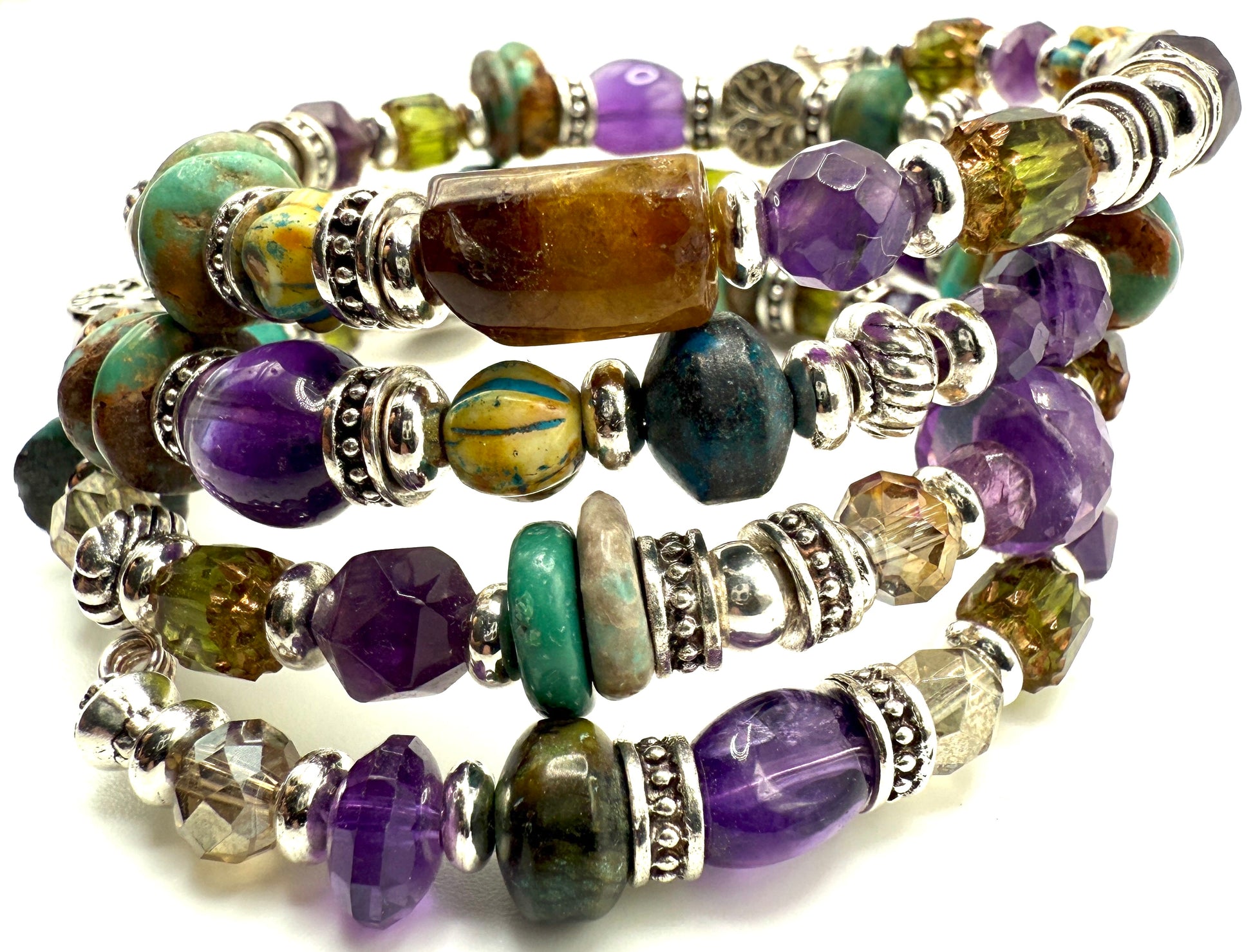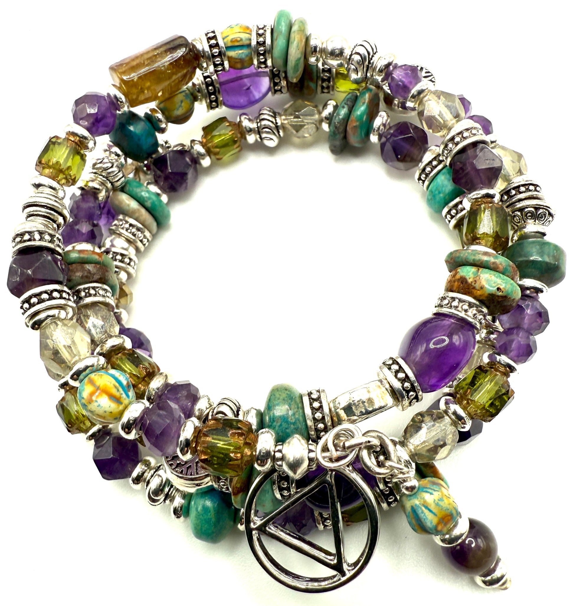 Gemstone wire wrap bracelets are designed by Michelle B. They offer a unique blend of beauty and creativity. Each piece is meticulously handcrafted, featuring an array of natural gemstones. Michelle B.’s attention to detail and artistic vision make her One of a Kind creations stand out as timeless, wearable art!