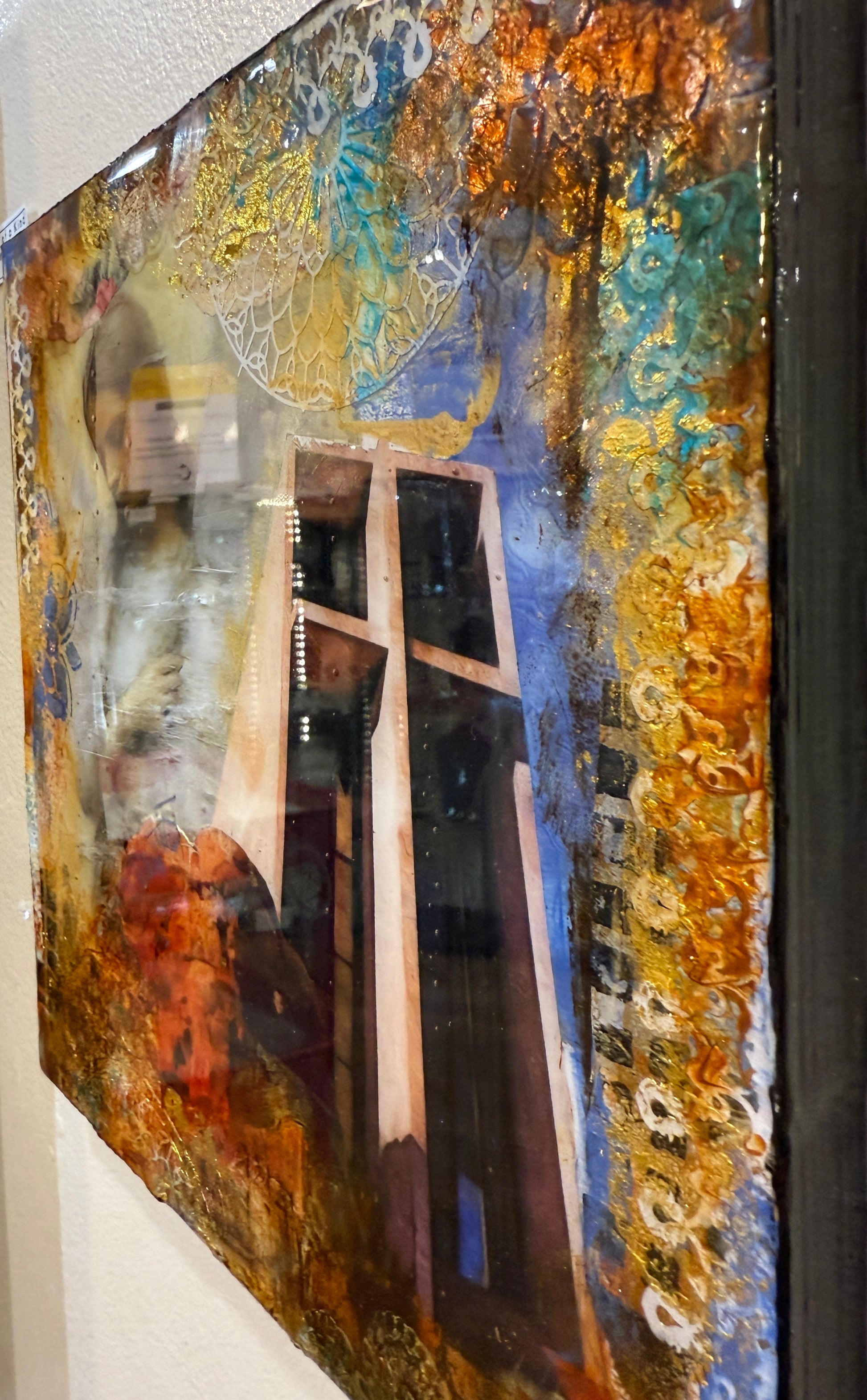 Each painting is on a one inch cradle wood panel frame that extends from the wall one inch and has a resin coating.