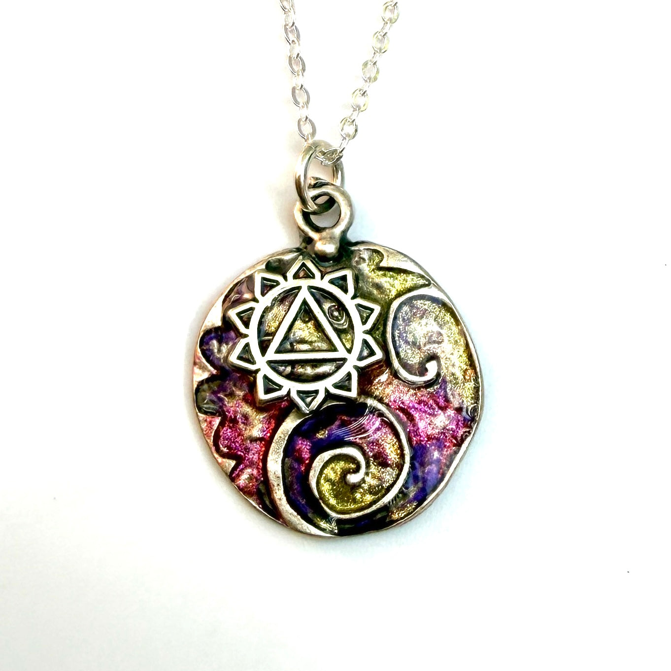 Silver plated 18” chain. This is a One of a Kind Pendant that’s sure to stand out!