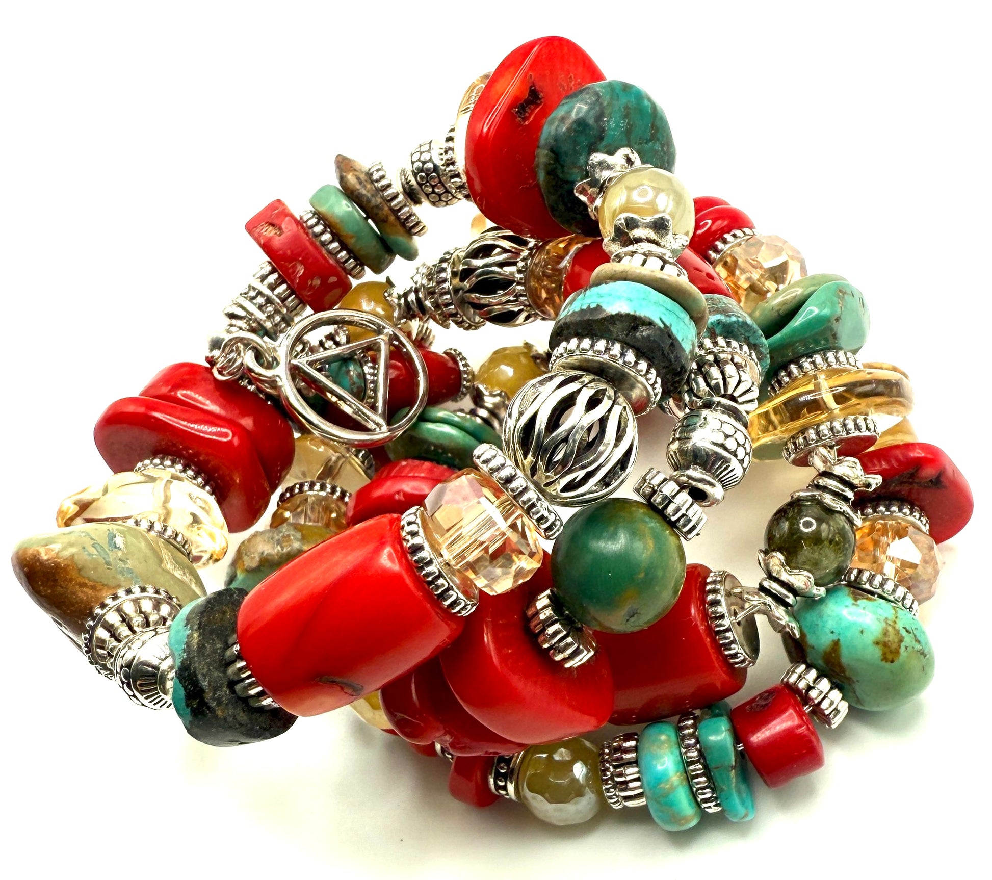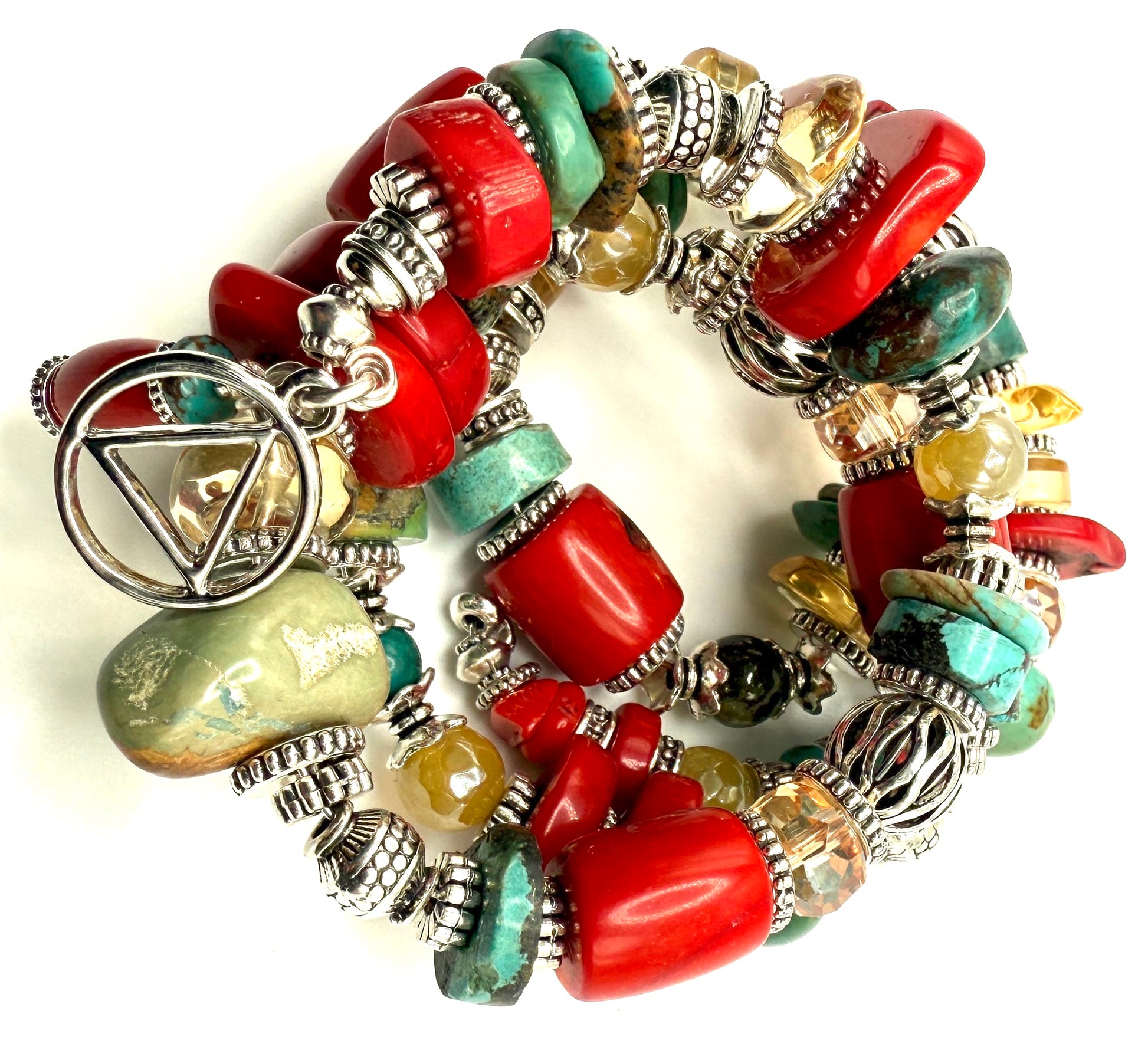 Gemstone wire wrap bracelets are designed by Michelle B. They offer a unique blend of beauty and creativity. Each piece is meticulously handcrafted, featuring an array of natural gemstones. Michelle B.’s attention to detail and artistic vision make her One of a Kind creations stand out as timeless, wearable art!
