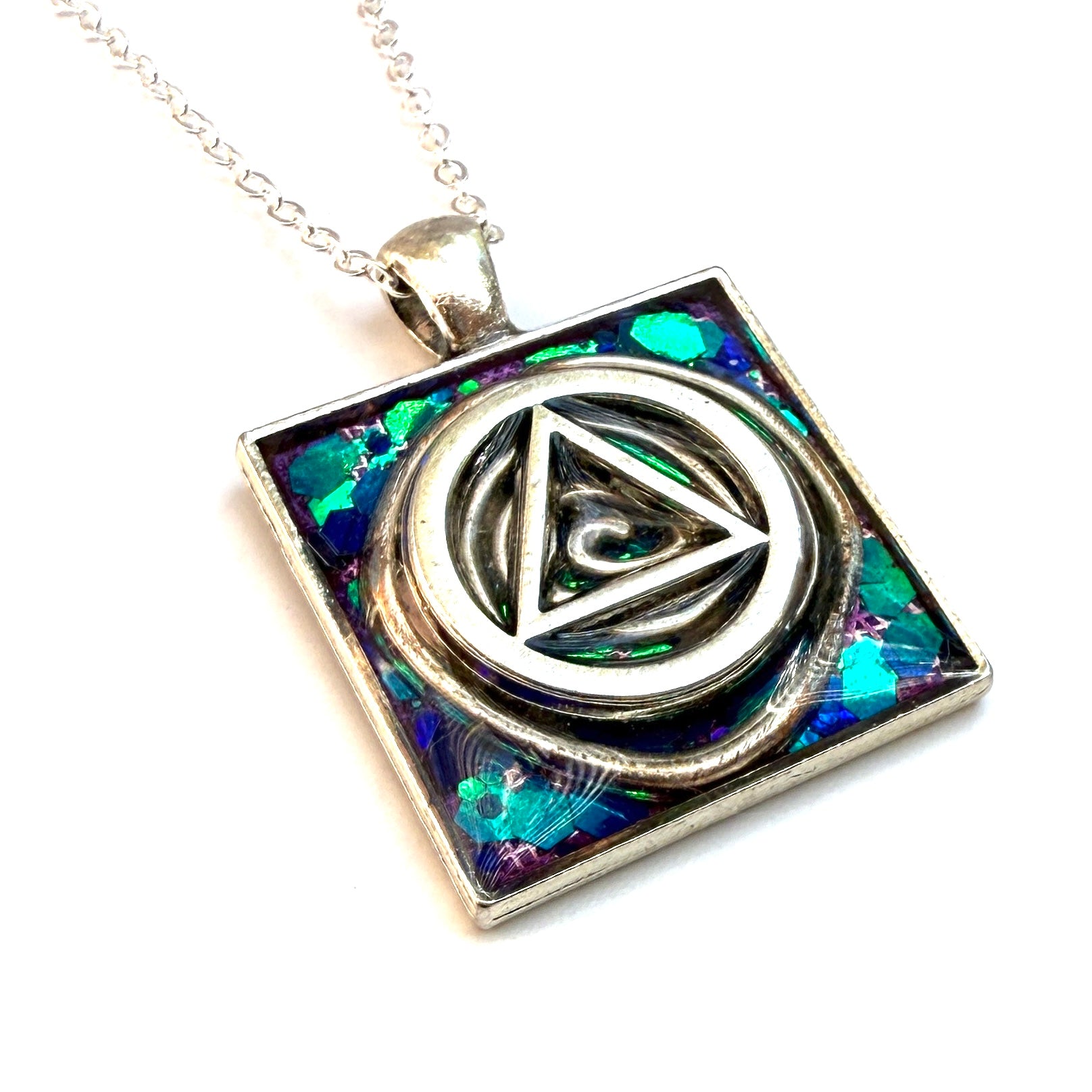 Silver plated 18” chain. This is a One of a Kind Pendant that’s sure to stand out!