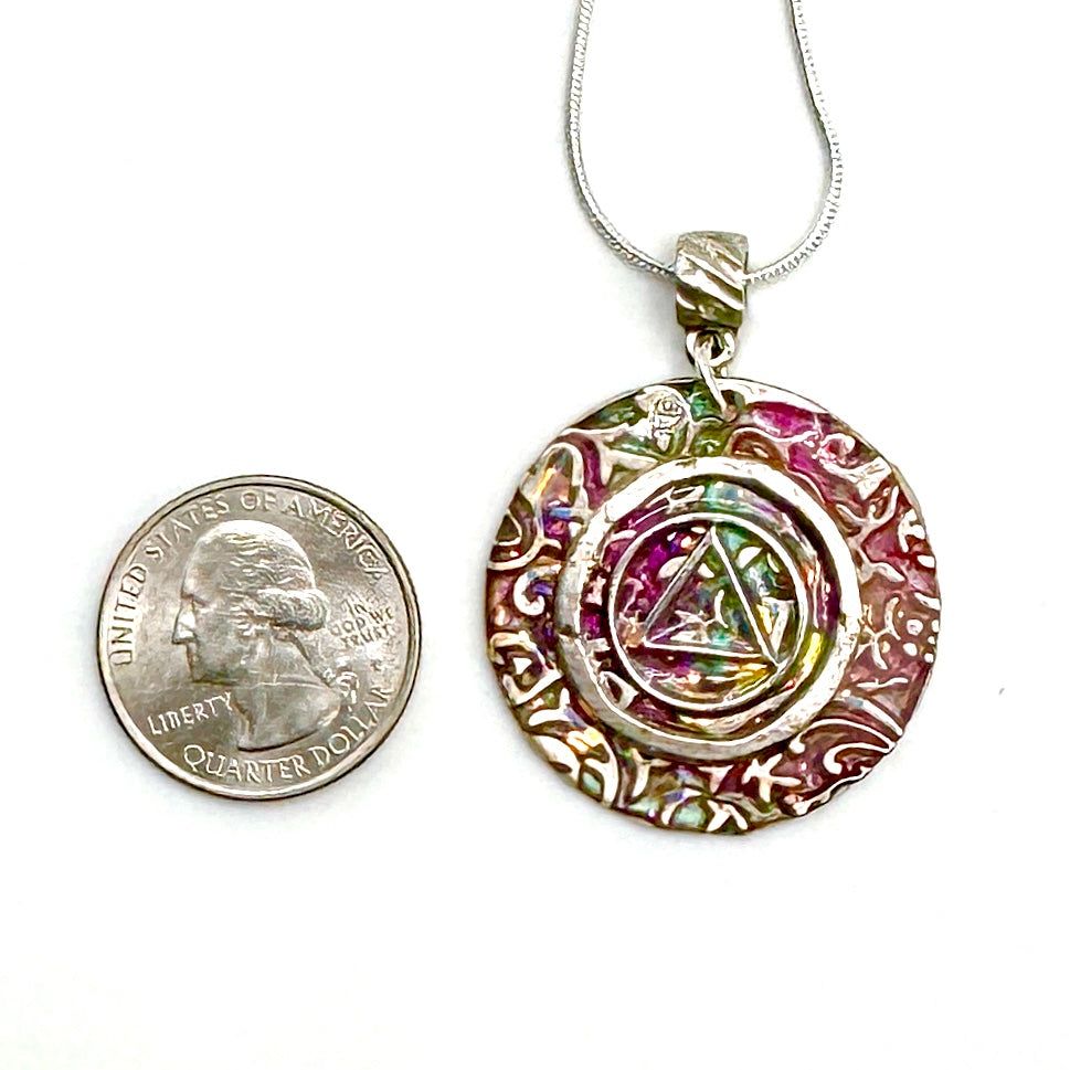 One-of a- Kind hand painted sobriety pendants are unique, handcrafted pieces of jewelry designed to symbolize and celebrate your journey in recovery. Hand painted with crystal clear resin by Michelle b