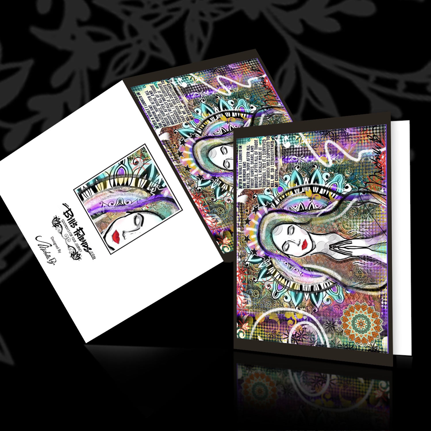 "Sentiments for your Journey" are designed by Michelle B with both the front and back decorated. The inside of the cards are left blank. Let us know if you would like us to include one for a gift with a message from you.