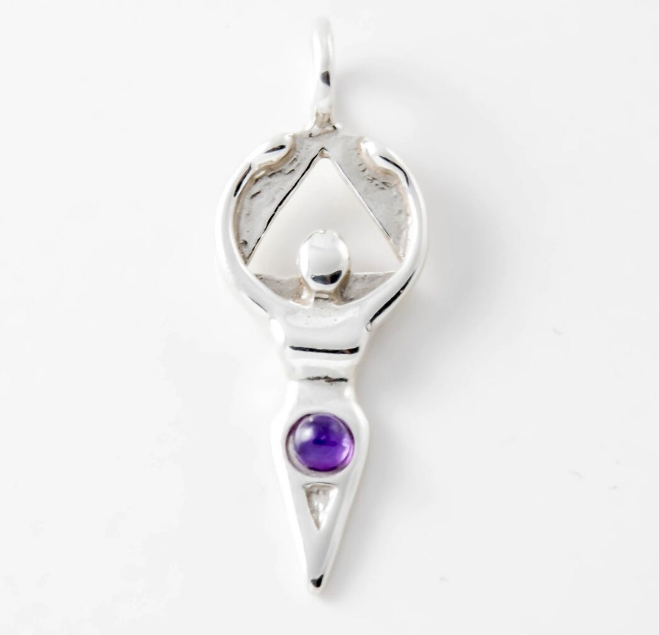 Sterling silver recovery pendants by Michelle B are elegant pieces symbolizing personal transformation and healing. The Woman in Recovery was the first pendant created many moons ago. She is embracing the circle and triangle, set with an amethyst. Crafted with intricate detail, this pendant offers both beauty and deep emotional significance for those on a journey of recovery. Blessings, Michelle B
