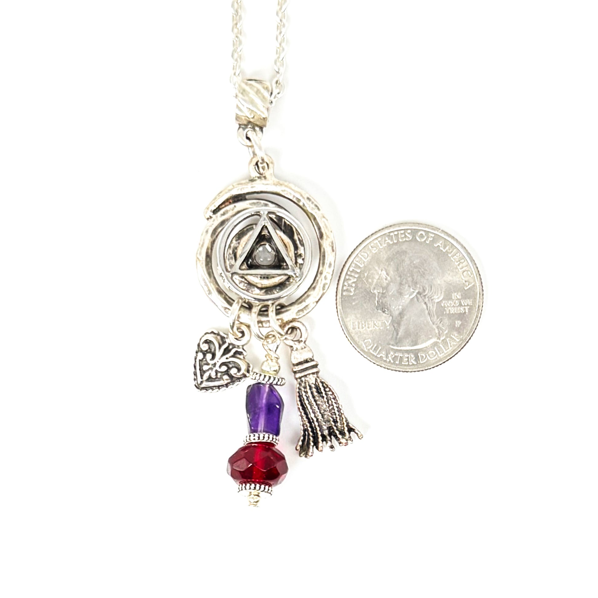 My One of a Kind Hand Painted Resin Sobriety Pendants are Unique, Handcrafted pieces of jewelry designed to symbolize and celebrate your journey in recovery. I incorporate many symbols in my work such as hearts. Hearts represent “My Heart is in Recovery” Each pendant comes with a 18” silver plated chain