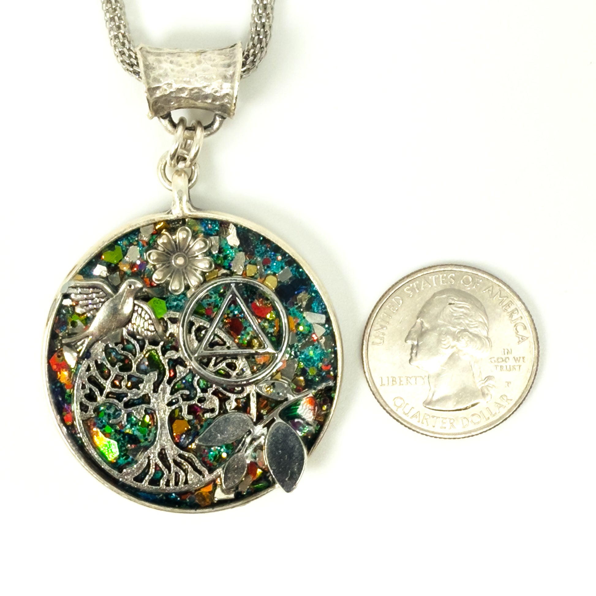 My One of a Kind Hand Painted Resin Sobriety Pendants are Unique, Handcrafted pieces of jewelry designed to symbolize and celebrate your journey in recovery. I incorporate many symbols in my work such as hearts. Hearts represent “My Heart is in Recovery” Each pendant comes with a 18” silver plated chain