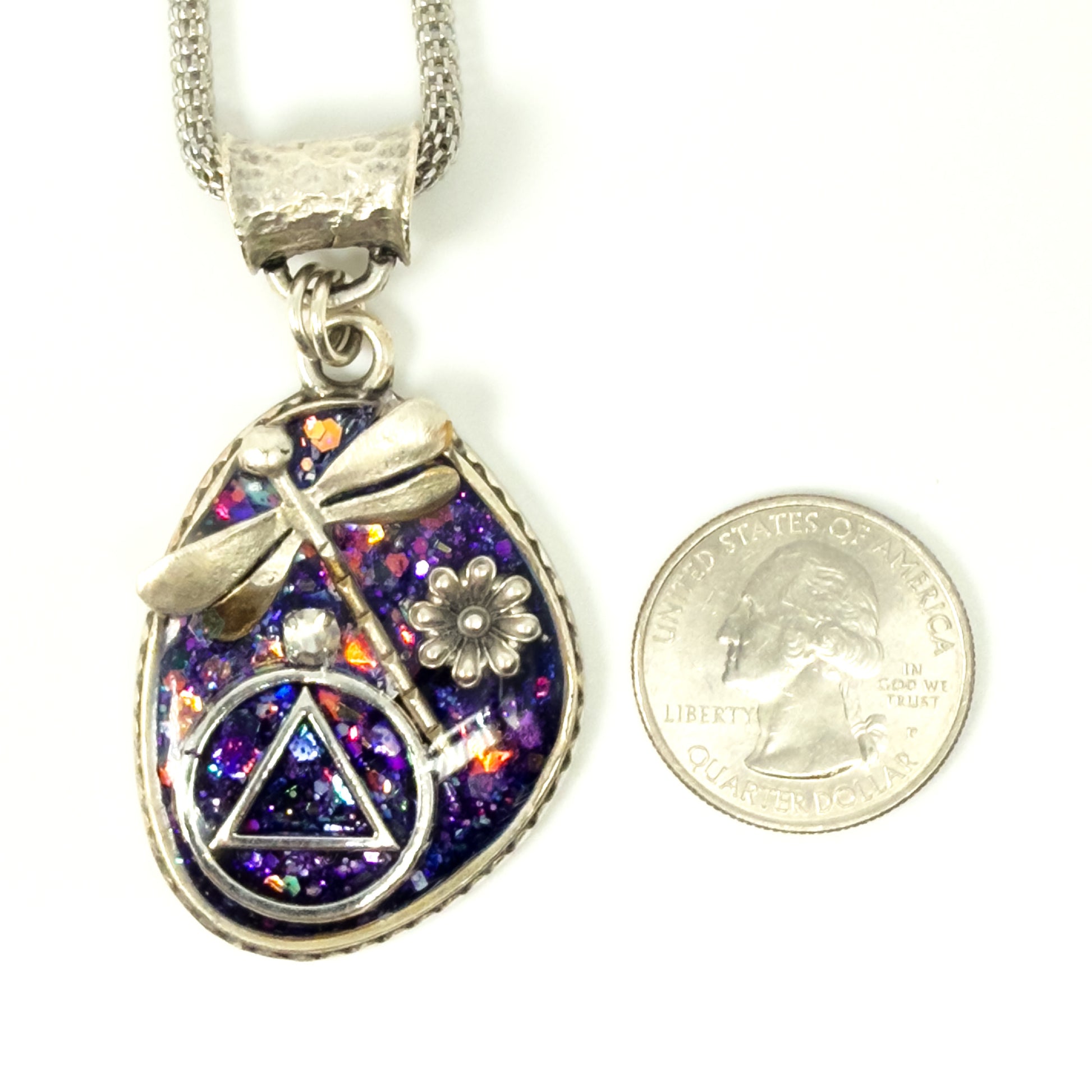 My One of a Kind Hand Painted Resin Sobriety Pendants are Unique, Handcrafted pieces of jewelry designed to symbolize and celebrate your journey in recovery. I incorporate many symbols in my work such as hearts. Hearts represent “My Heart is in Recovery” Each pendant comes with a 18” silver plated chain