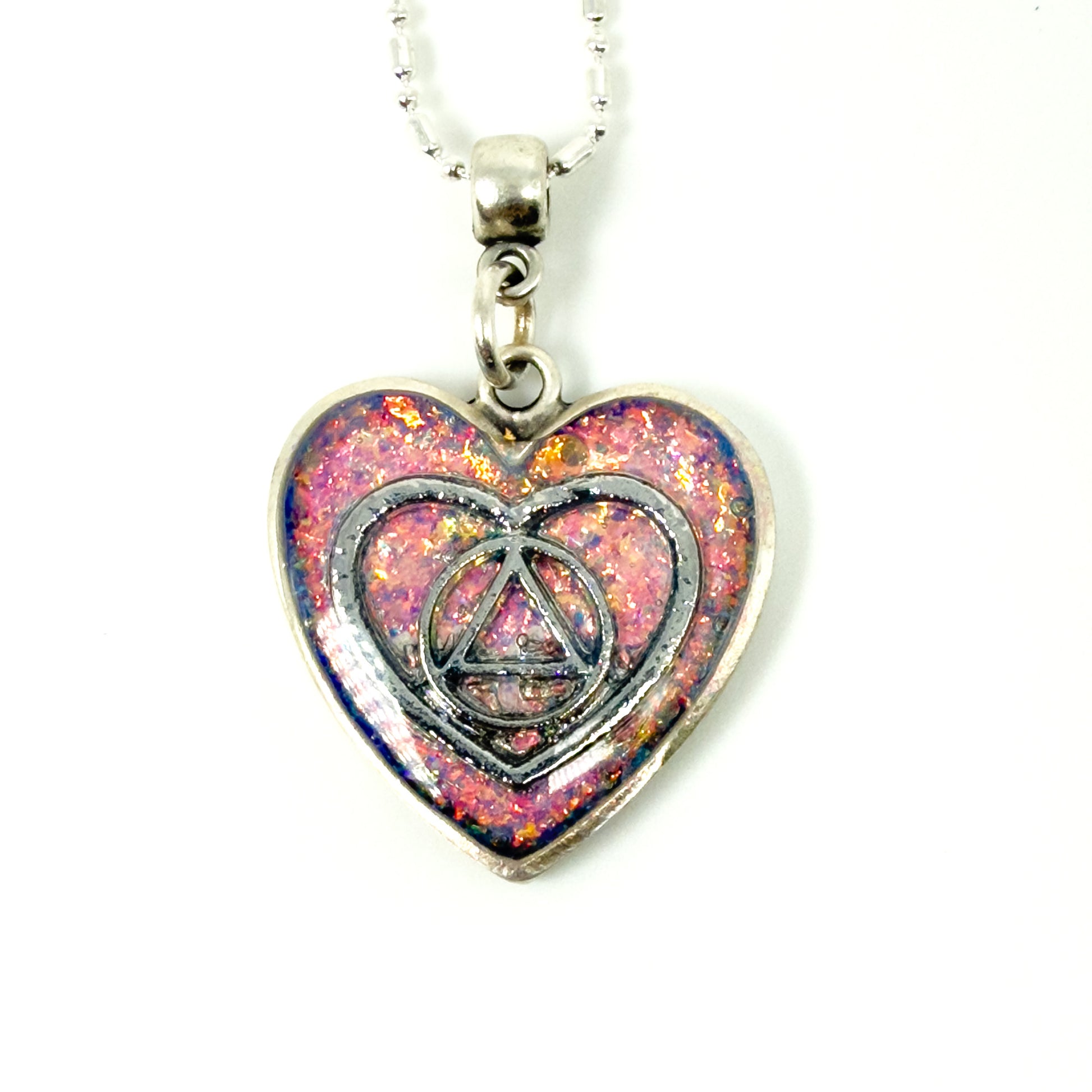 My One of a Kind Hand Painted Resin Sobriety Pendants are Unique, Handcrafted pieces of jewelry designed to symbolize and celebrate your journey in recovery. I incorporate many symbols in my work such as hearts. Hearts represent “My Heart is in Recovery” Each pendant comes with a 18” silver plated chain