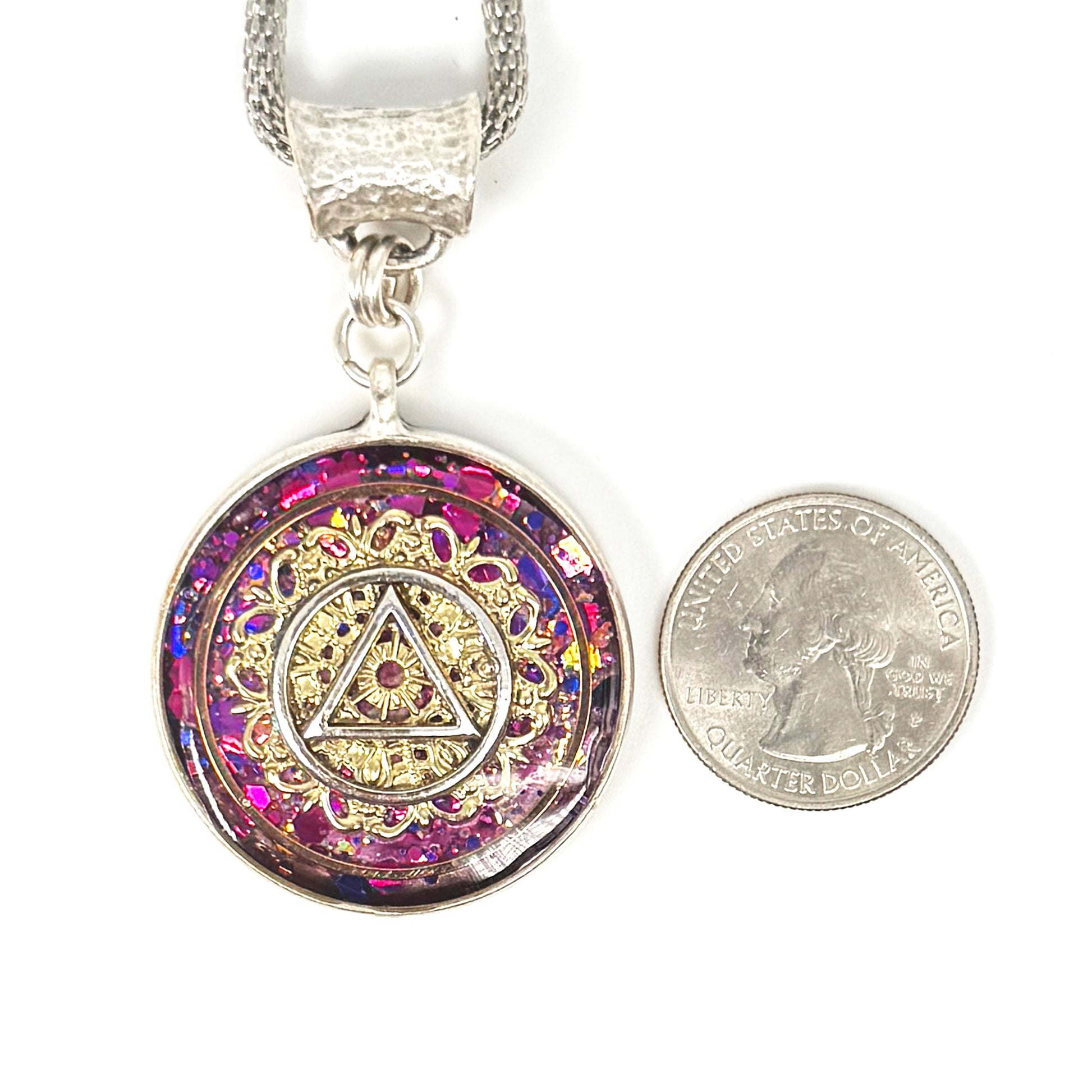 My One of a Kind Hand Painted Resin Sobriety Pendants are Unique, Handcrafted pieces of jewelry designed to symbolize and celebrate your journey in recovery. I incorporate many symbols in my work such as hearts. Hearts represent “My Heart is in Recovery” Each pendant comes with a 18” silver plated chain