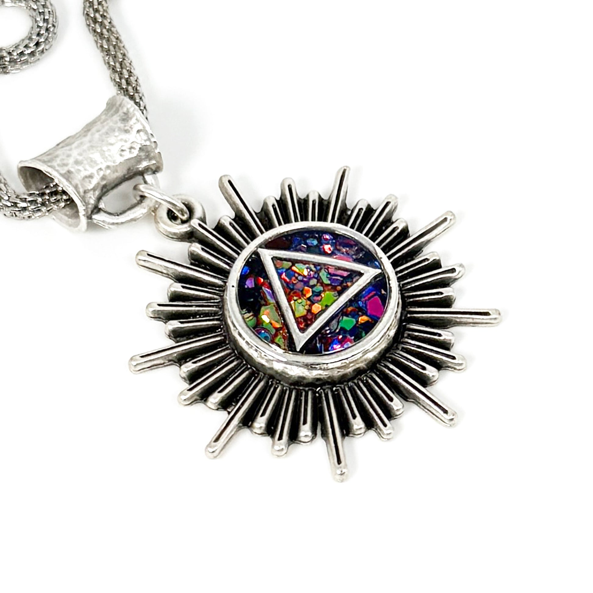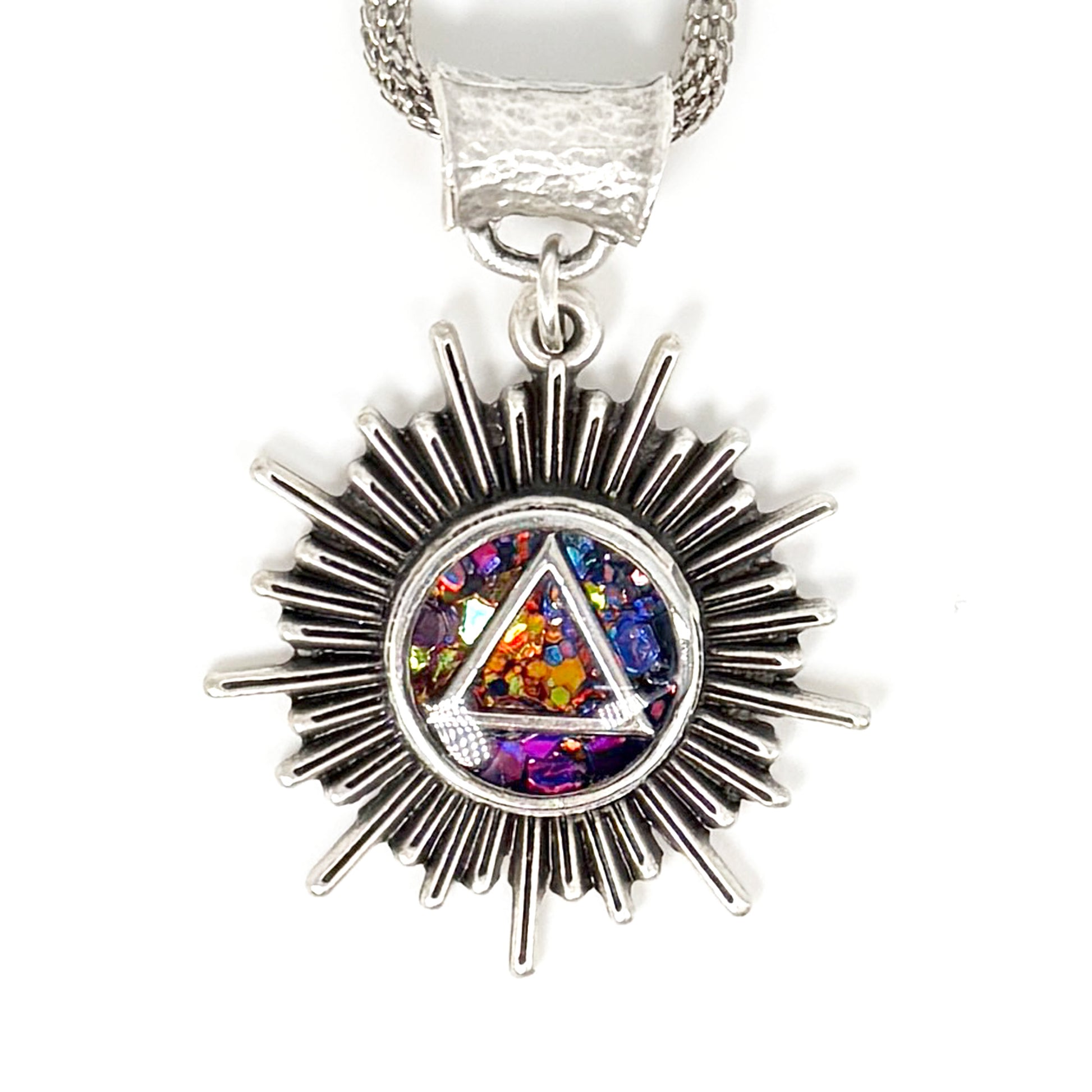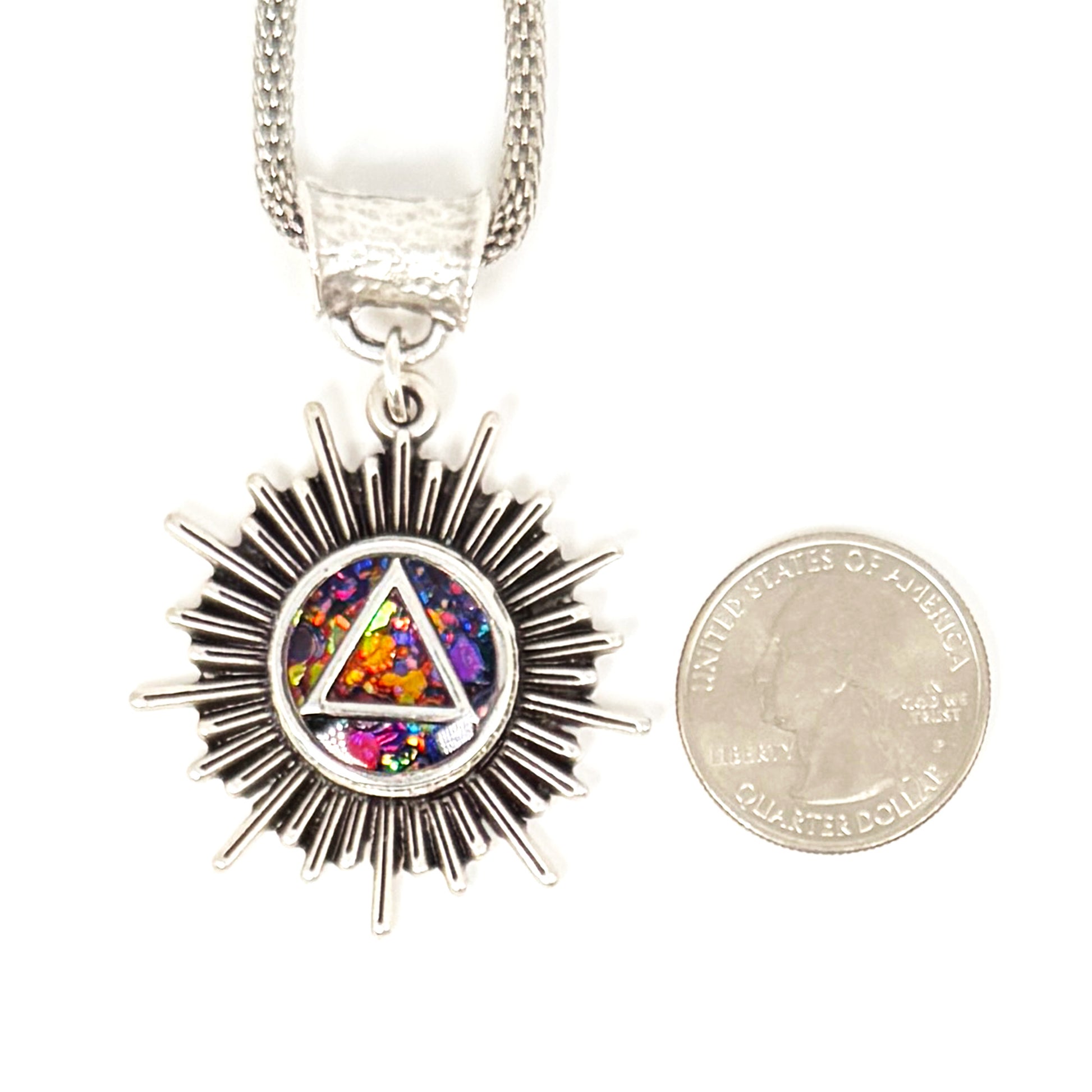My One of a Kind Hand Painted Resin Sobriety Pendants are Unique, Handcrafted pieces of jewelry designed to symbolize and celebrate your journey in recovery. I incorporate many symbols in my work such as hearts. Hearts represent “My Heart is in Recovery” Each pendant comes with a 18” silver plated chain