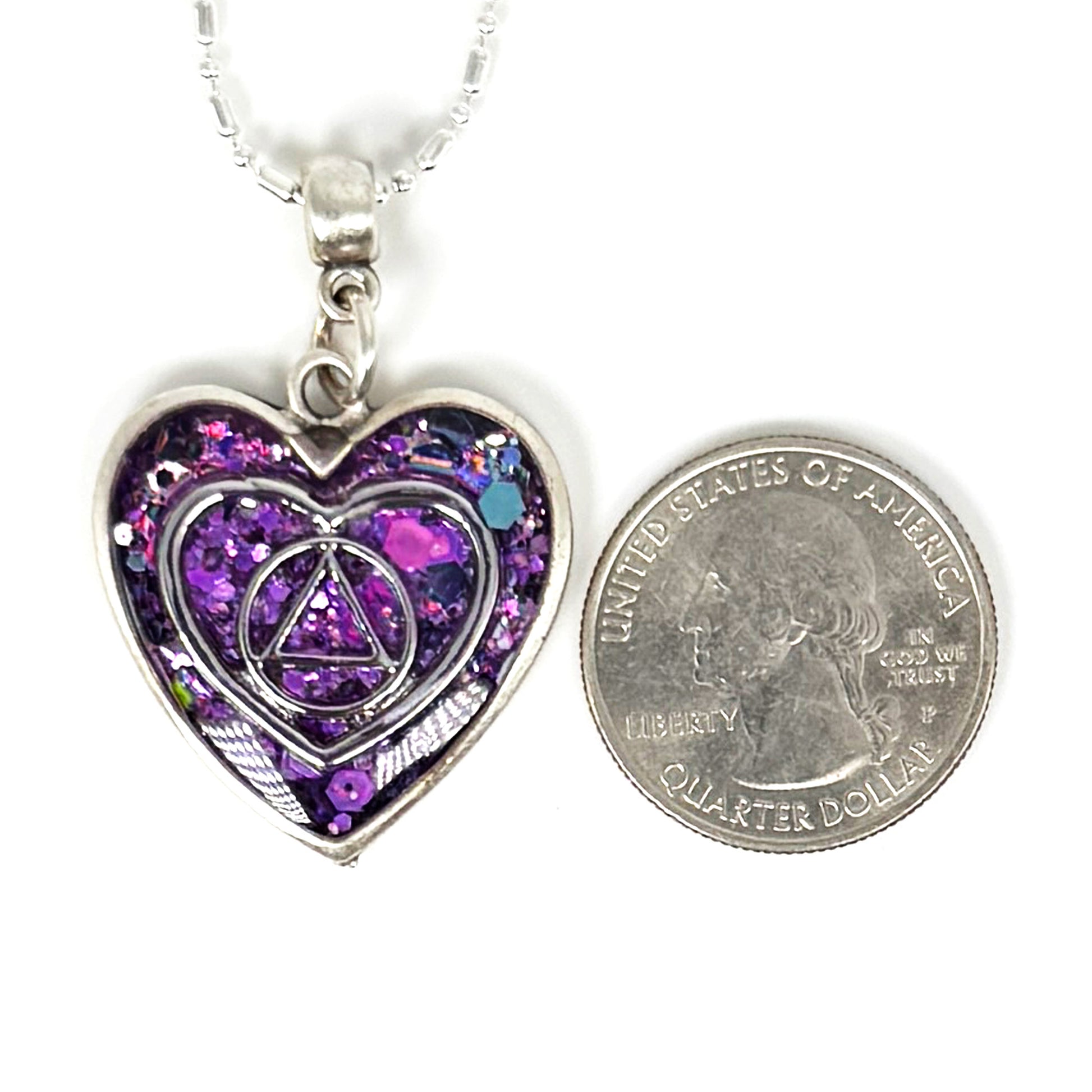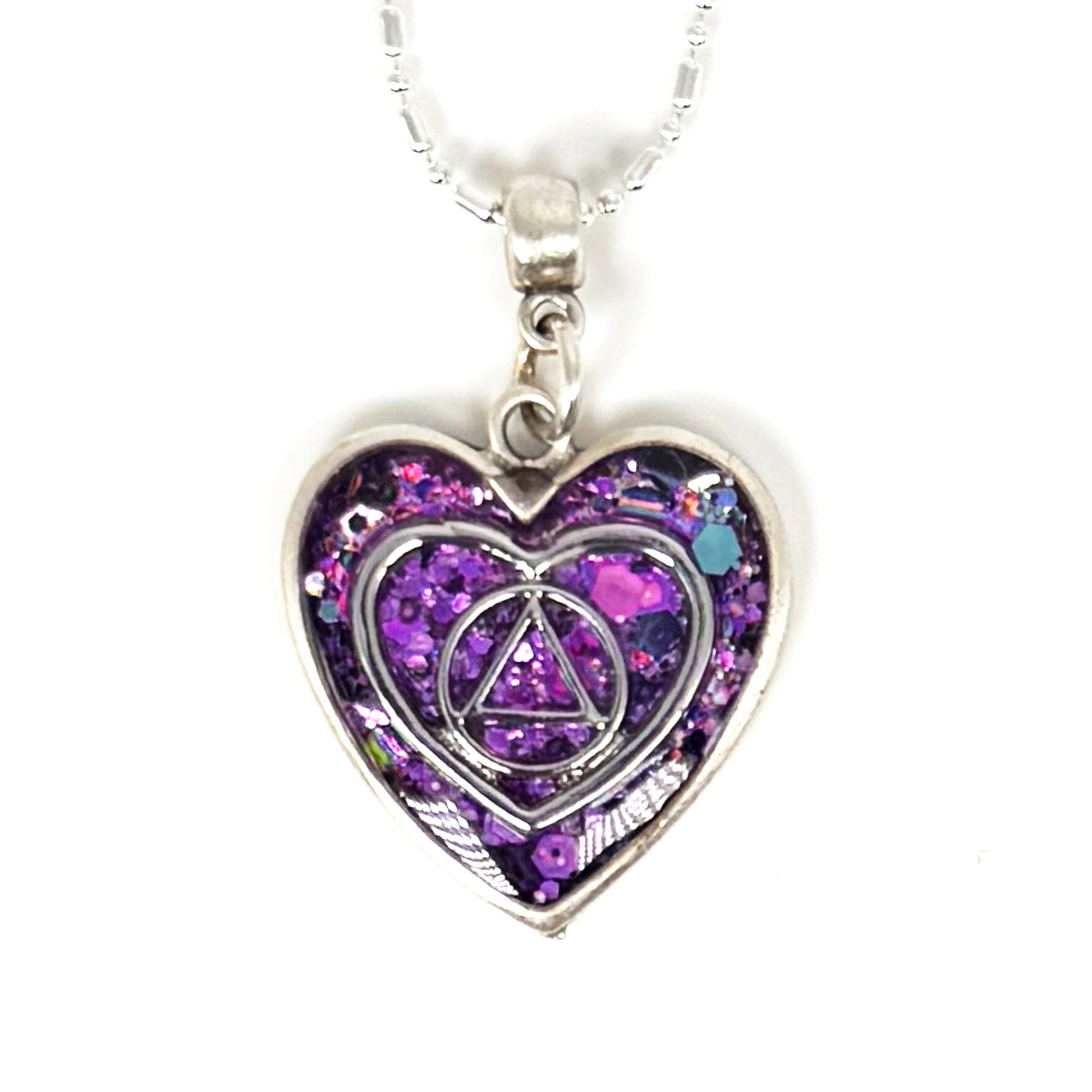 My One of a Kind Hand Painted Resin Sobriety Pendants are Unique, Handcrafted pieces of jewelry designed to symbolize and celebrate your journey in recovery. I incorporate many symbols in my work such as hearts. Hearts represent “My Heart is in Recovery” Each pendant comes with a 18” silver plated chain