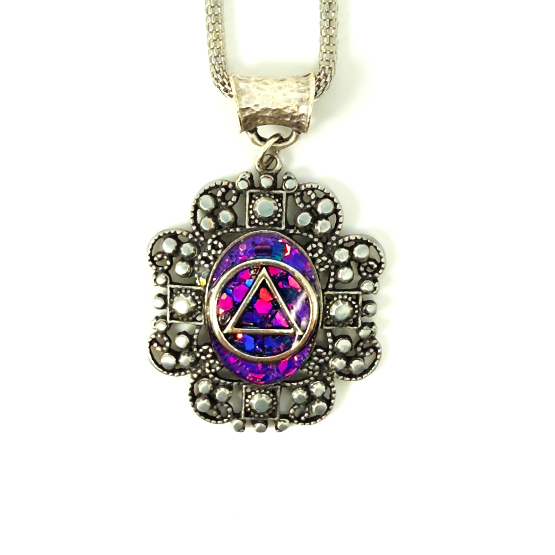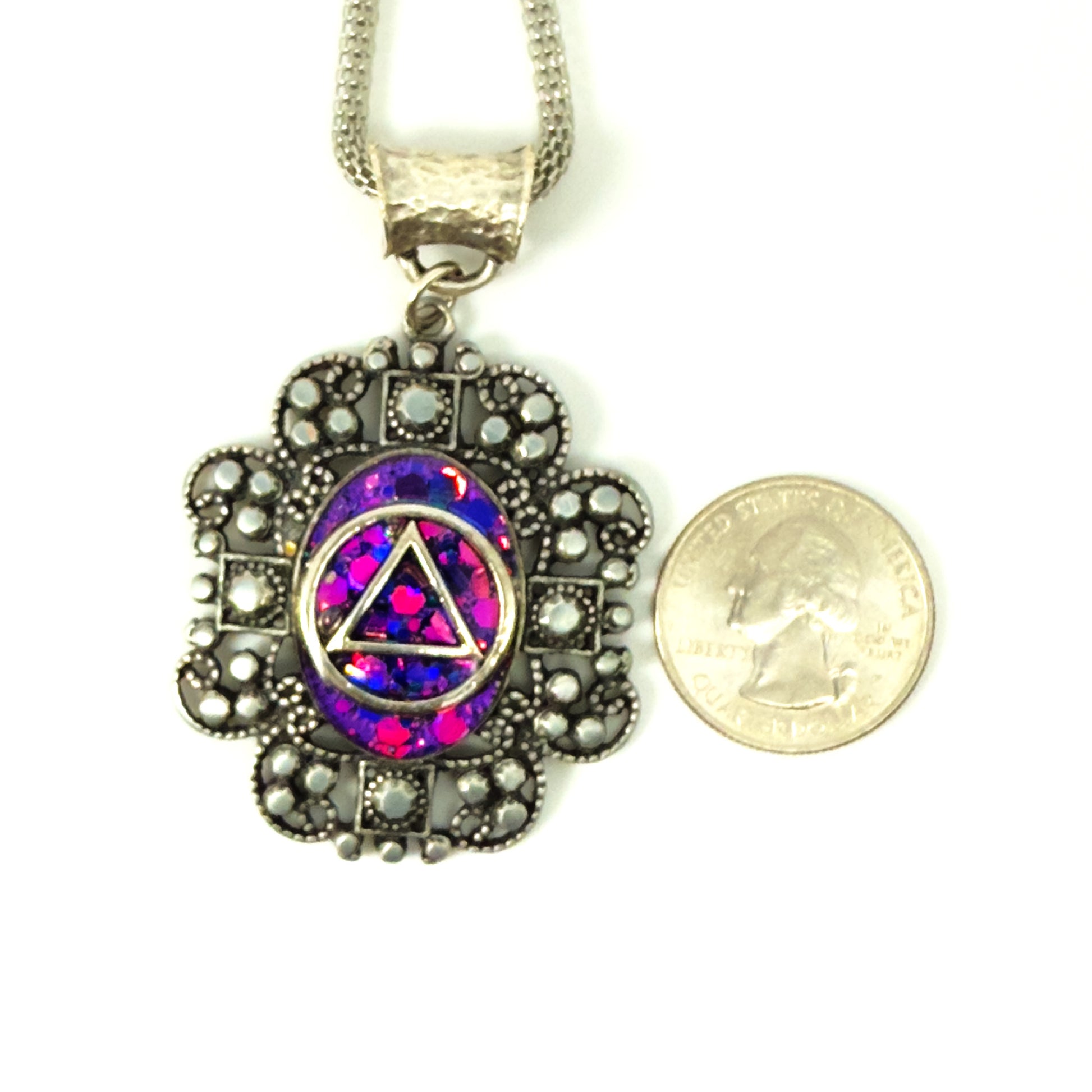My One of a Kind Hand Painted Resin Sobriety Pendants are Unique, Handcrafted pieces of jewelry designed to symbolize and celebrate your journey in recovery. I incorporate many symbols in my work such as hearts. Hearts represent “My Heart is in Recovery” Each pendant comes with a 18” silver plated chain