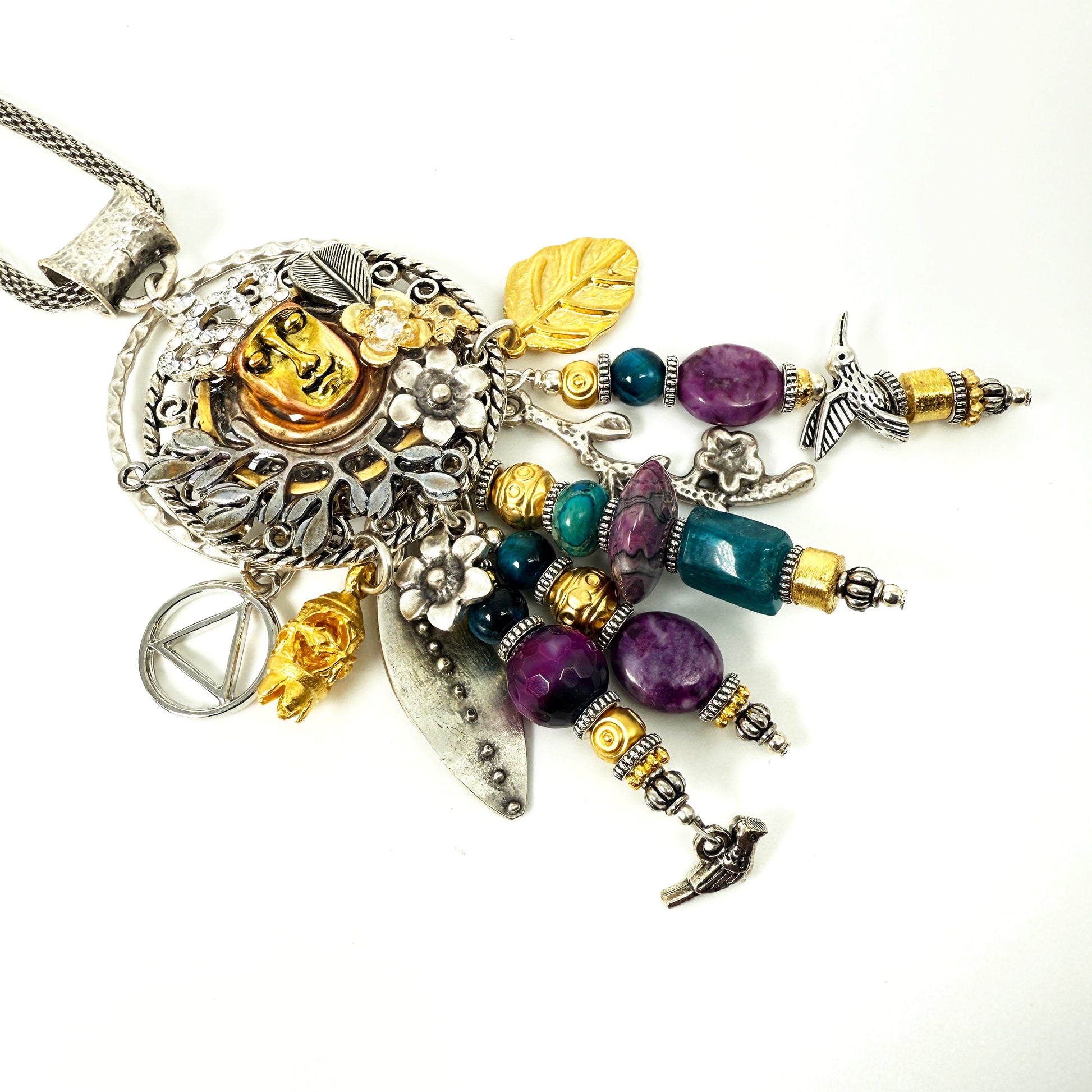 My One of a Kind “Sobriety Story Women” jewelry pendants are a beautiful tribute to sober women around the world of strength, courage and wisdom. Each piece embodies a story. Made with intention, love and care, these spiritual totem pendants serve as a reminder of the transformative power of sobriety. May you follow your heart and let the pieces sing to you, reflecting on your own unique journey and the strength within. These are made in a meditative state one piece at a time !
