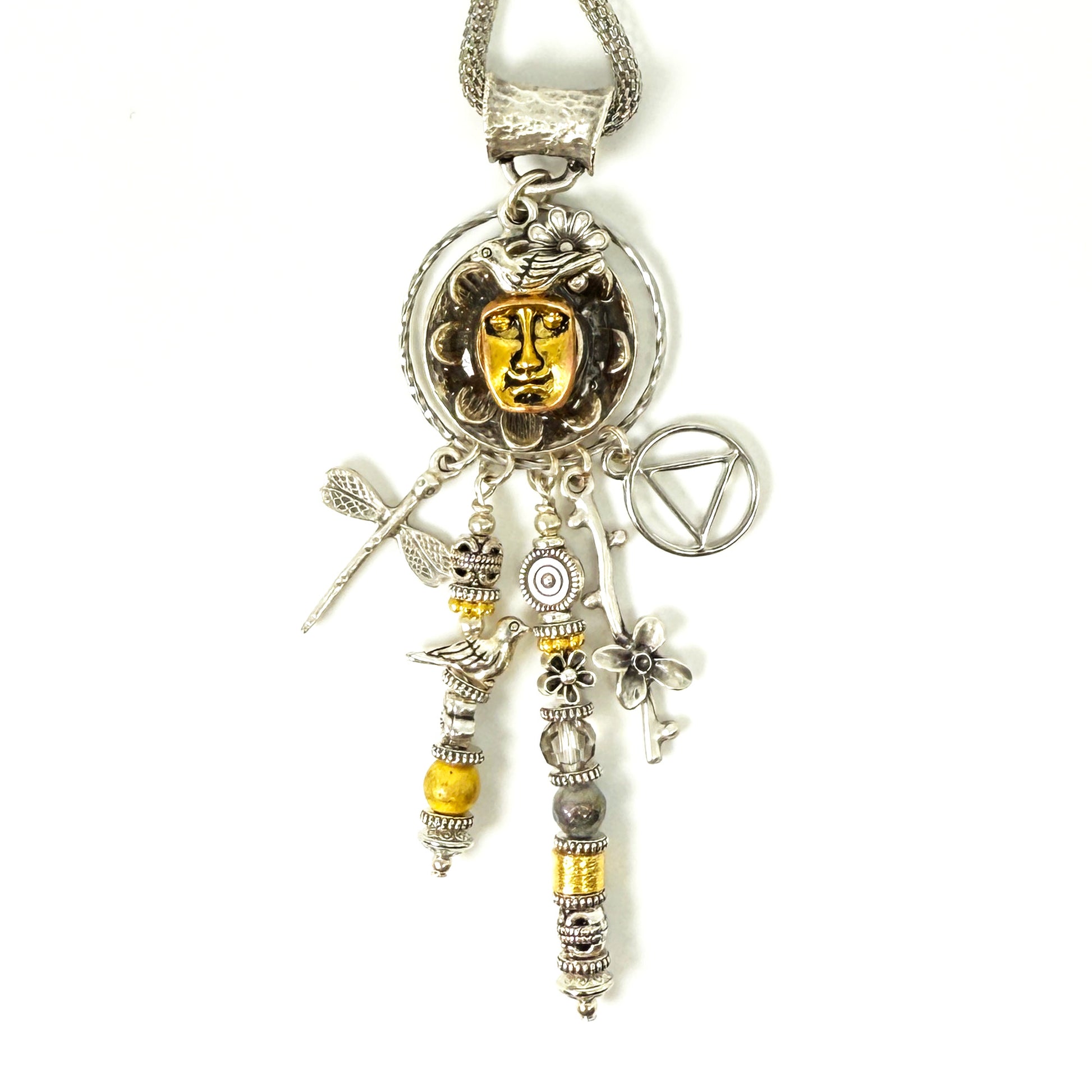 My One of a Kind “Sobriety Story Women” jewelry pendants are a beautiful tribute to sober women around the world of strength, courage and wisdom. Each piece embodies a story. Made with intention, love and care, these spiritual totem pendants serve as a reminder of the transformative power of sobriety. May you follow your heart and let the pieces sing to you, reflecting on your own unique journey and the strength within. These are made in a meditative state one piece at a time !