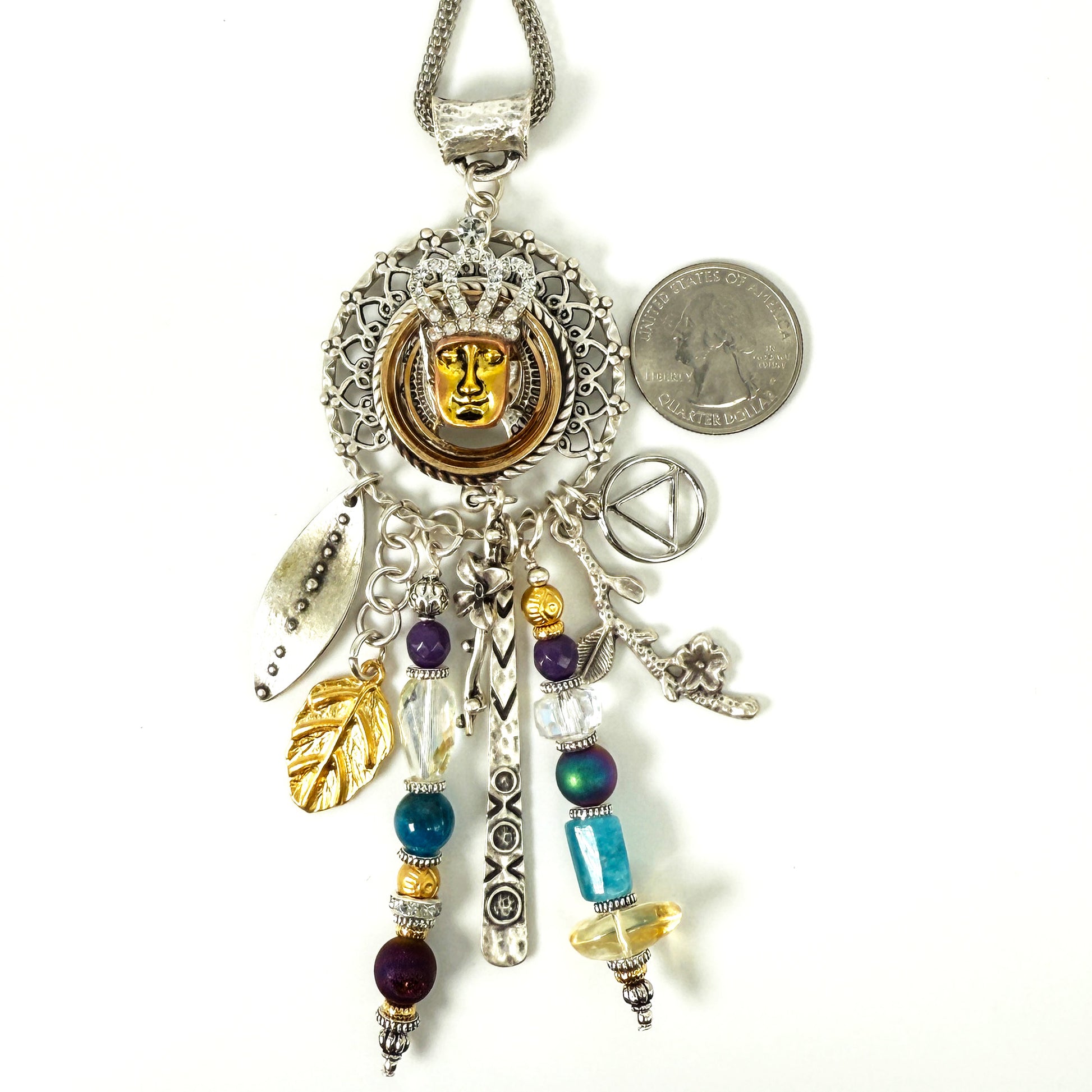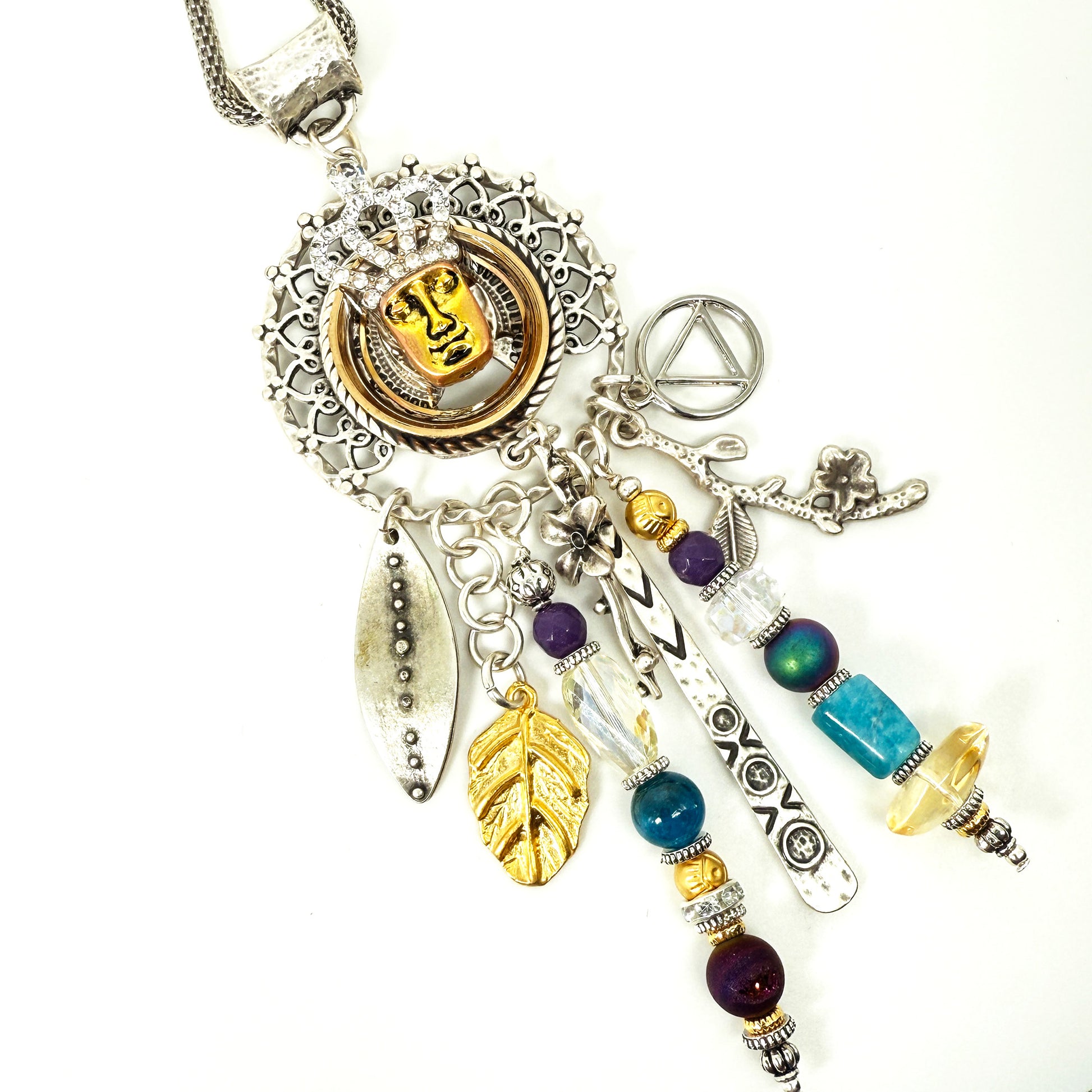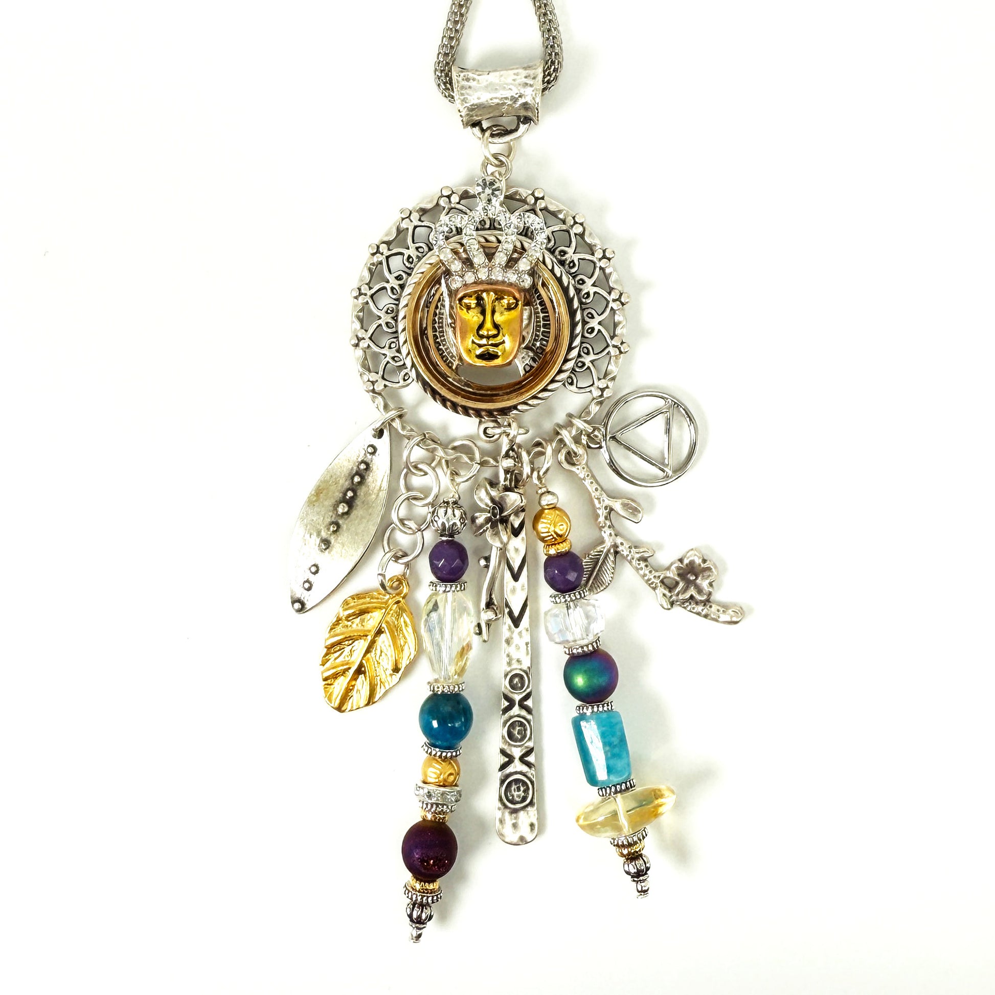 My One of a Kind “Sobriety Story Women” jewelry pendants are a beautiful tribute to sober women around the world of strength, courage and wisdom. Each piece embodies a story. Made with intention, love and care, these spiritual totem pendants serve as a reminder of the transformative power of sobriety. May you follow your heart and let the pieces sing to you, reflecting on your own unique journey and the strength within. These are made in a meditative state one piece at a time !