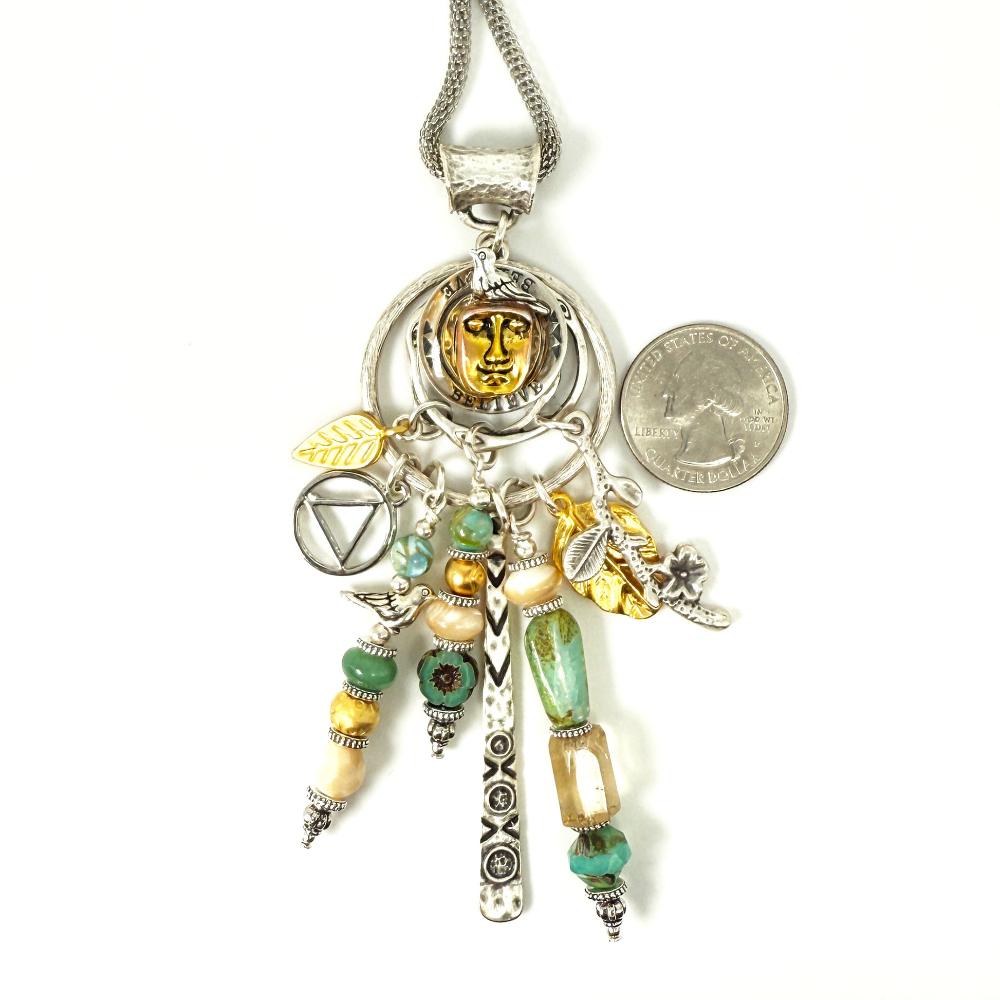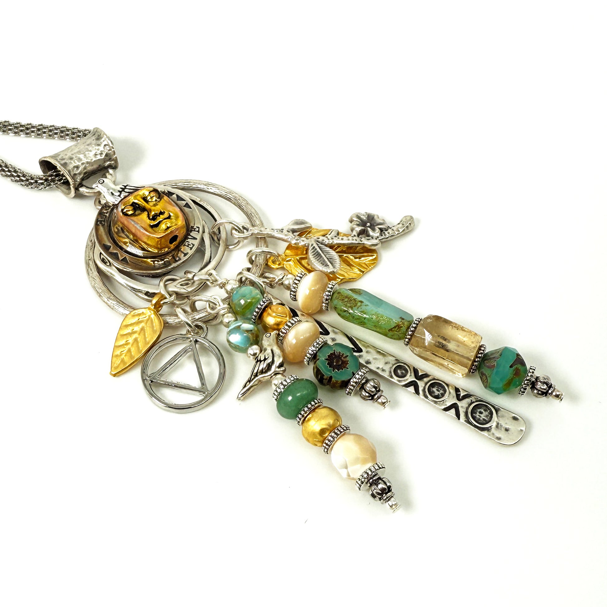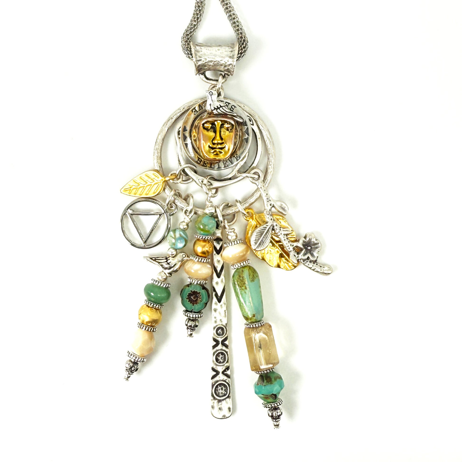 My One of a Kind “Sobriety Story Women” jewelry pendants are a beautiful tribute to sober women around the world of strength, courage and wisdom. Each piece embodies a story. Made with intention, love and care, these spiritual totem pendants serve as a reminder of the transformative power of sobriety. May you follow your heart and let the pieces sing to you, reflecting on your own unique journey and the strength within. These are made in a meditative state one piece at a time !