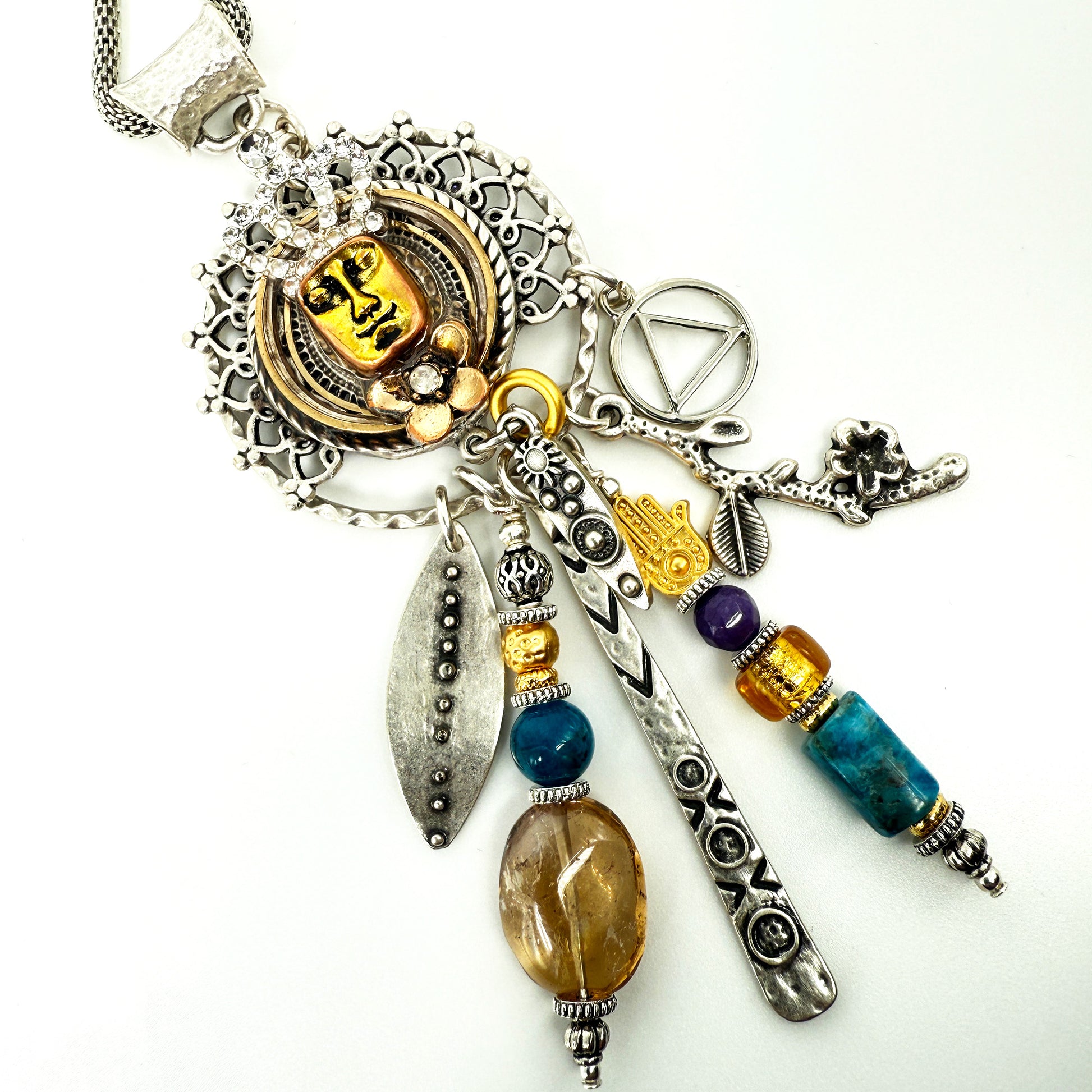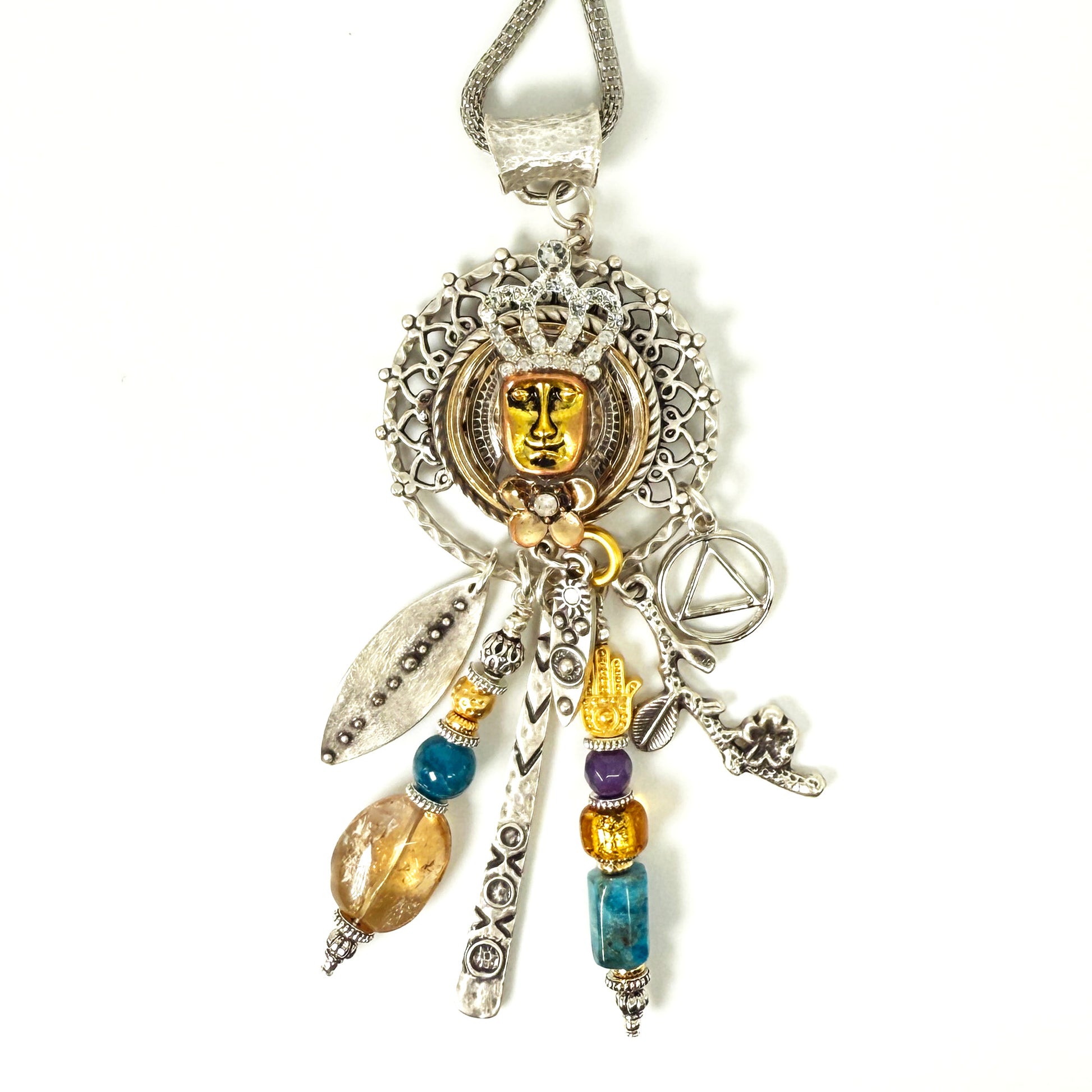 My One of a Kind “Sobriety Story Women” jewelry pendants are a beautiful tribute to sober women around the world of strength, courage and wisdom. Each piece embodies a story. Made with intention, love and care, these spiritual totem pendants serve as a reminder of the transformative power of sobriety. May you follow your heart and let the pieces sing to you, reflecting on your own unique journey and the strength within. These are made in a meditative state one piece at a time !