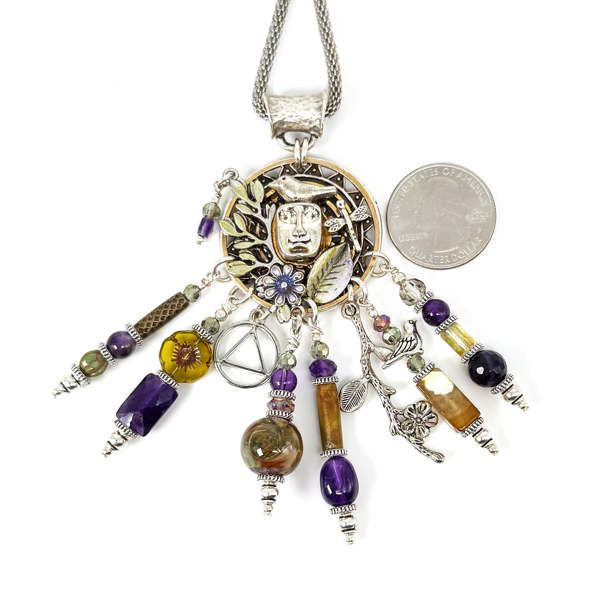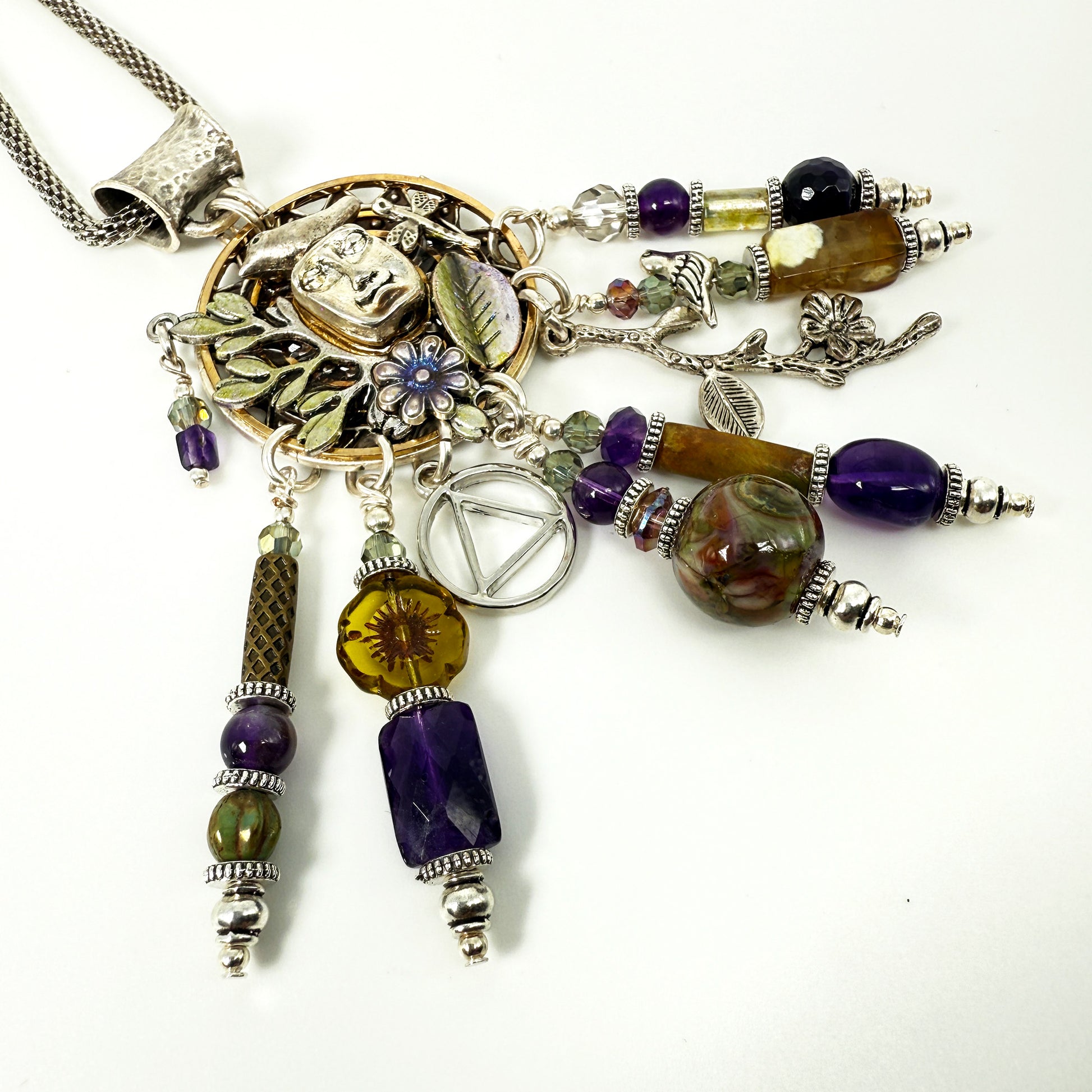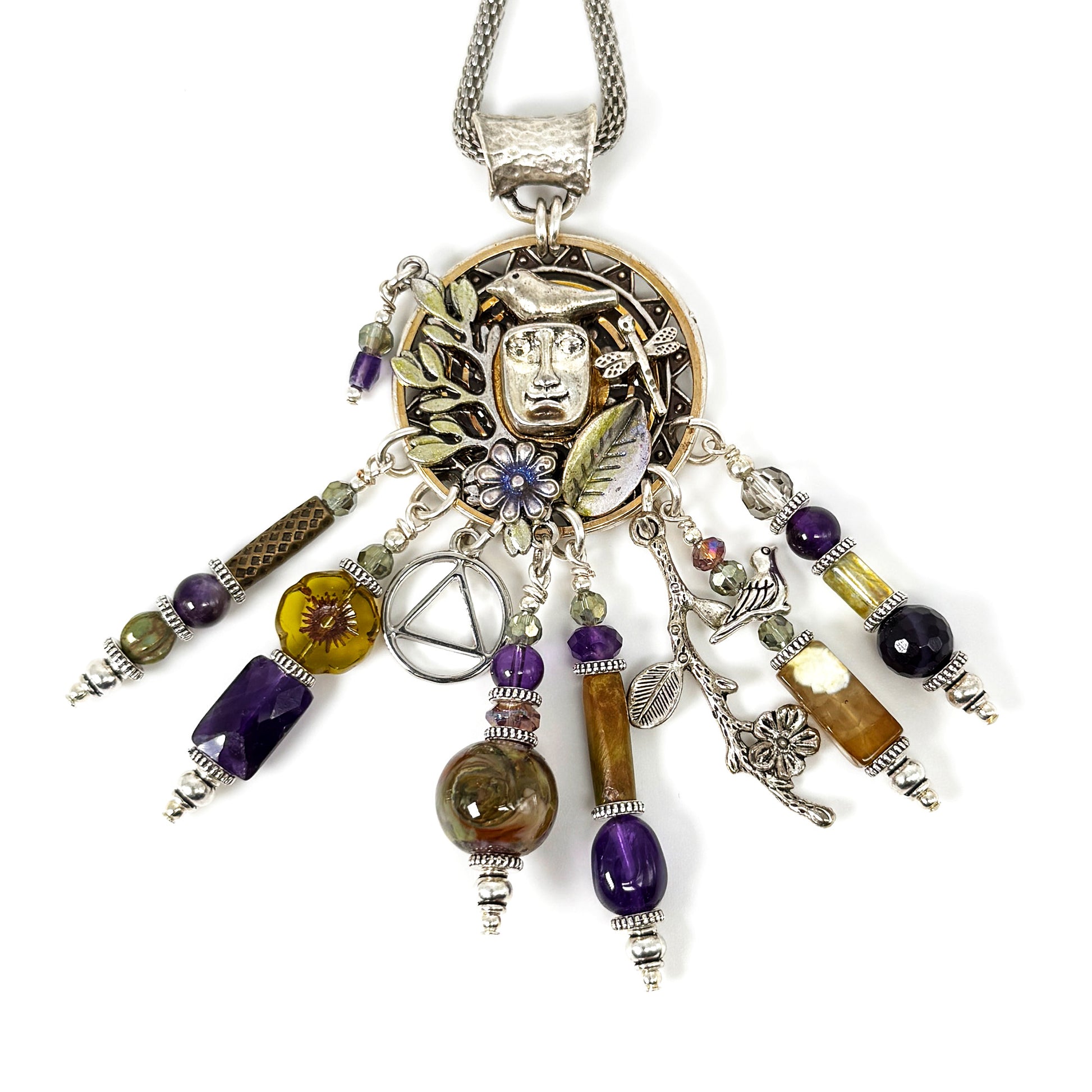 My One of a Kind “Sobriety Story Women” jewelry pendants are a beautiful tribute to sober women around the world of strength, courage and wisdom. Each piece embodies a story. Made with intention, love and care, these spiritual totem pendants serve as a reminder of the transformative power of sobriety. May you follow your heart and let the pieces sing to you, reflecting on your own unique journey and the strength within. These are made in a meditative state one piece at a time !