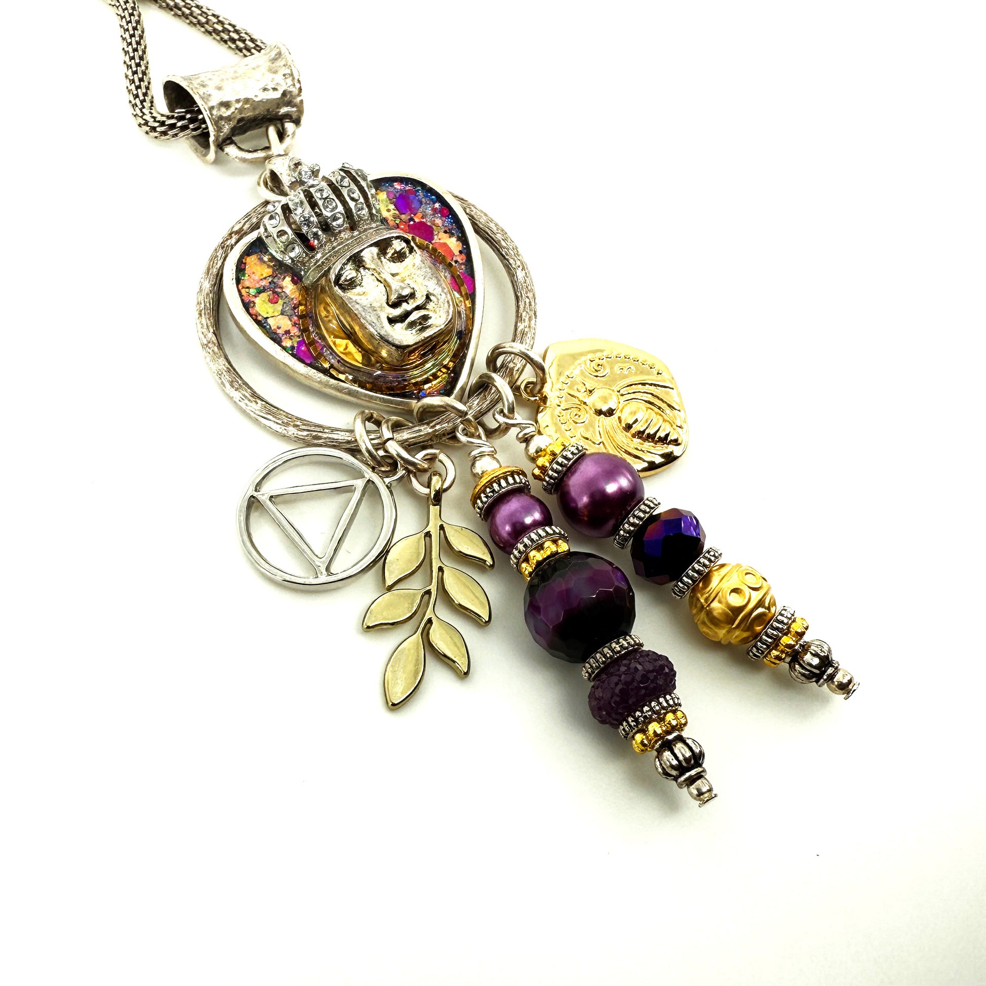 My One of a Kind “Sobriety Story Women” jewelry pendants are a beautiful tribute to sober women around the world of strength, courage and wisdom. Each piece embodies a story. Made with intention, love and care, these spiritual totem pendants serve as a reminder of the transformative power of sobriety. May you follow your heart and let the pieces sing to you, reflecting on your own unique journey and the strength within. These are made in a meditative state one piece at a time !
