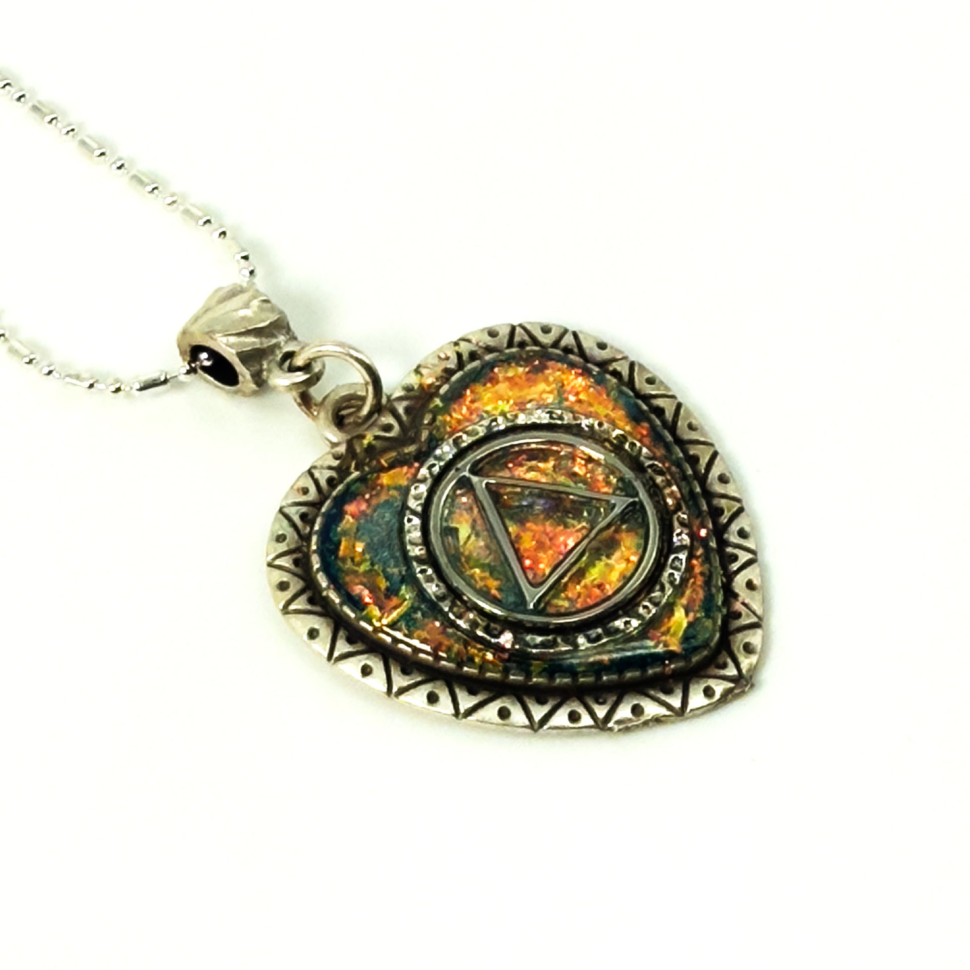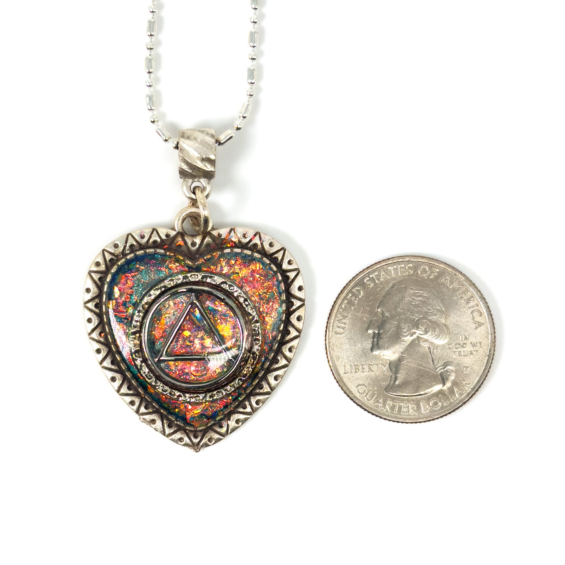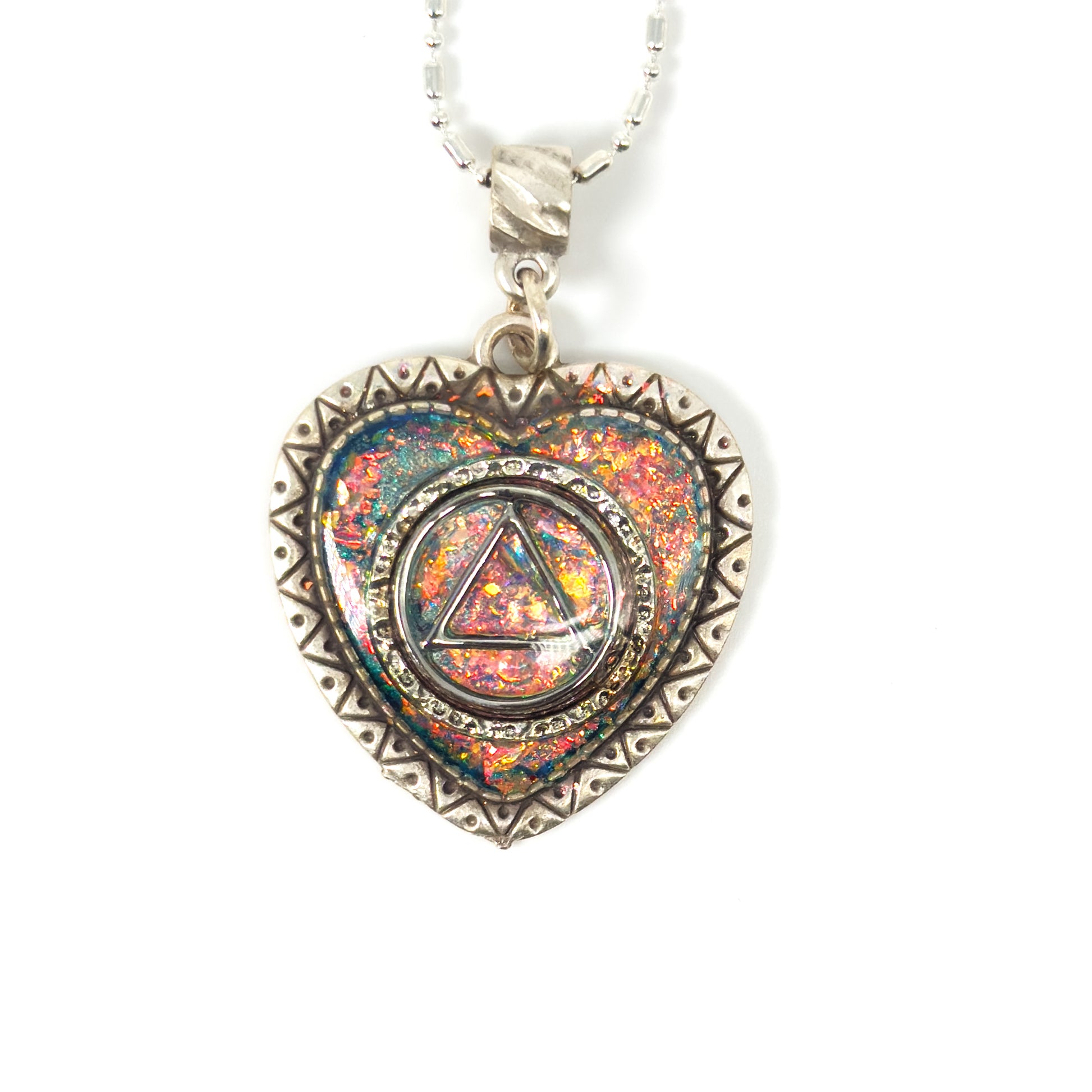 My One of a Kind Hand Painted Resin Sobriety Pendants are Unique, Handcrafted pieces of jewelry designed to symbolize and celebrate your journey in recovery. I incorporate many symbols in my work such as hearts. Hearts represent “My Heart is in Recovery” Each pendant comes with a 18” silver plated chain