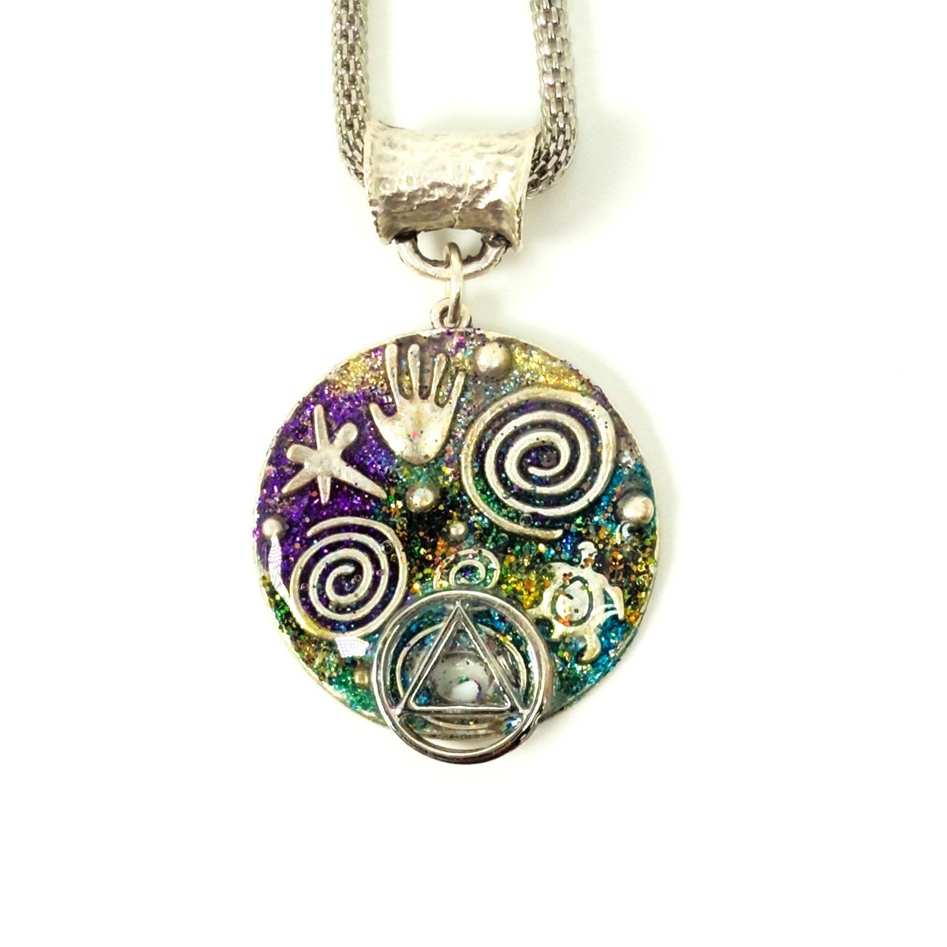 My One of a Kind Hand Painted Resin Sobriety Pendants are Unique, Handcrafted pieces of jewelry designed to symbolize and celebrate your journey in recovery. I incorporate many symbols in my work such as hearts. Hearts represent “My Heart is in Recovery” Each pendant comes with a 18” silver plated chain