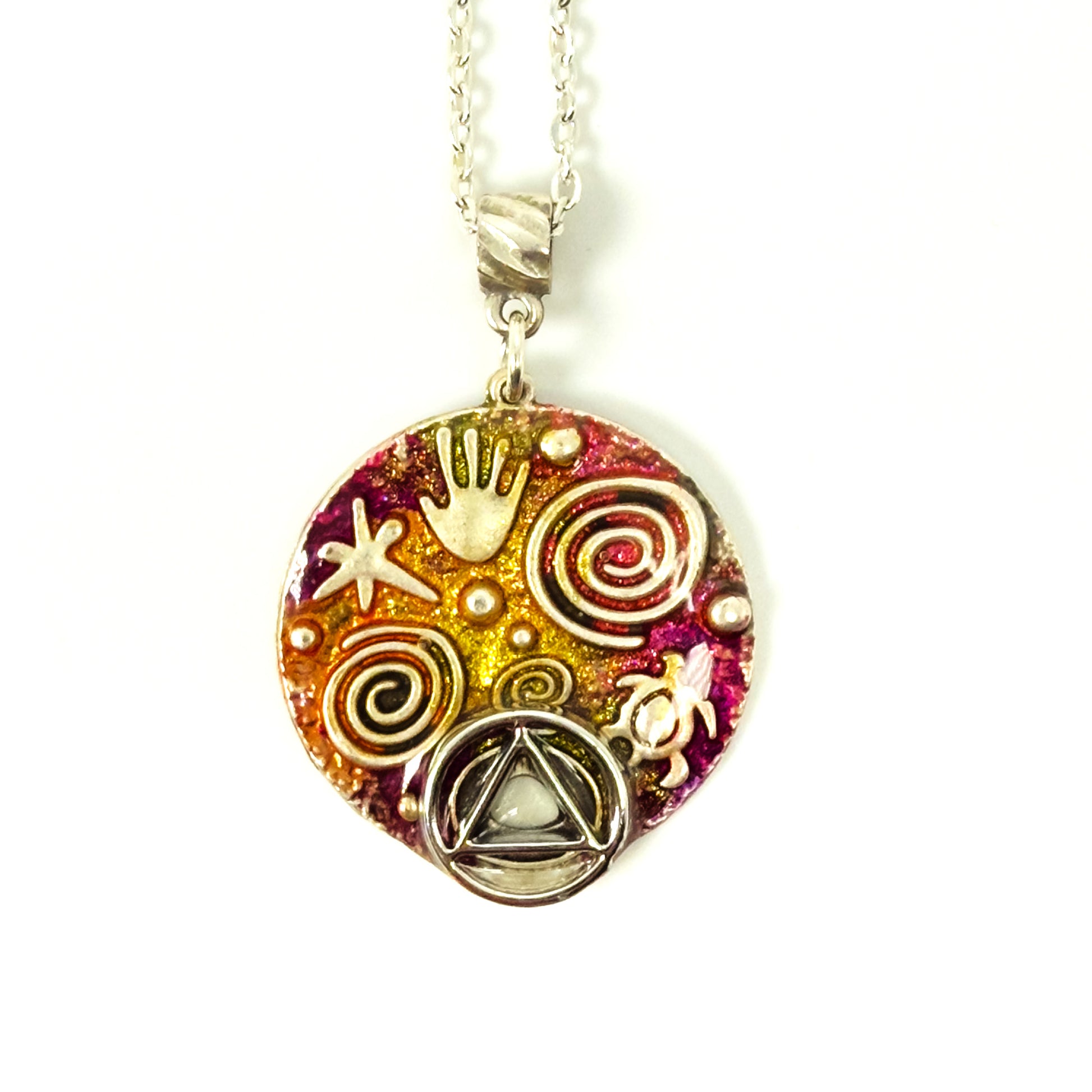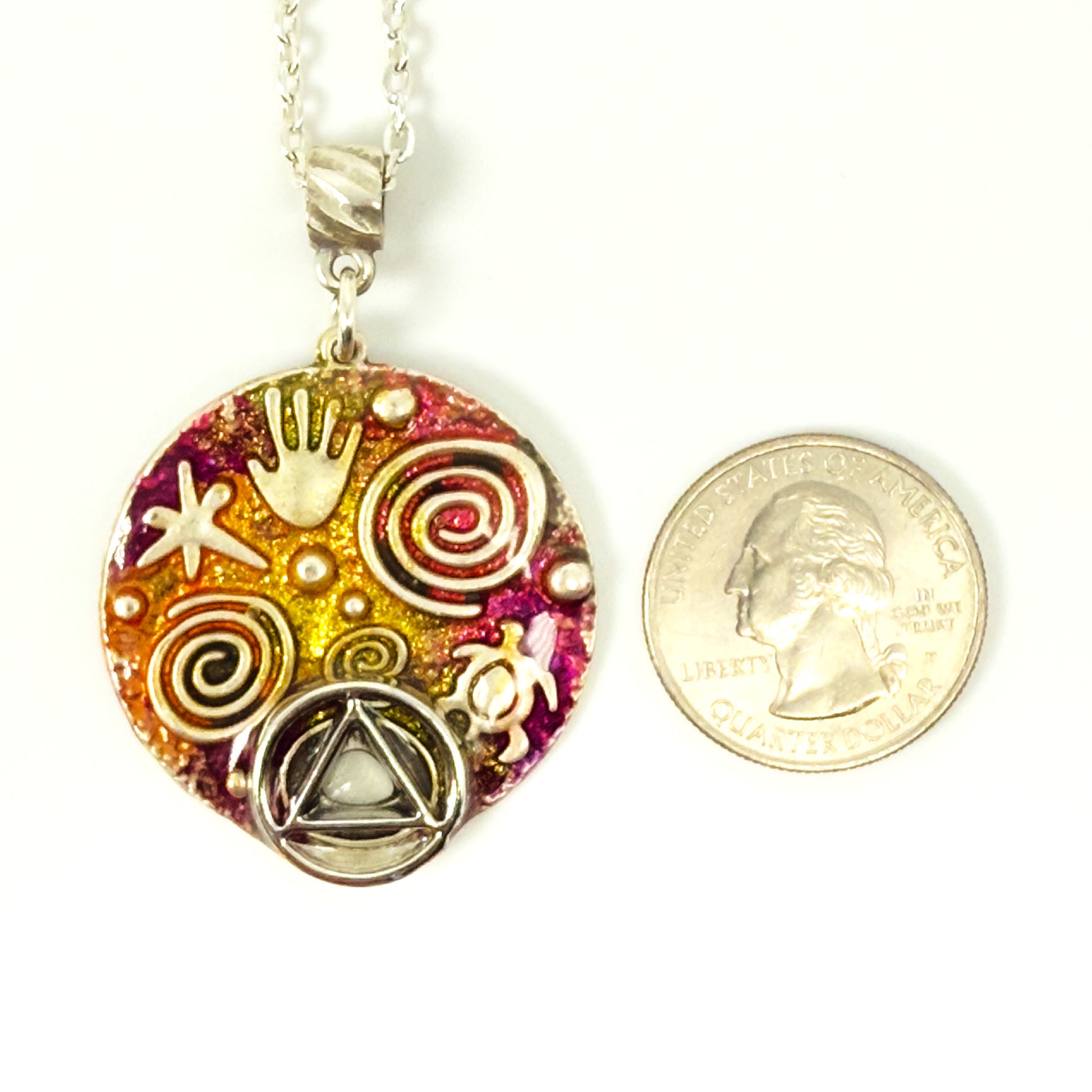 My One of a Kind Hand Painted Resin Sobriety Pendants are Unique, Handcrafted pieces of jewelry designed to symbolize and celebrate your journey in recovery. I incorporate many symbols in my work such as hearts. Hearts represent “My Heart is in Recovery” Each pendant comes with a 18” silver plated chain