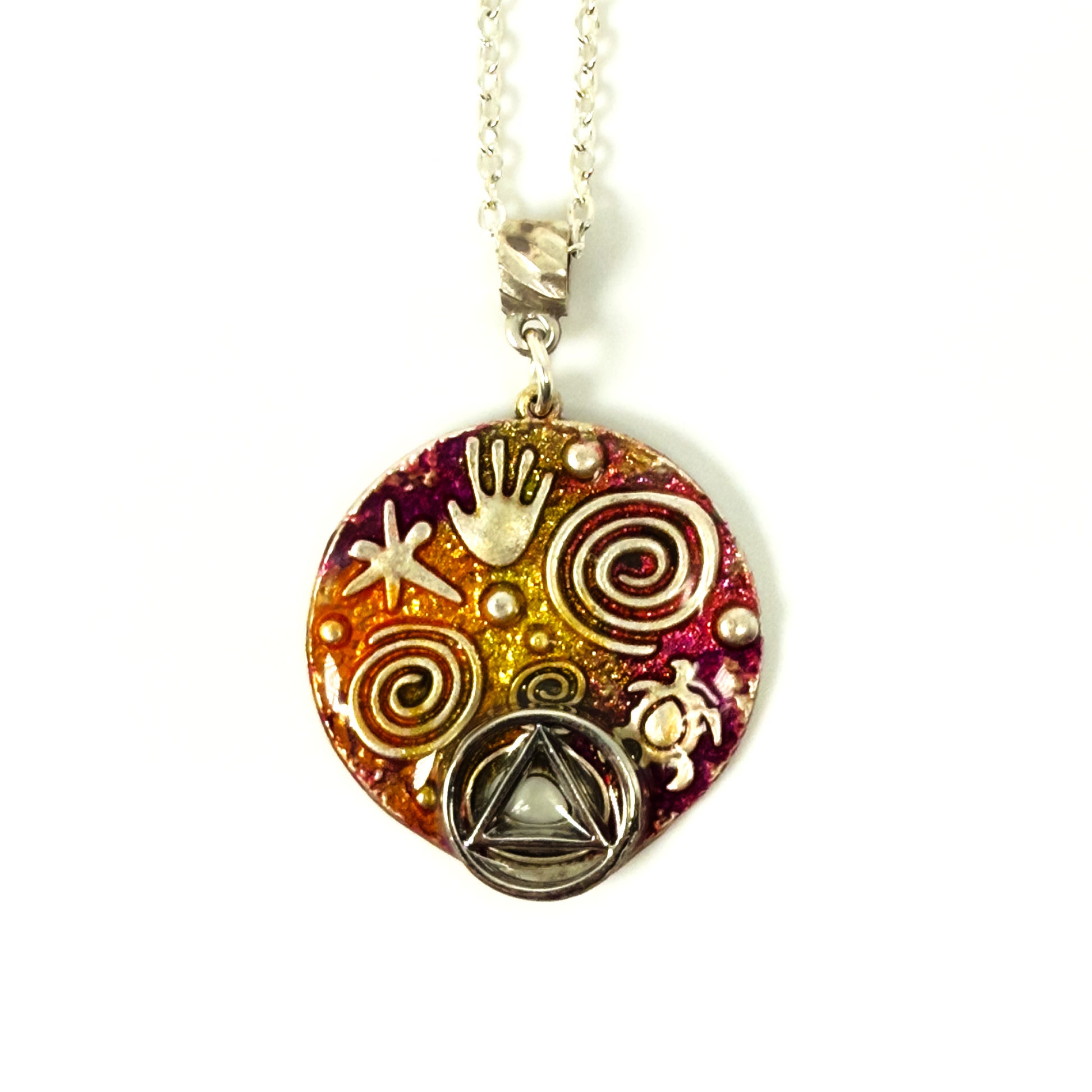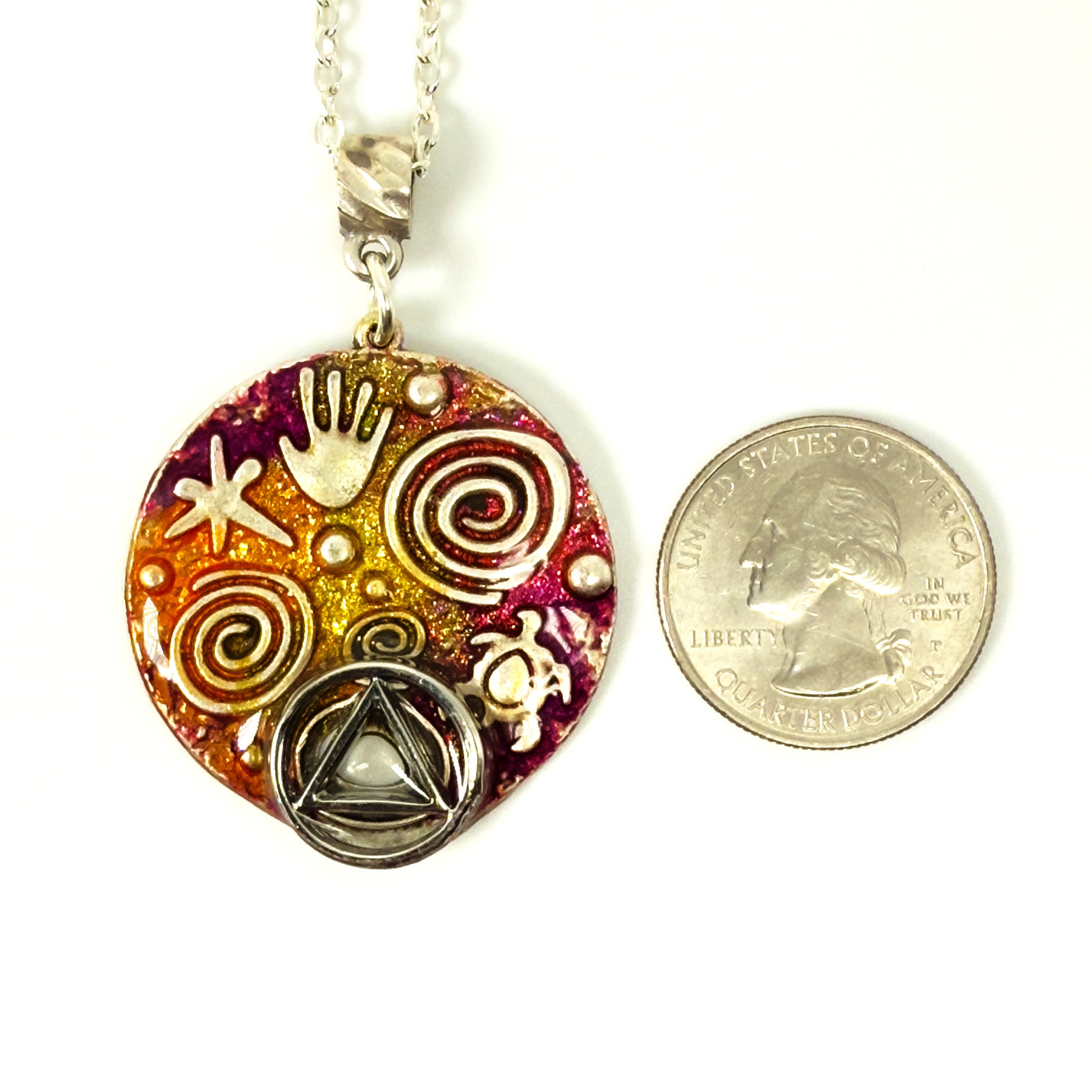 My One of a Kind Hand Painted Resin Sobriety Pendants are Unique, Handcrafted pieces of jewelry designed to symbolize and celebrate your journey in recovery. I incorporate many symbols in my work such as hearts. Hearts represent “My Heart is in Recovery” Each pendant comes with a 18” silver plated chain