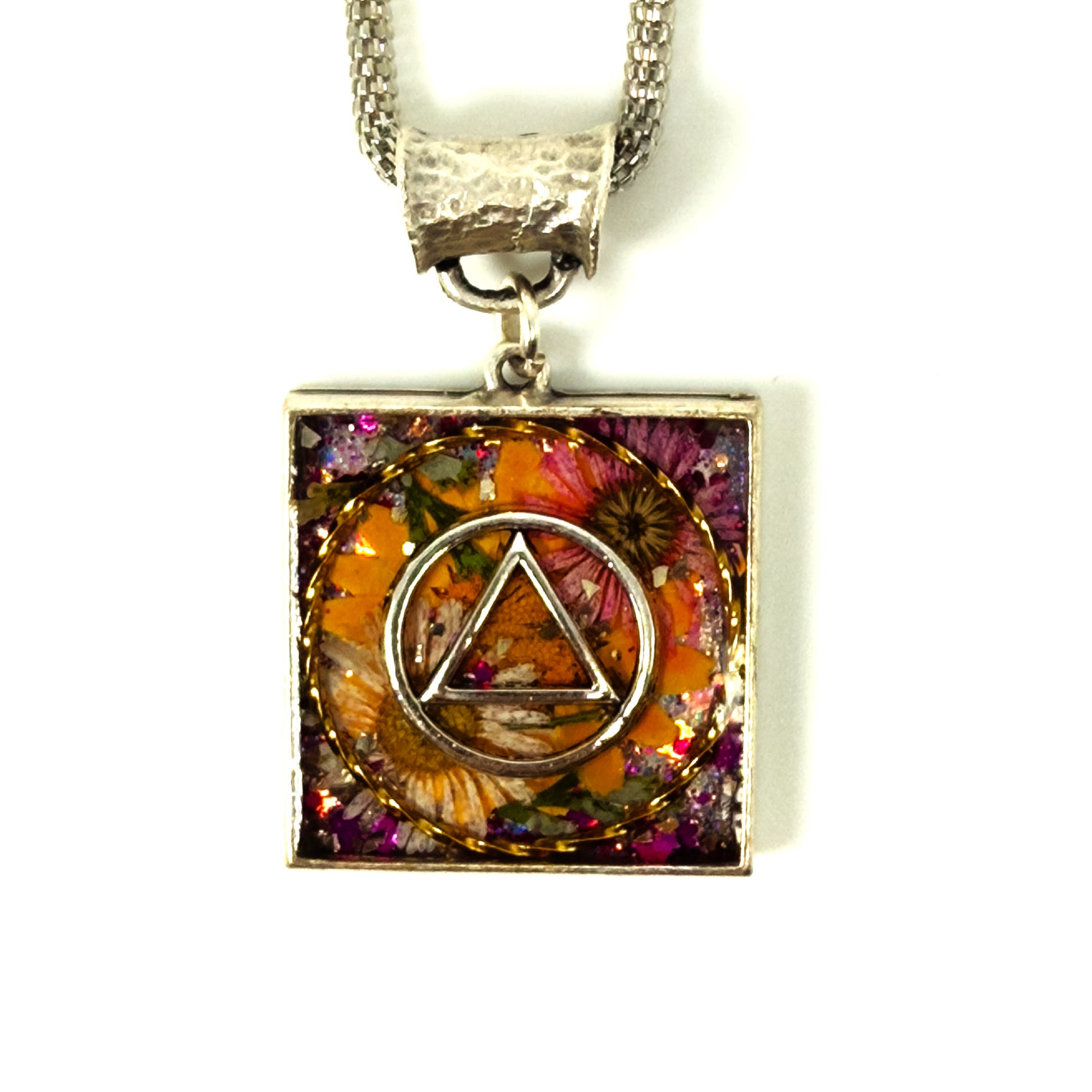 My One of a Kind Hand Painted Resin Sobriety Pendants are Unique, Handcrafted pieces of jewelry designed to symbolize and celebrate your journey in recovery. I incorporate many symbols in my work such as hearts. Hearts represent “My Heart is in Recovery” Each pendant comes with a 18” silver plated chain