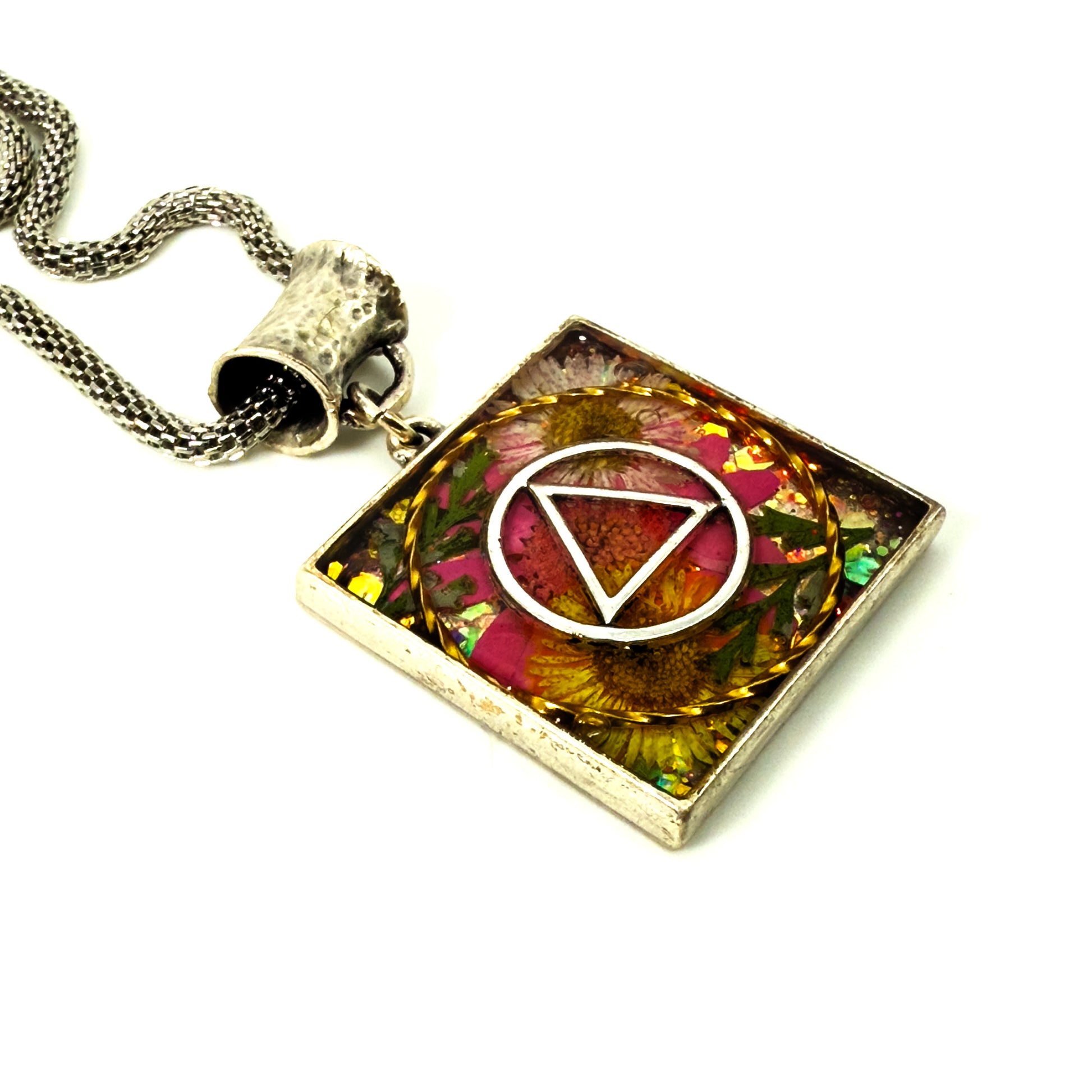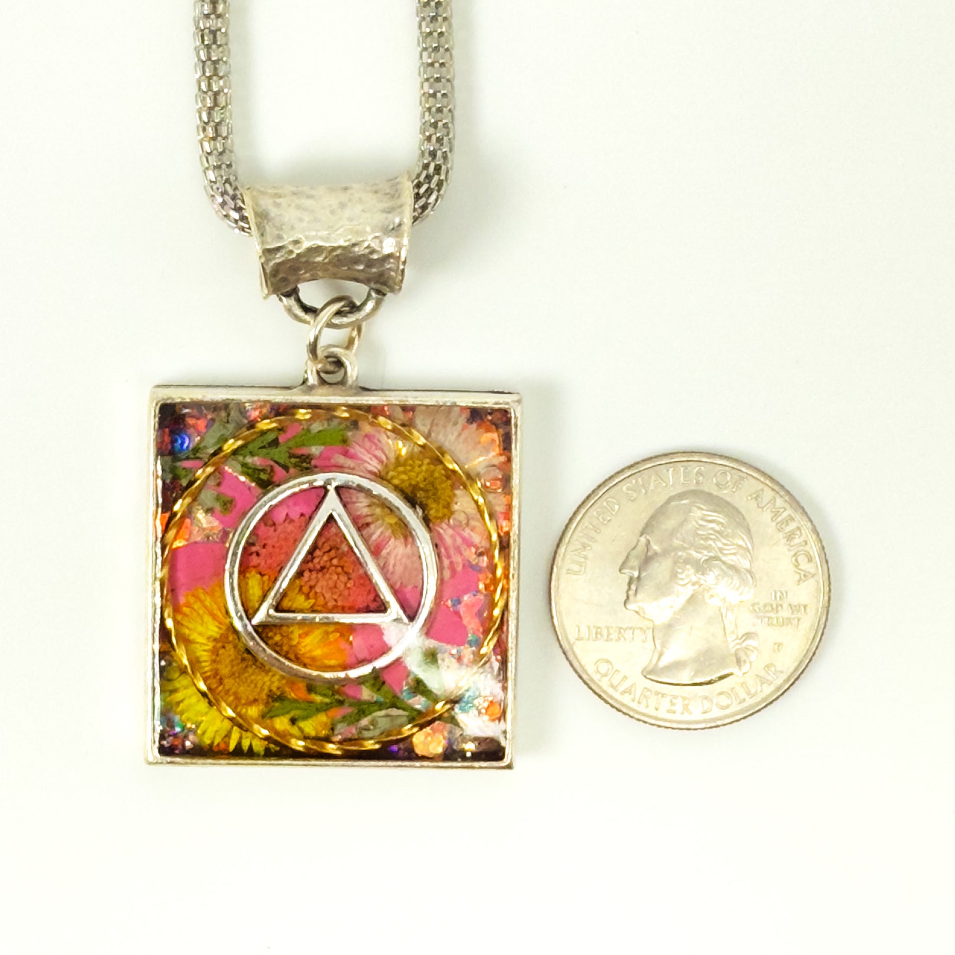 My One of a Kind Hand Painted Resin Sobriety Pendants are Unique, Handcrafted pieces of jewelry designed to symbolize and celebrate your journey in recovery. I incorporate many symbols in my work such as hearts. Hearts represent “My Heart is in Recovery” Each pendant comes with a 18” silver plated chain