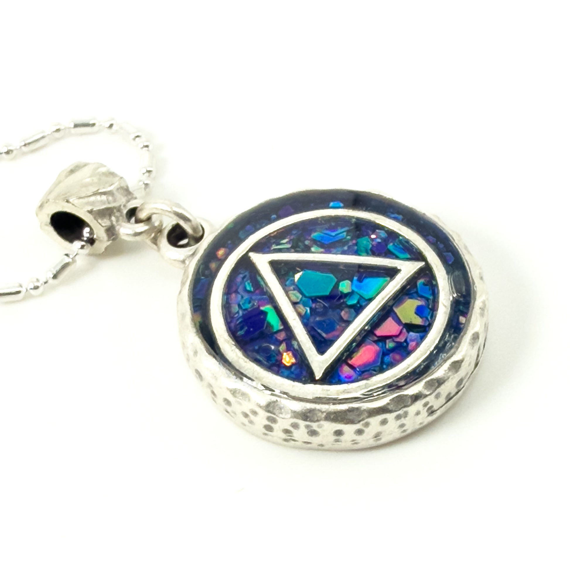 My One of a Kind Hand Painted Resin Sobriety Pendants are Unique, Handcrafted pieces of jewelry designed to symbolize and celebrate your journey in recovery. I incorporate many symbols in my work such as hearts. Hearts represent “My Heart is in Recovery” Each pendant comes with a 18” silver plated chain
