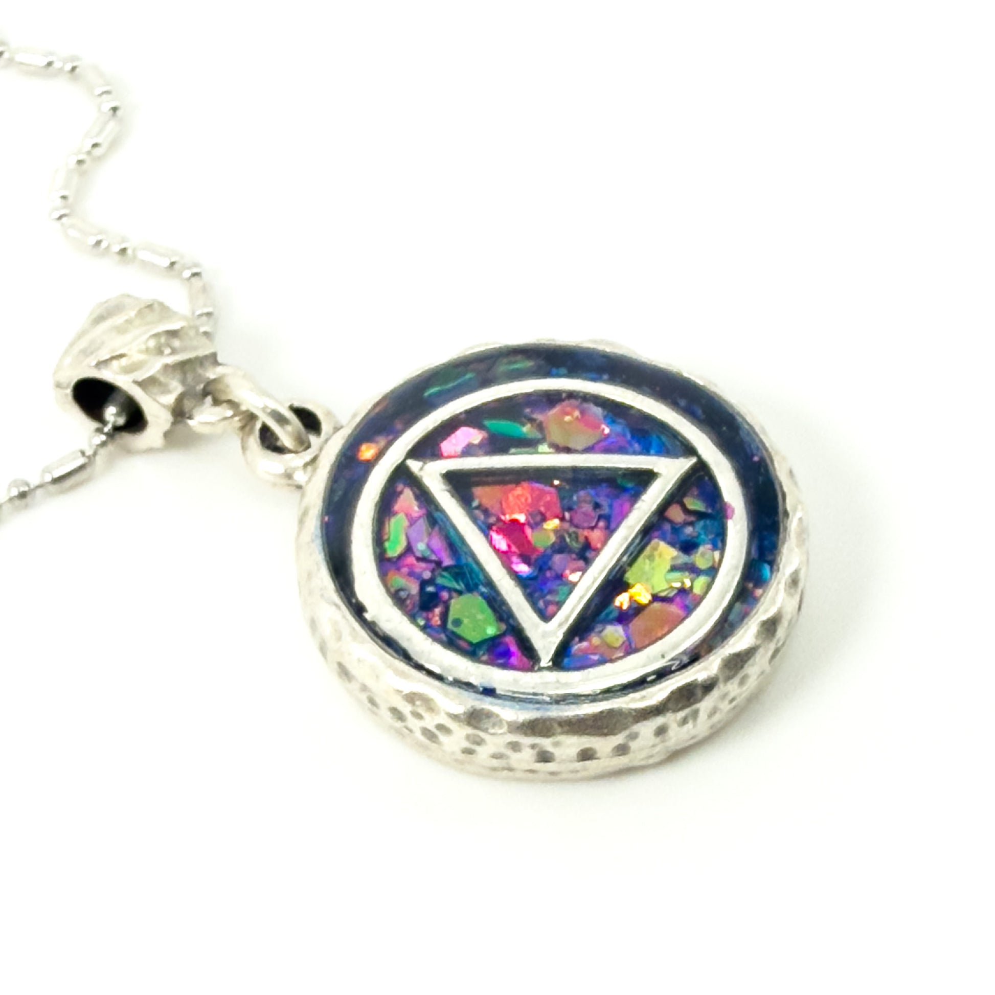 My One of a Kind Hand Painted Resin Sobriety Pendants are Unique, Handcrafted pieces of jewelry designed to symbolize and celebrate your journey in recovery. I incorporate many symbols in my work such as hearts. Hearts represent “My Heart is in Recovery” Each pendant comes with a 18” silver plated chain